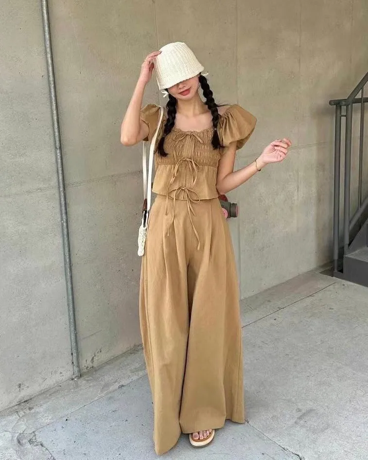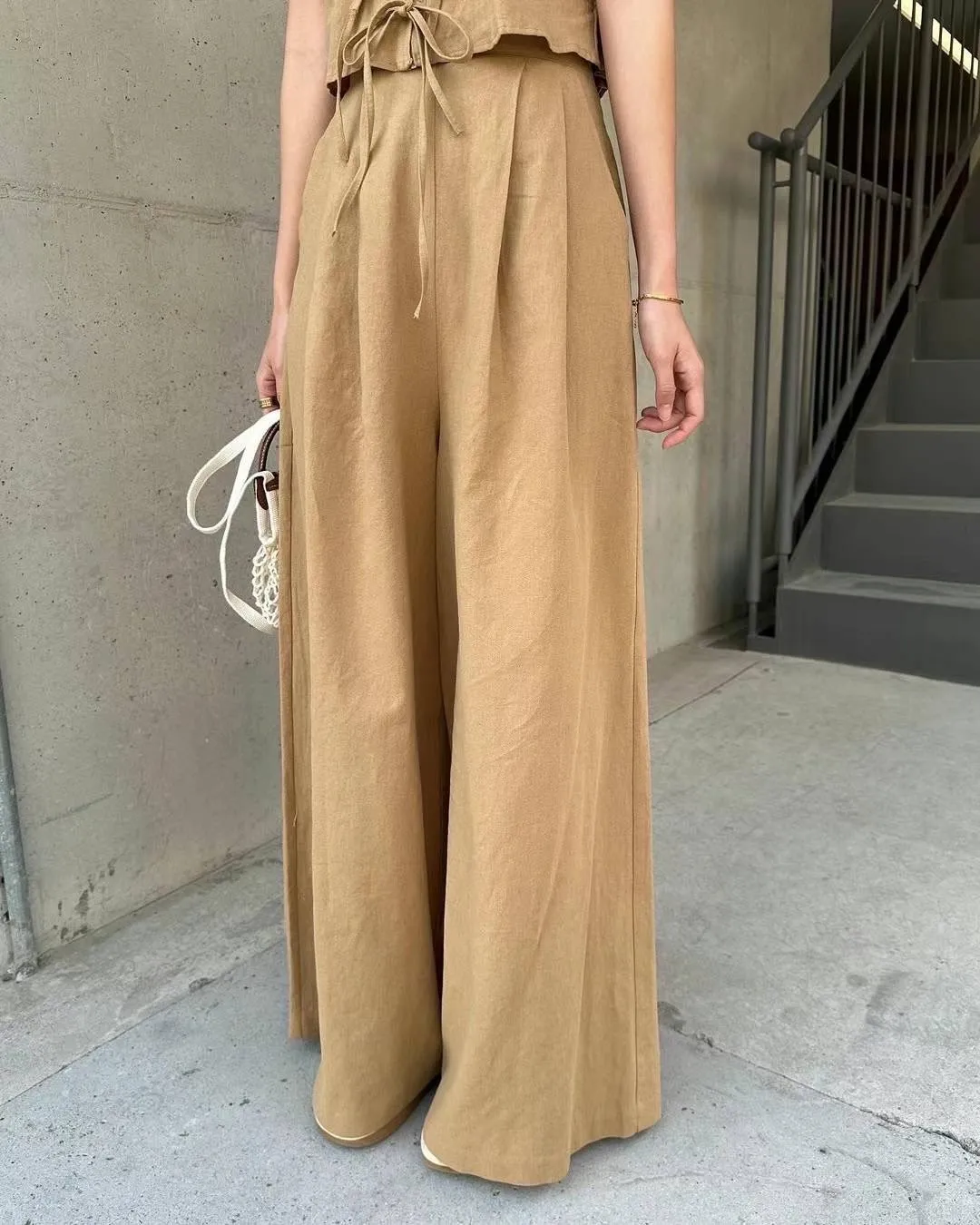 HJ1042套裝的寬腰帶長褲 米 咖 官網價$1360 線上價$1330
