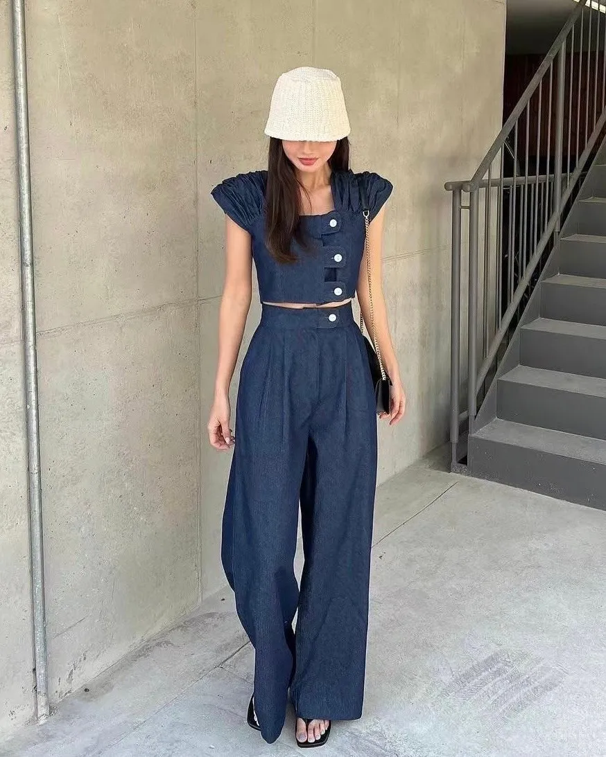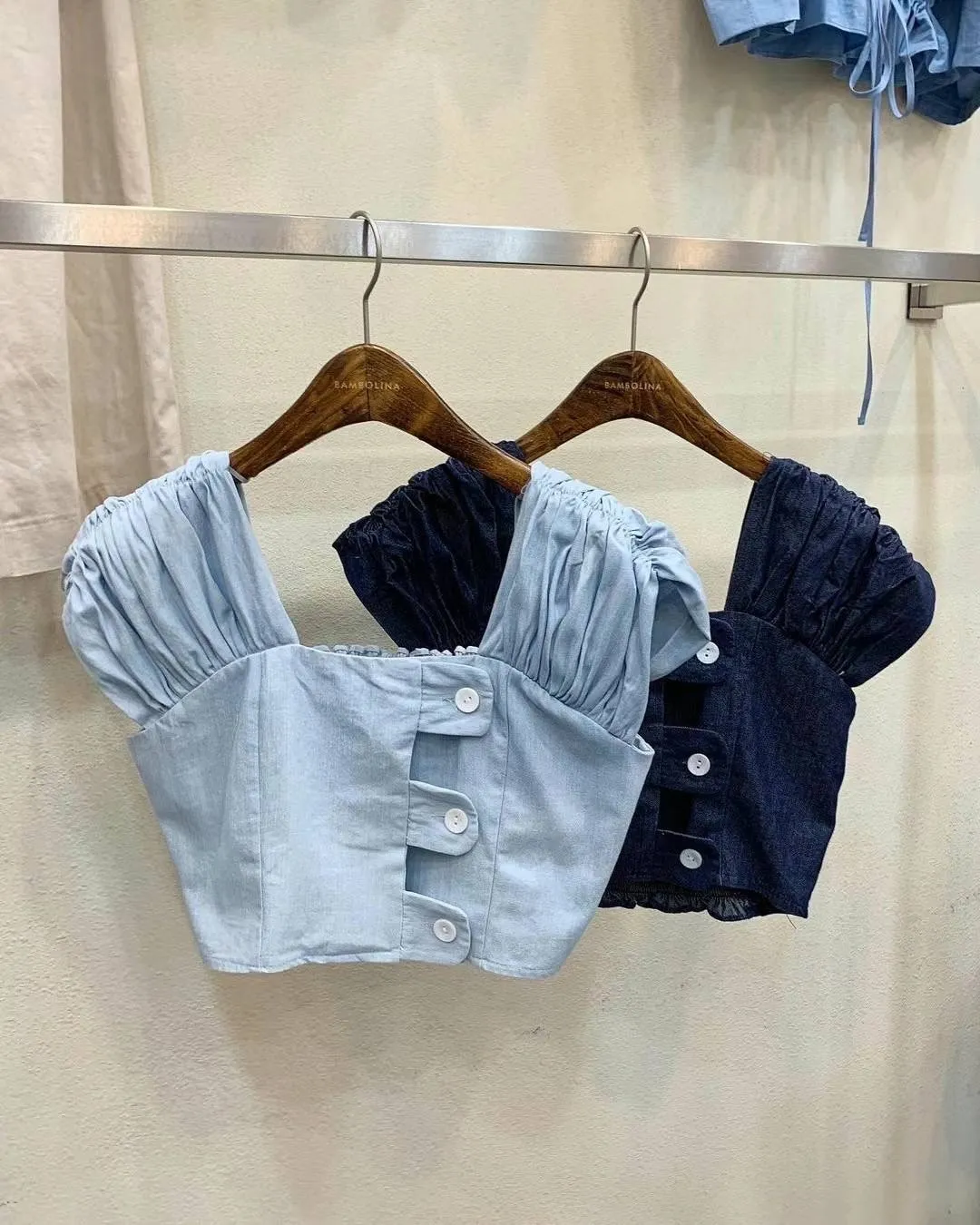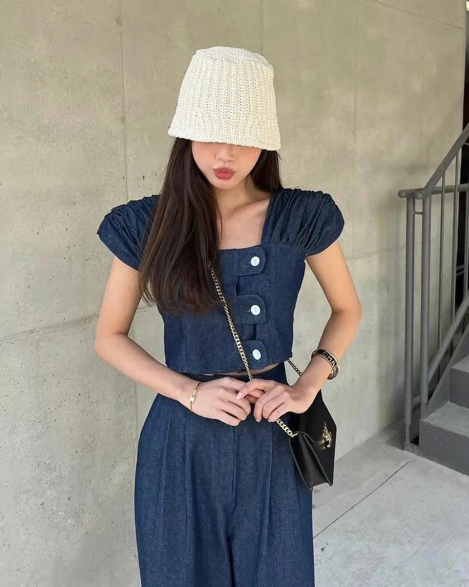 HJ1047套裝的三釦短版上衣 淺藍 深藍 官網價$1190 線上價$1160