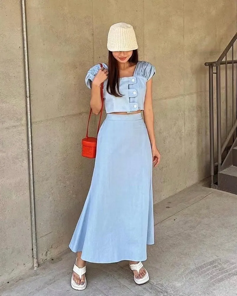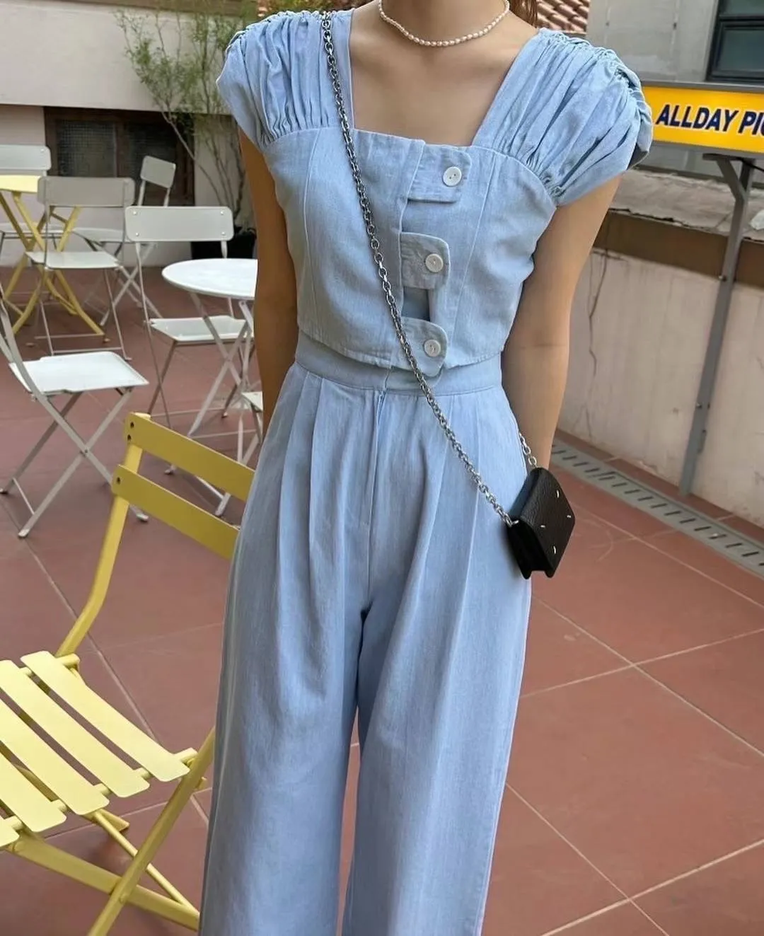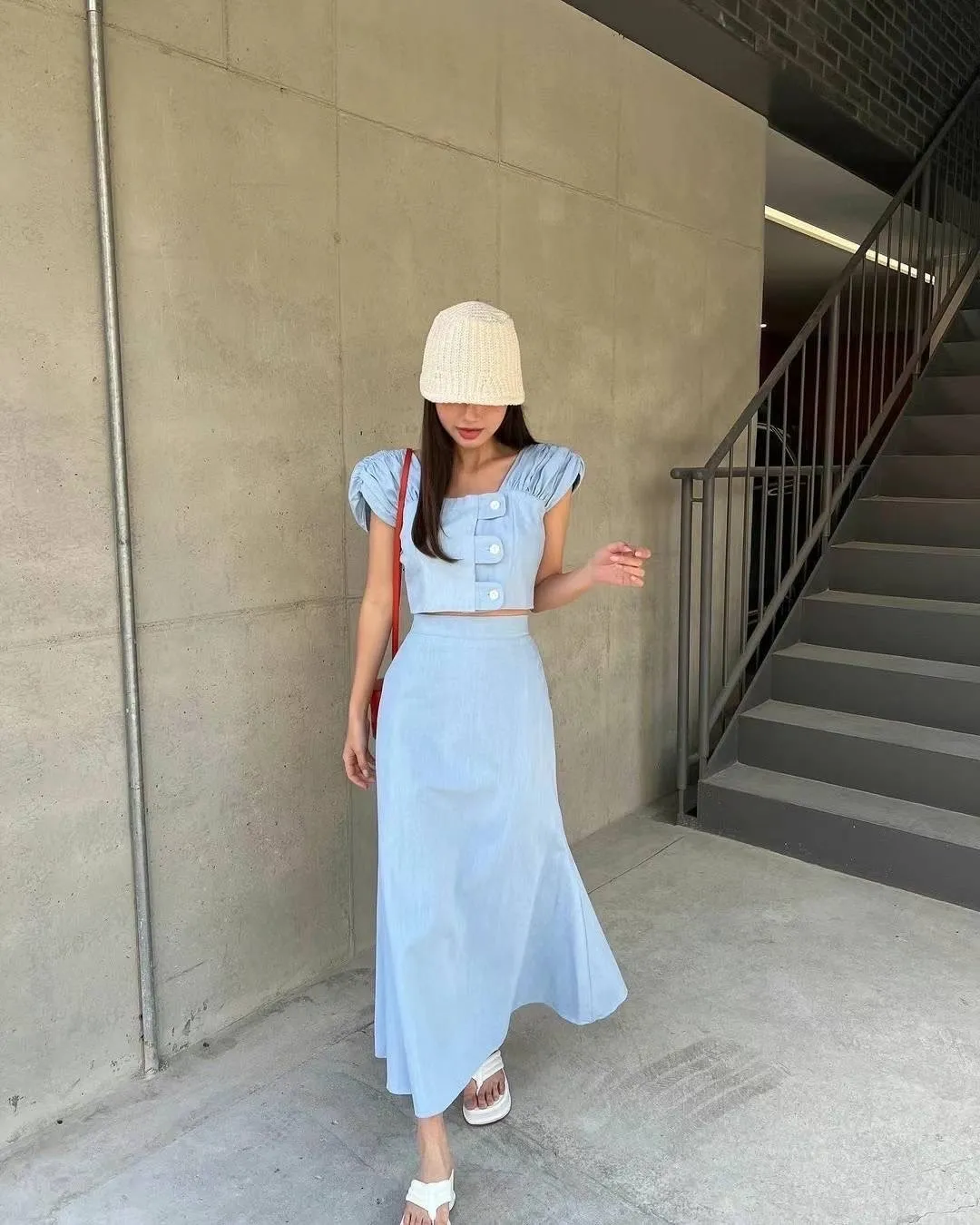 HJ1047套裝的三釦短版上衣 淺藍 深藍 官網價$1190 線上價$1160