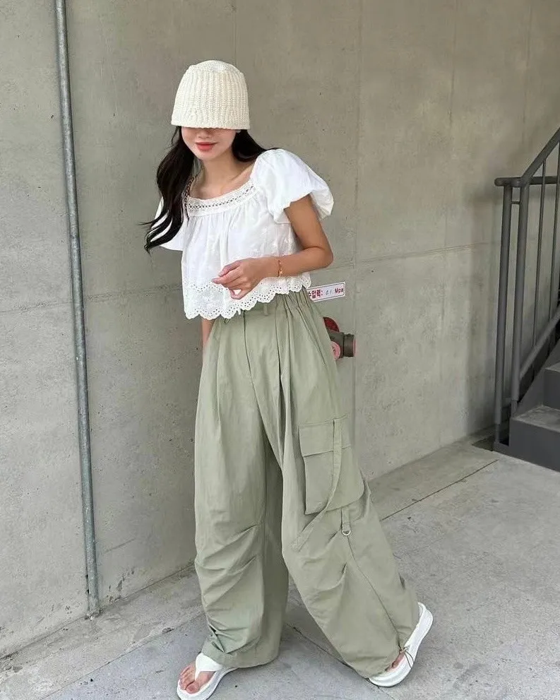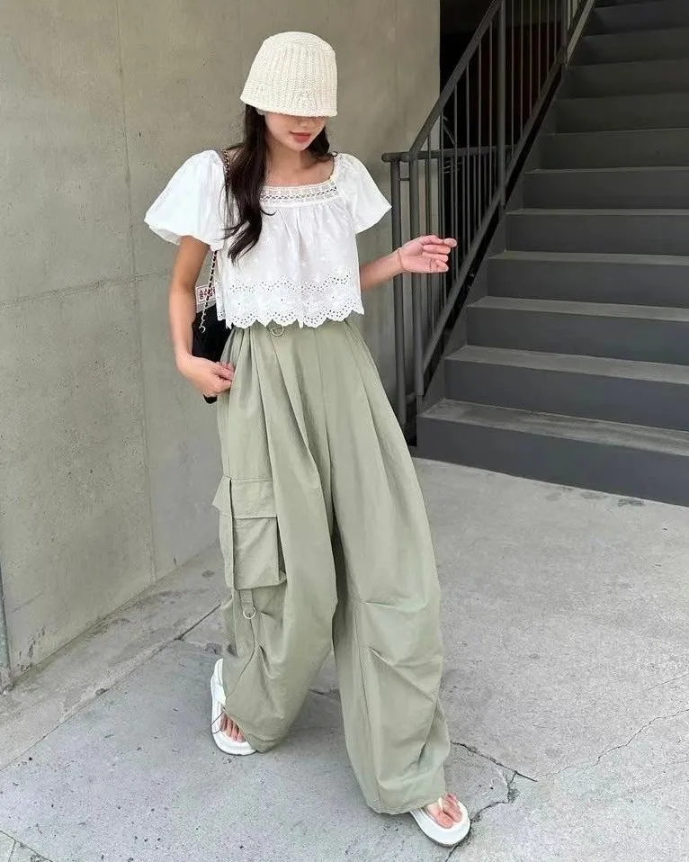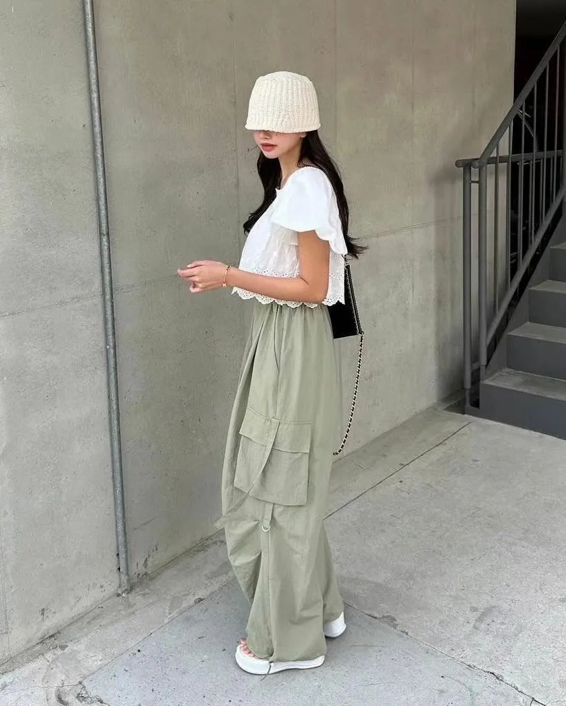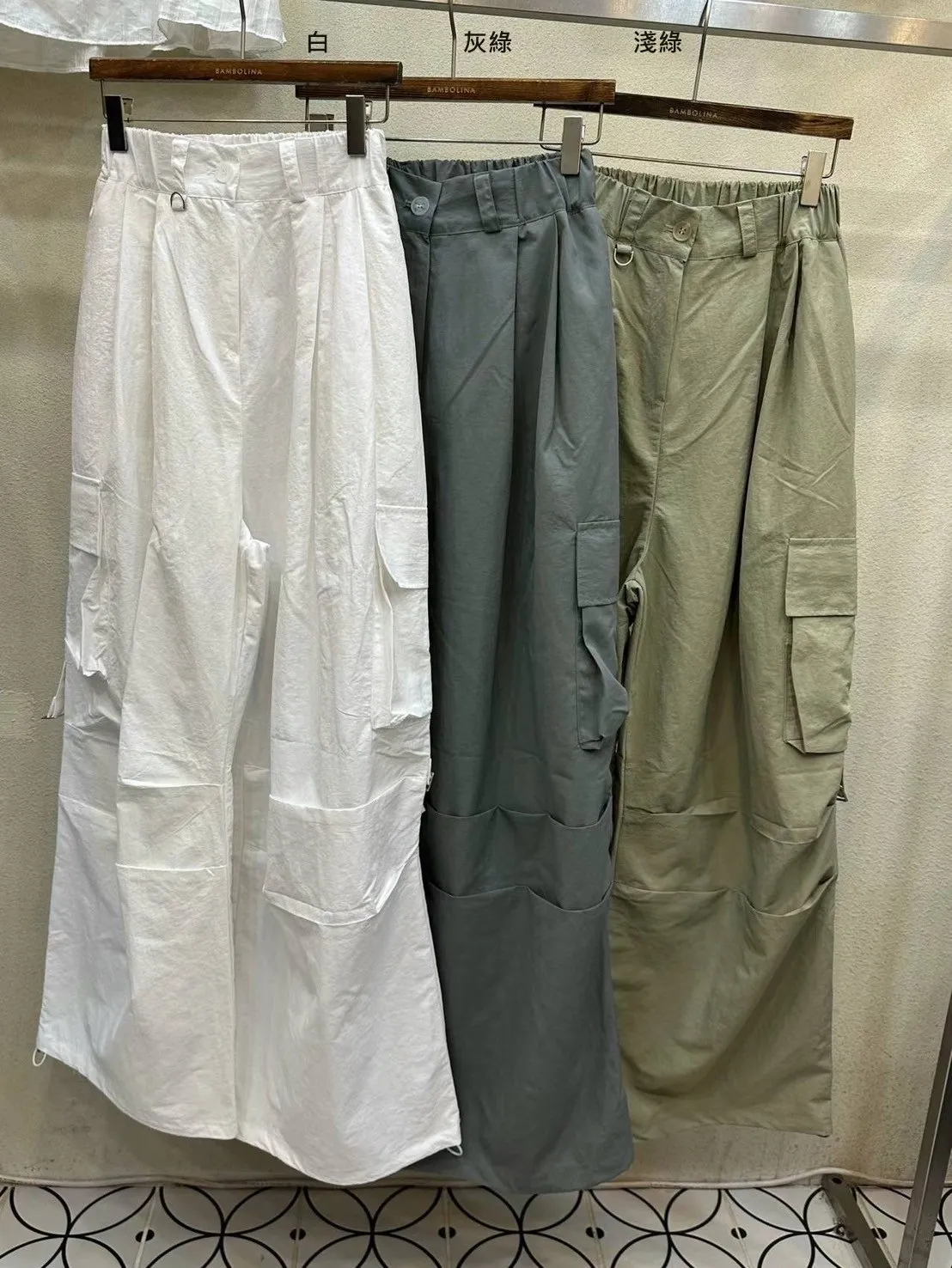 HJ1051雙側口袋工裝長褲 白 淺綠 灰綠 官網價$1360 線上價$1330