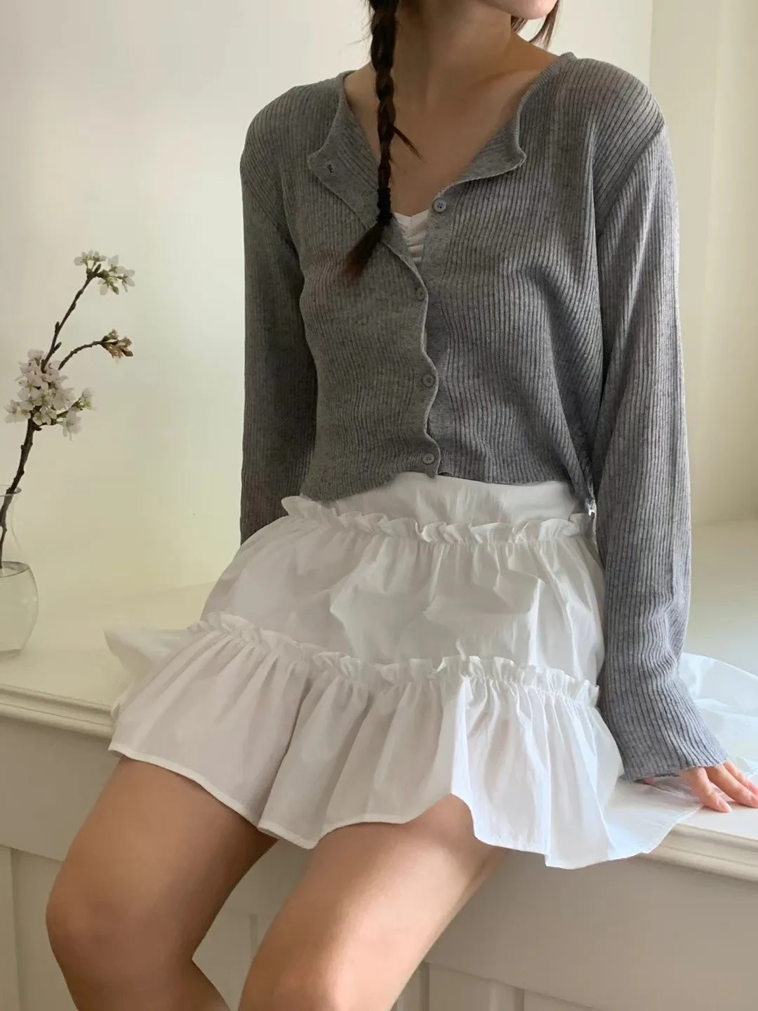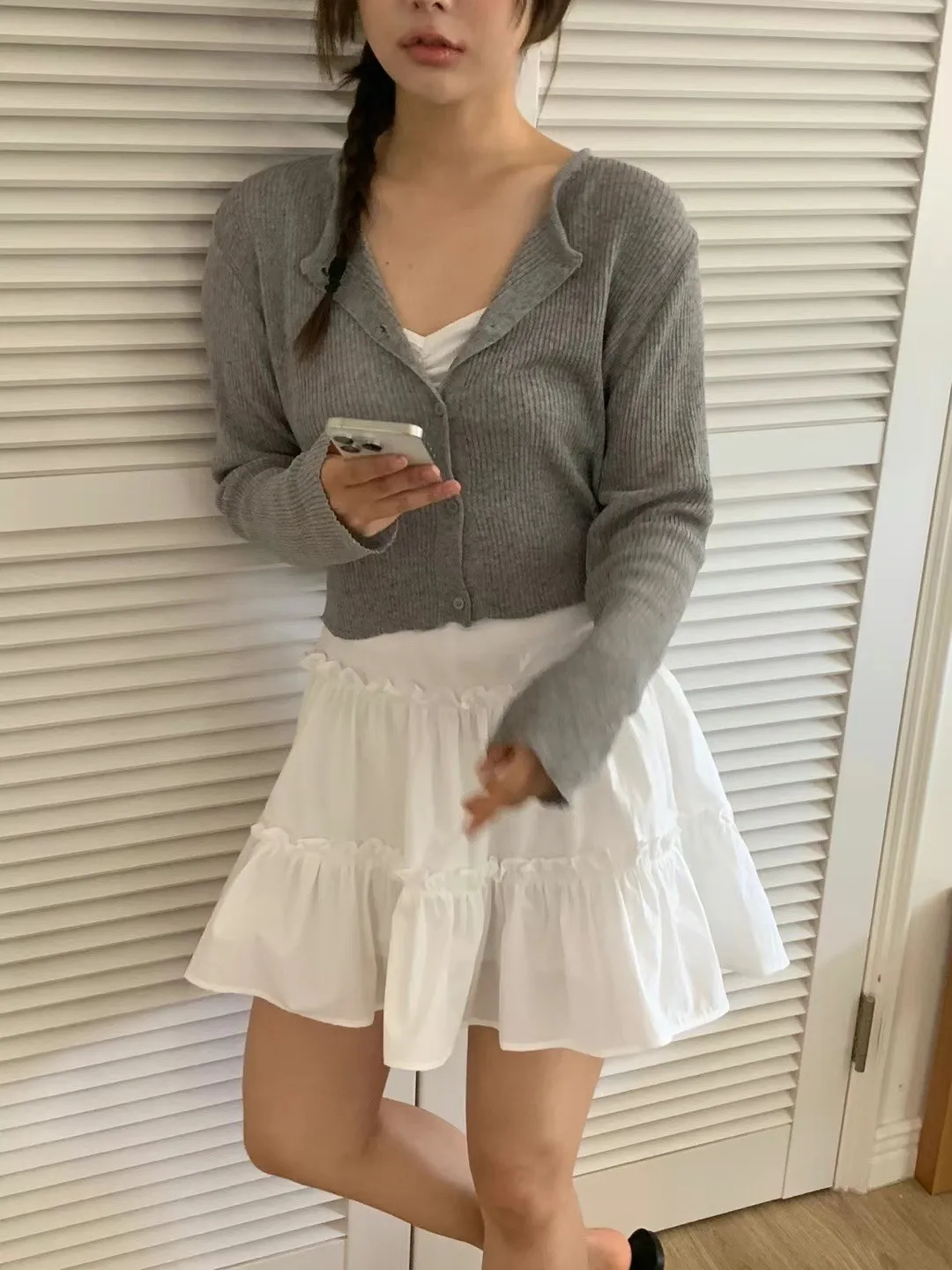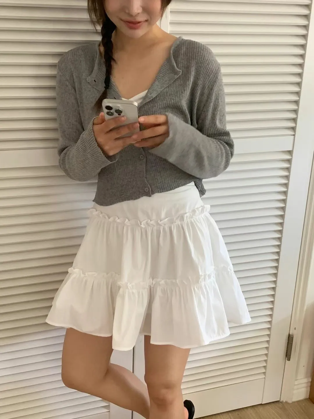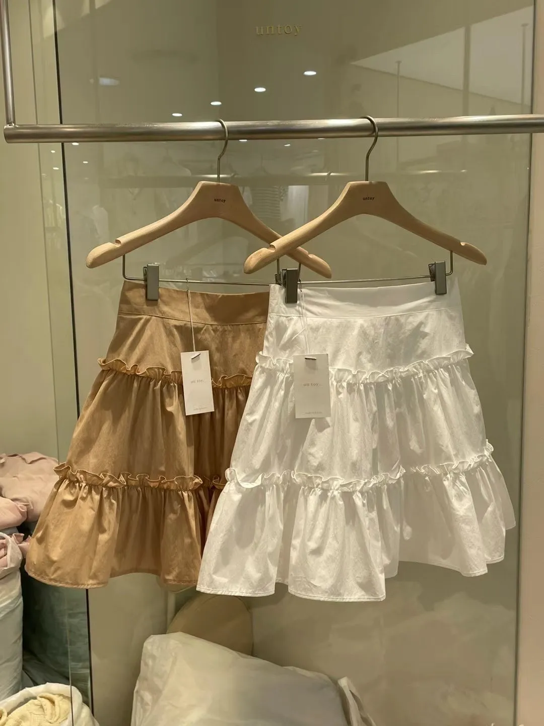 HJ1067唯美荷葉滾邊蛋糕裙 白 奶茶 官網價$ 780線上價$ 750
