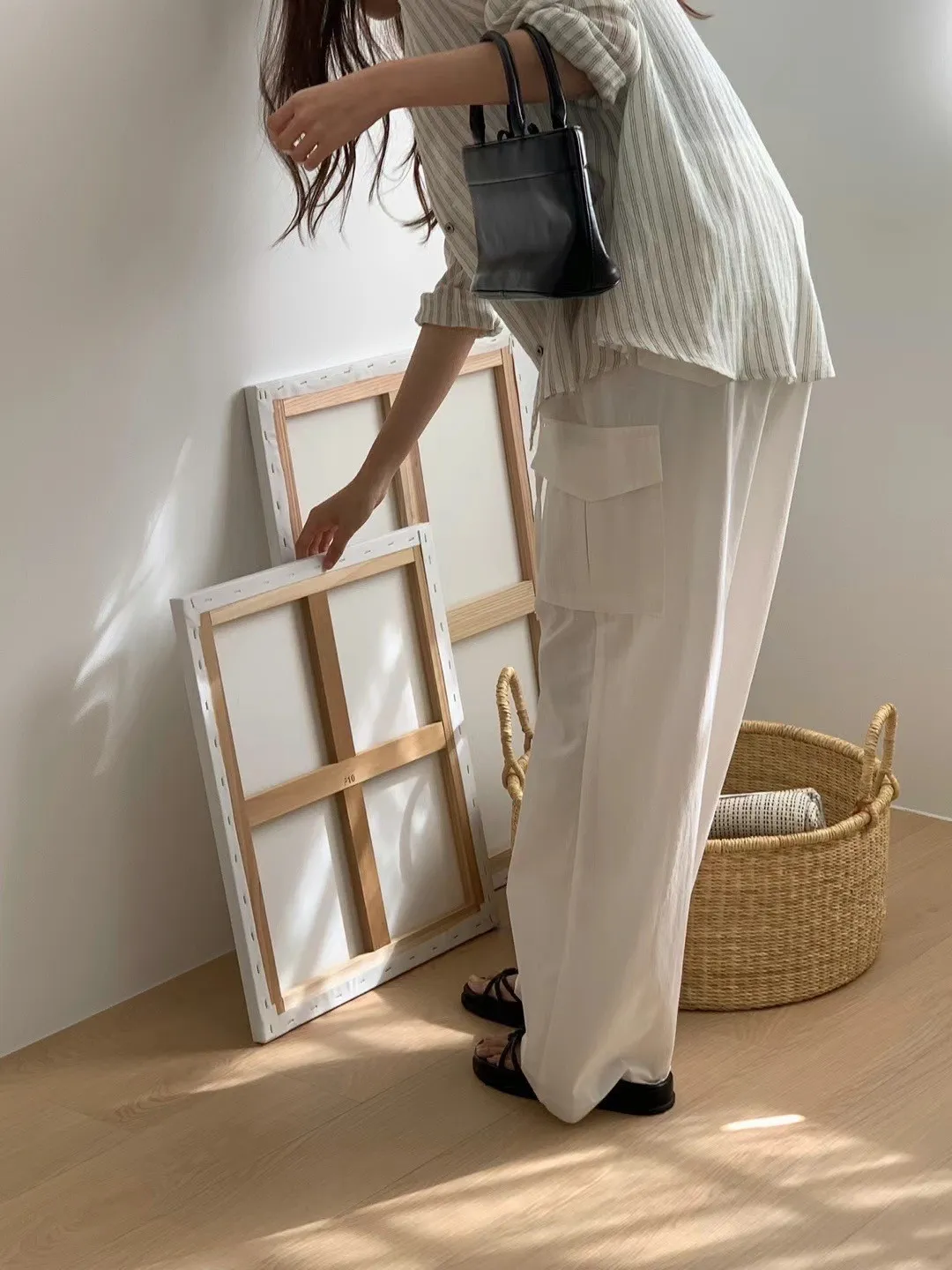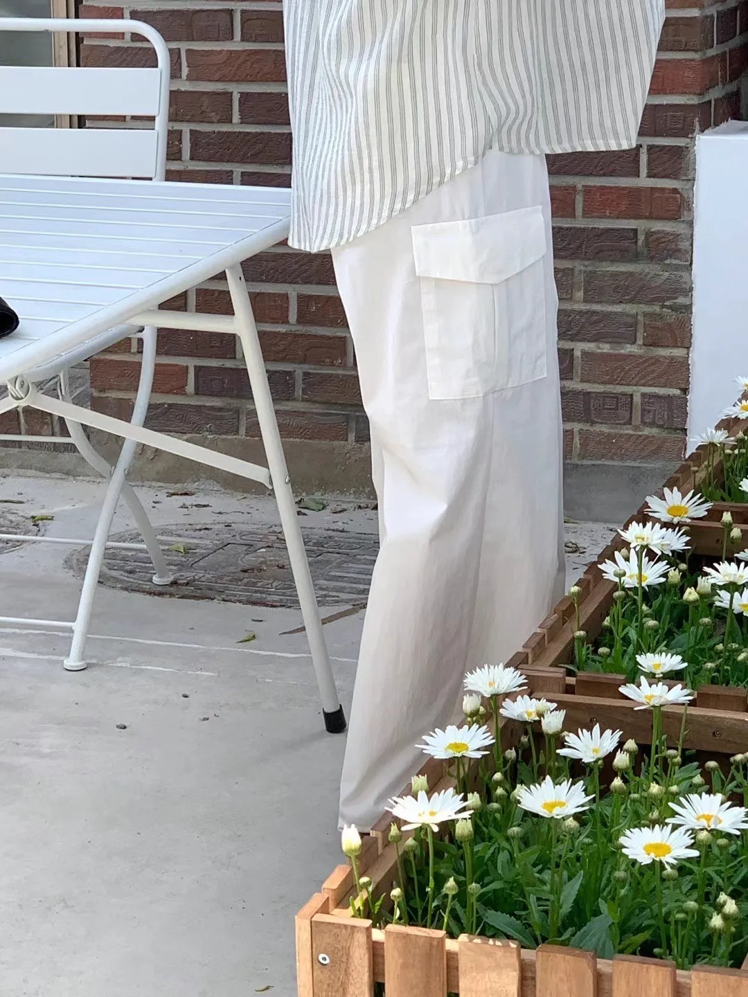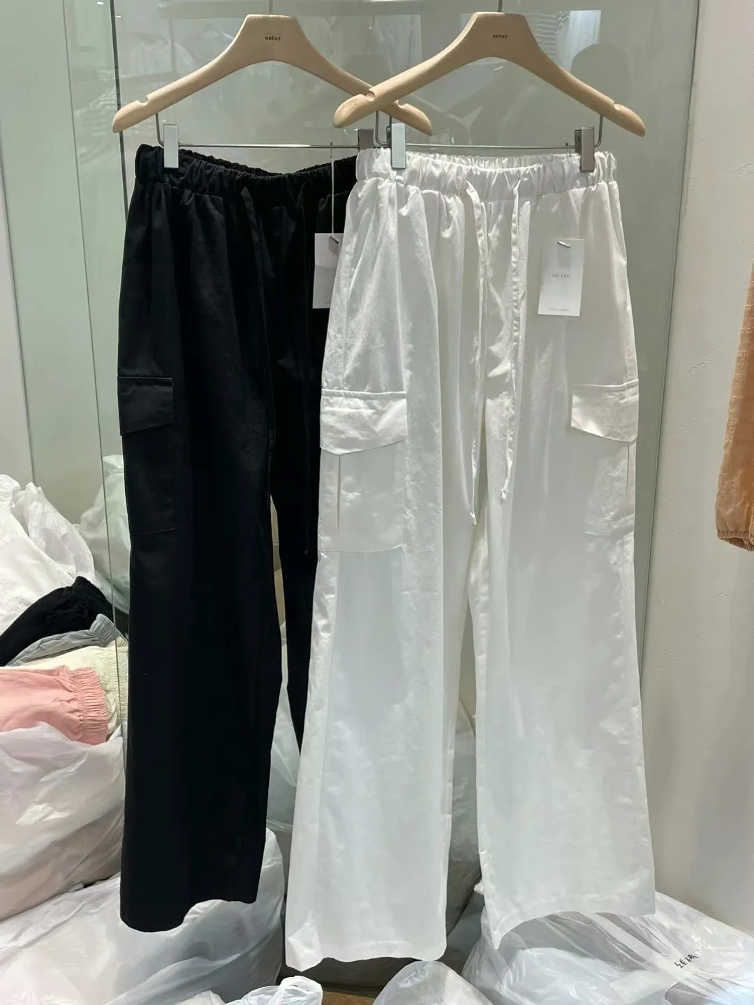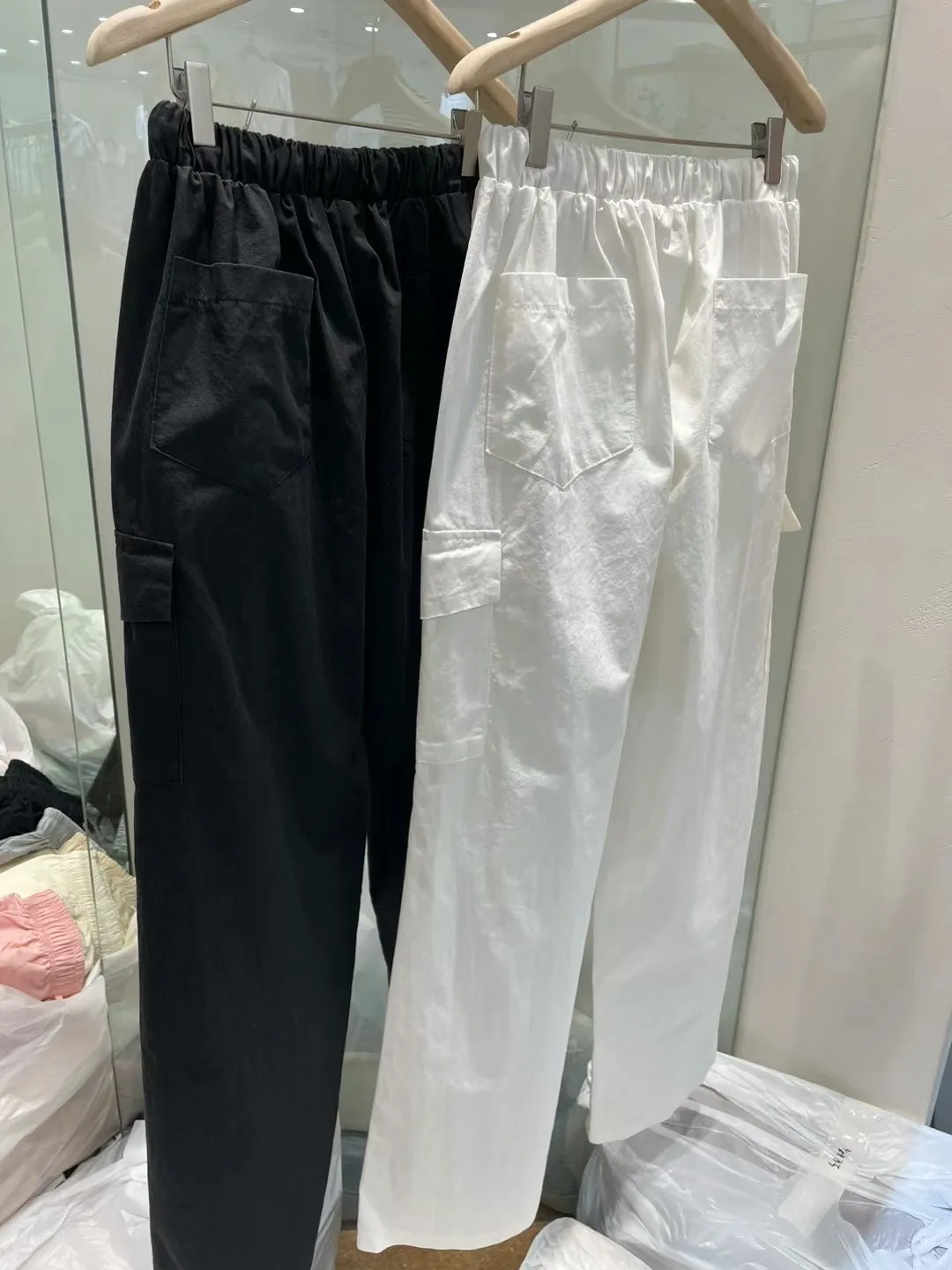 HJ1077雙側口袋工裝長褲 白 黑 官網價$1050 線上價$1020