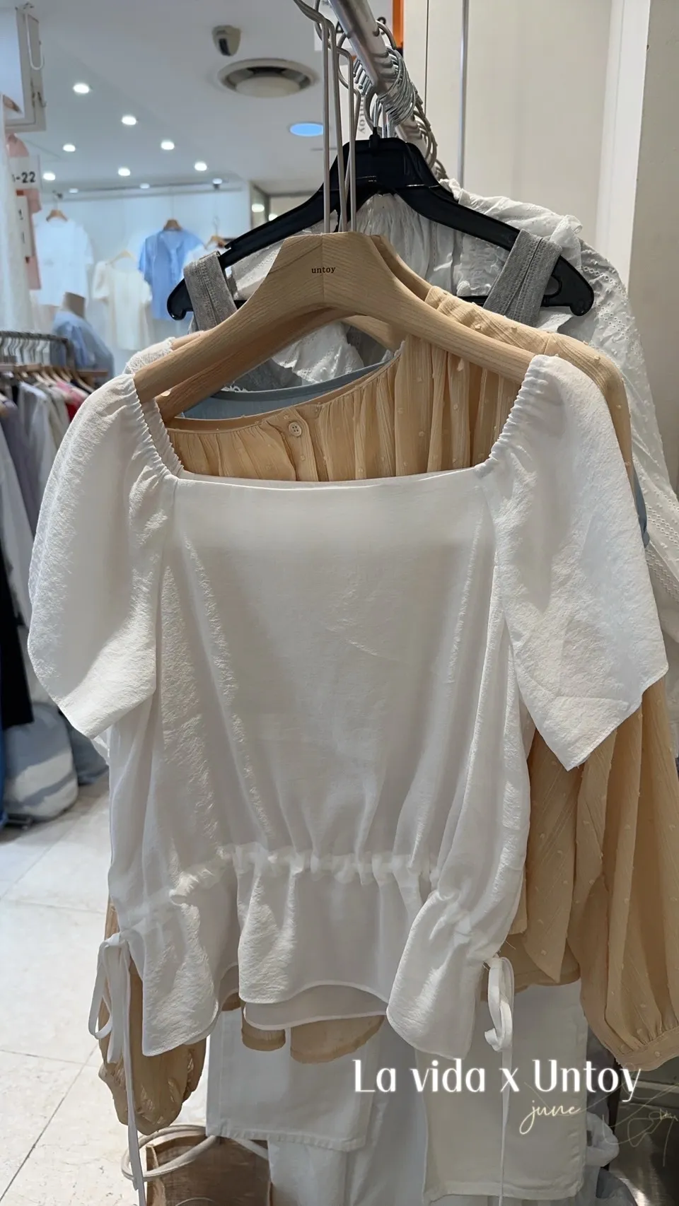 HJ1083女神降臨方領細腰上衣 白 米 官網價$620 線上價$590