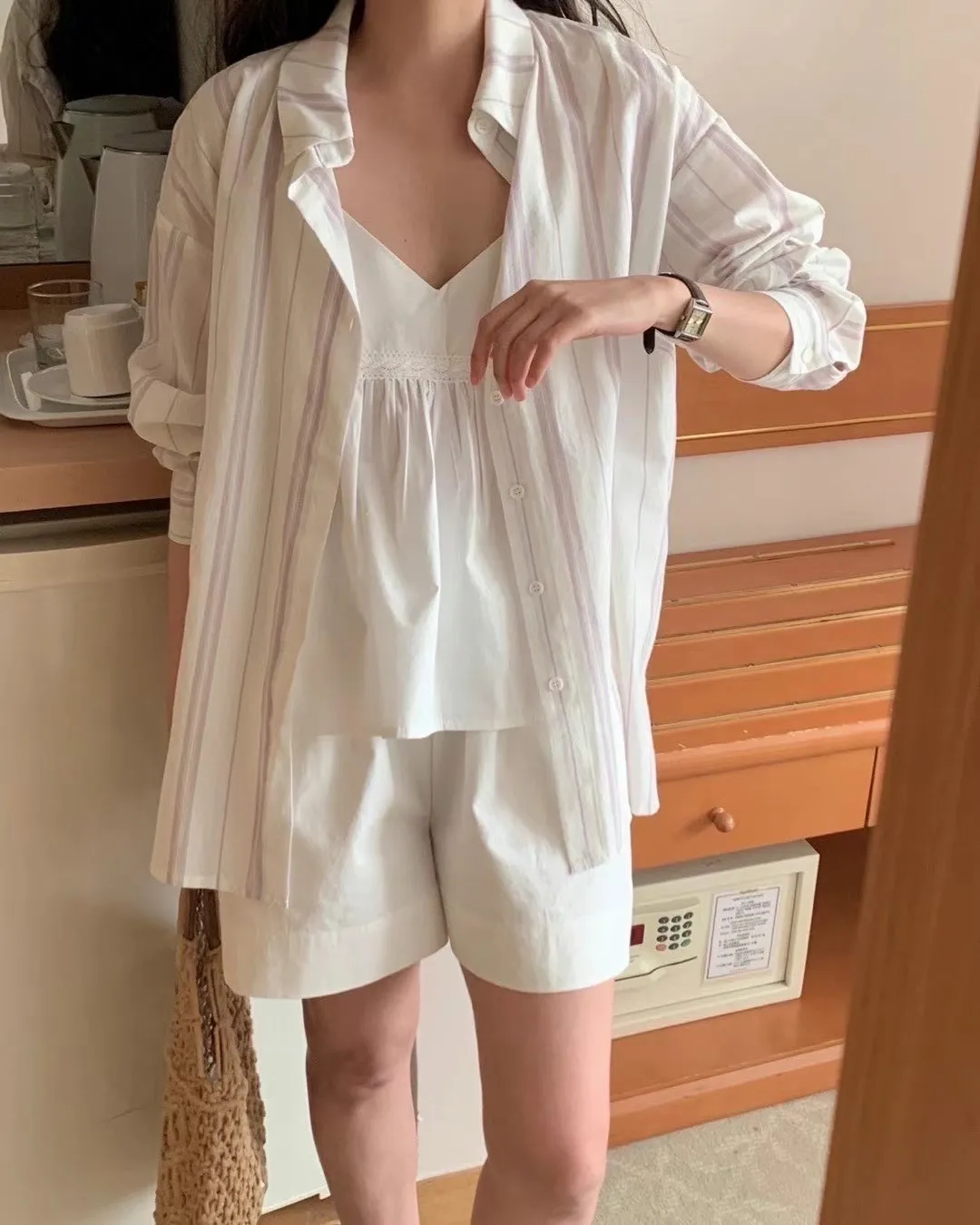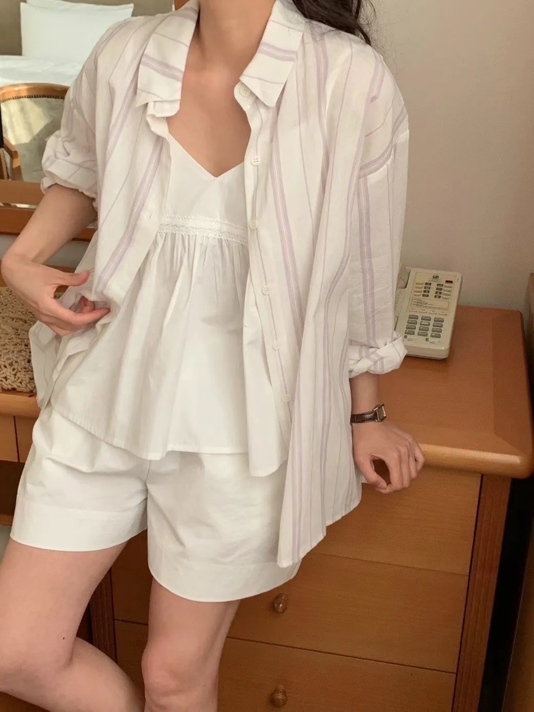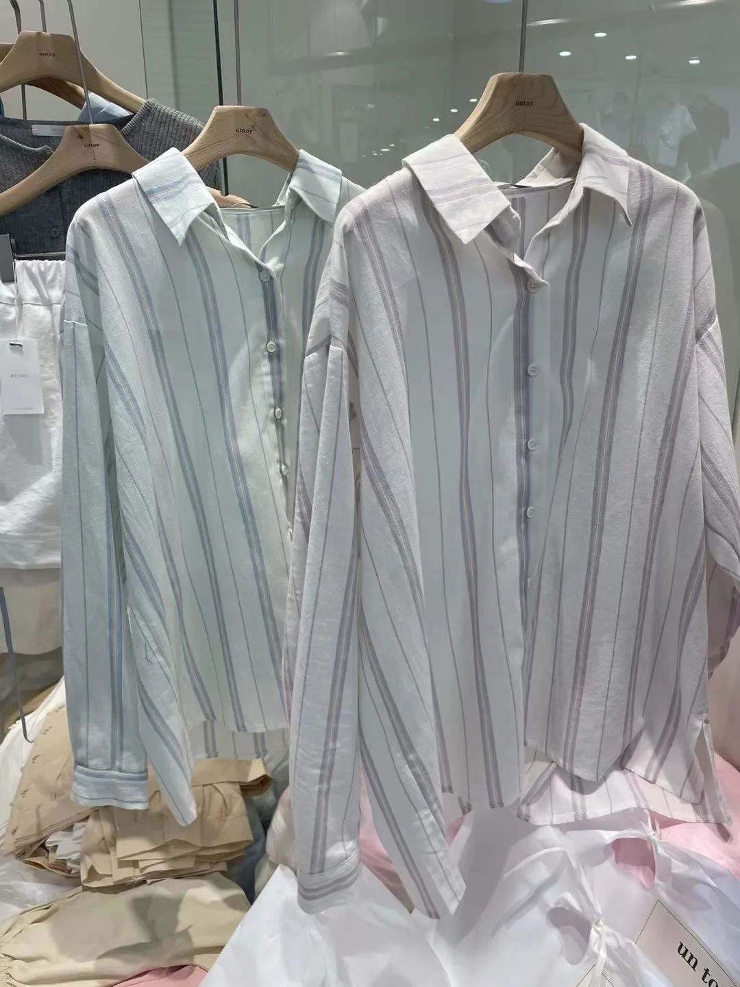 HJ1086薄款清爽直條紋長袖襯衫 藍 紫 官網價$799 線上價$769
