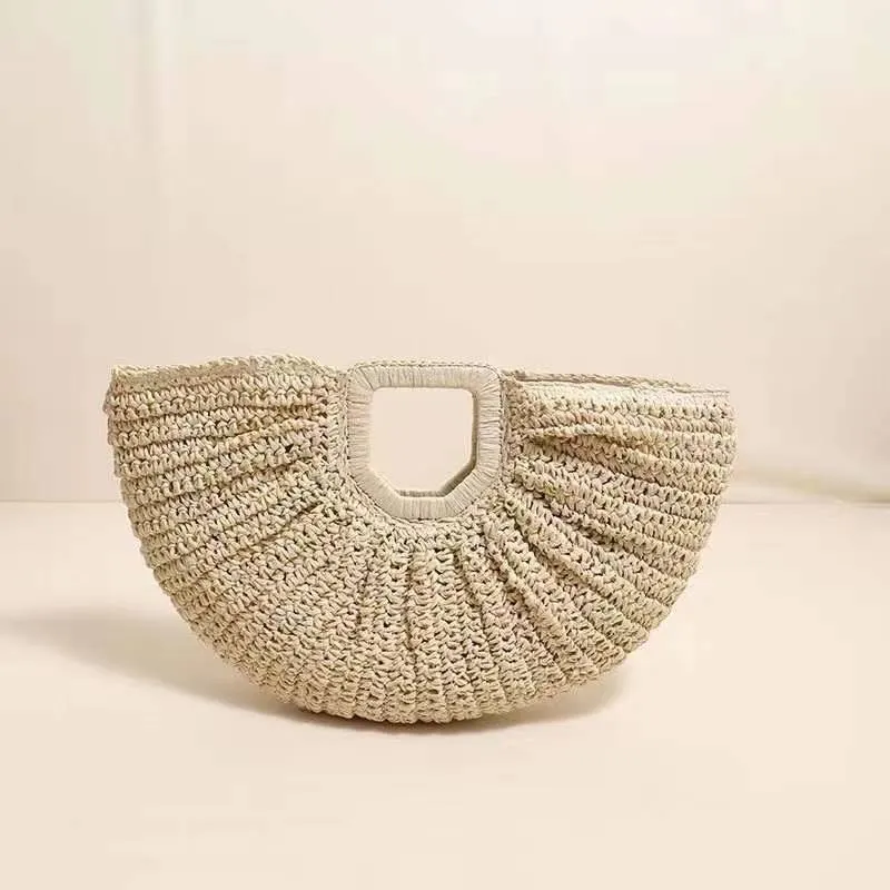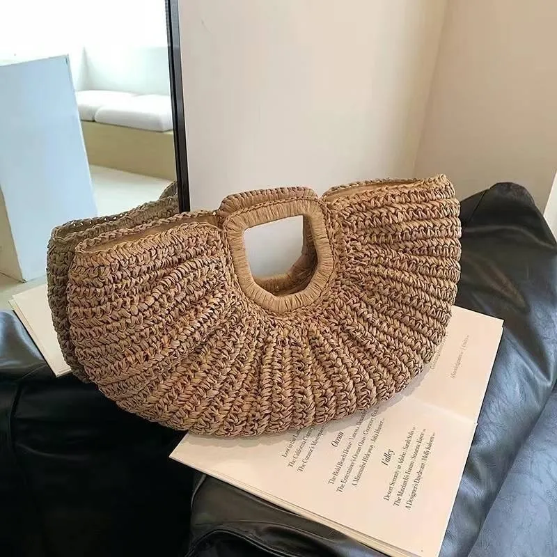 HJ1097時髦經典扇形草編包包 米 咖 官網價$690 線上價$660