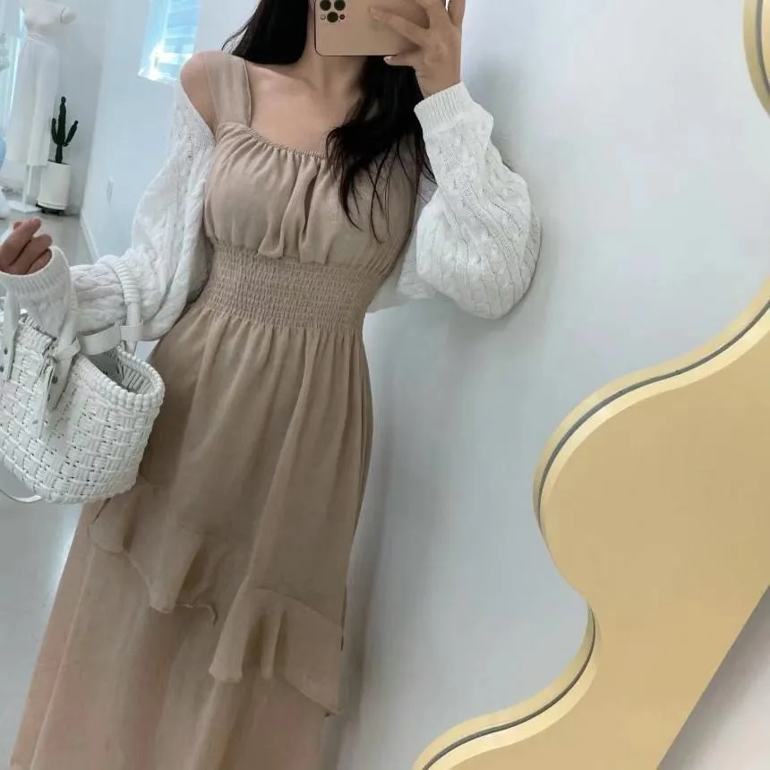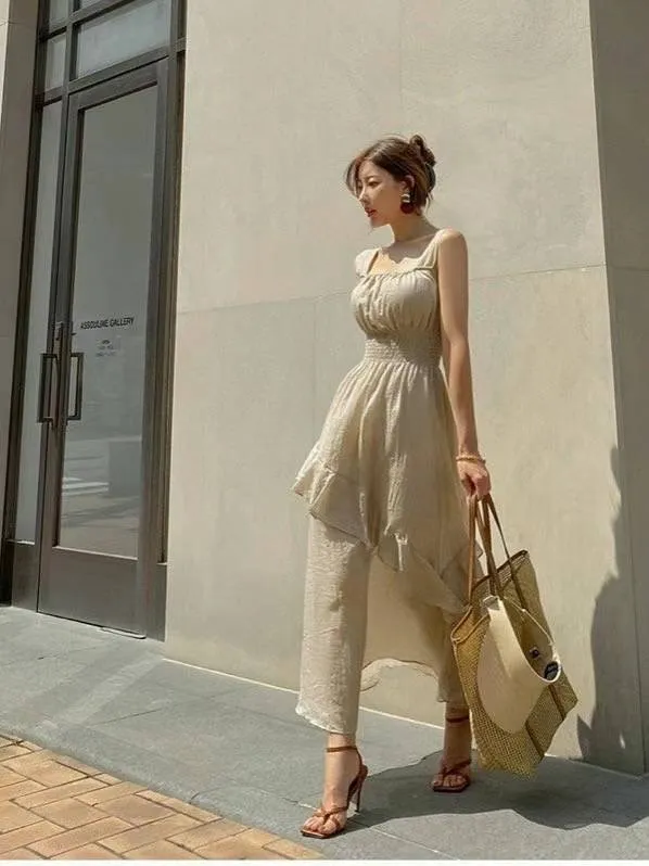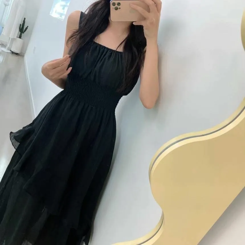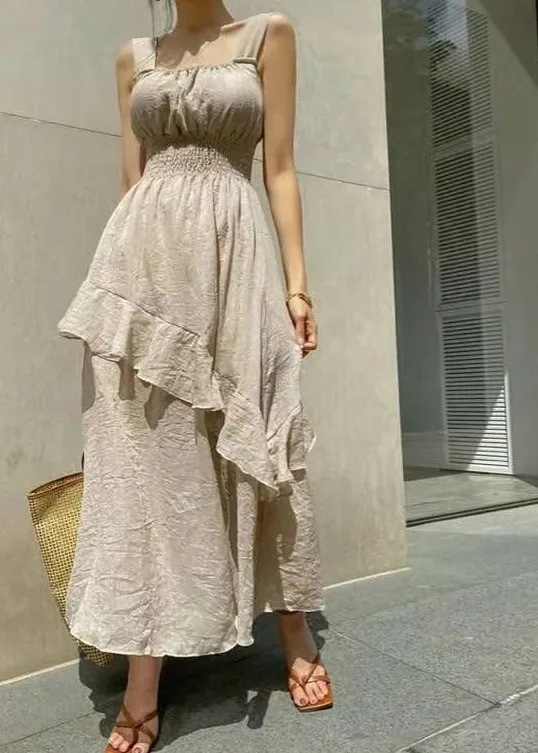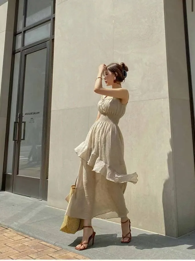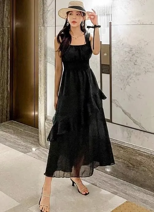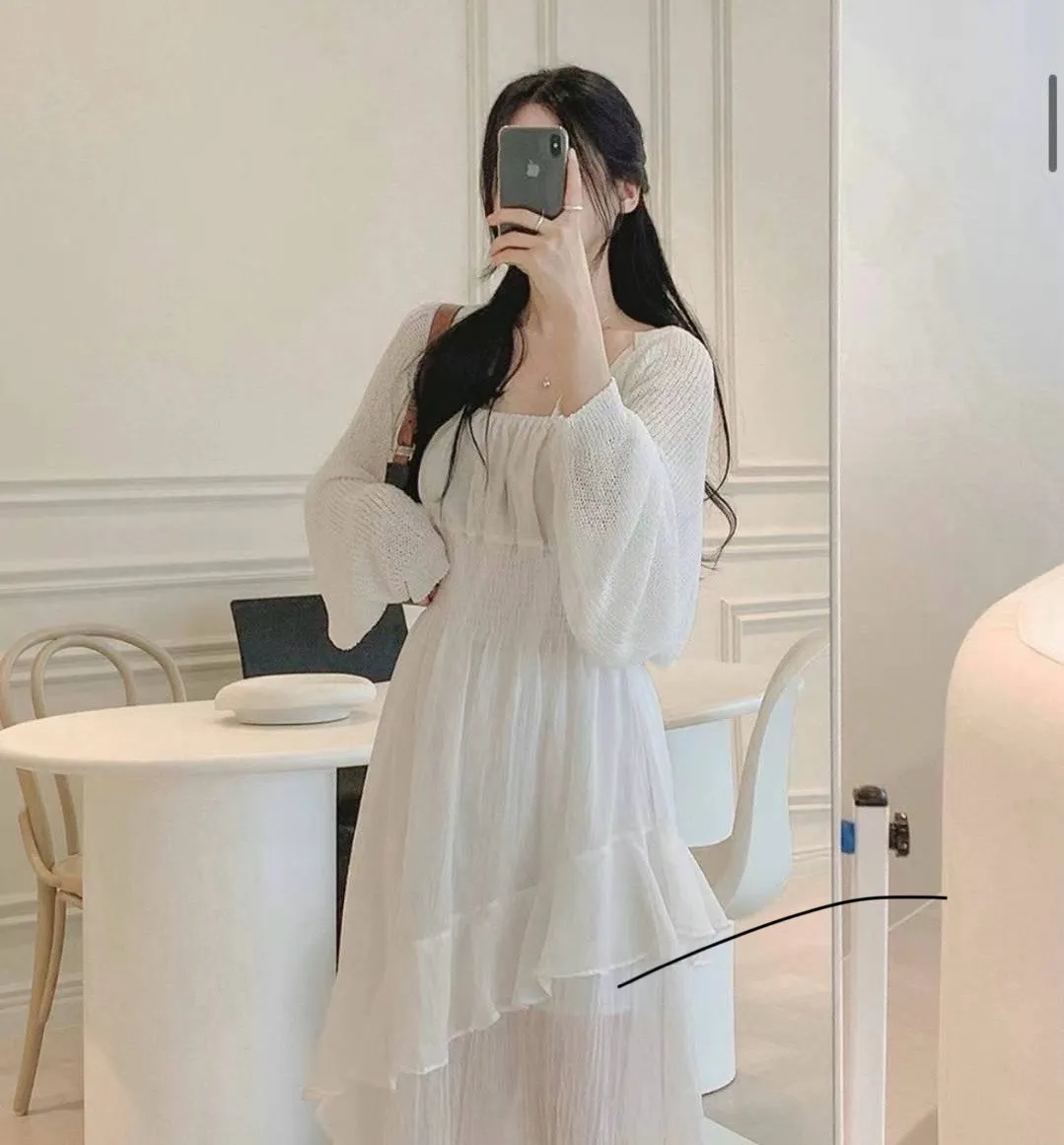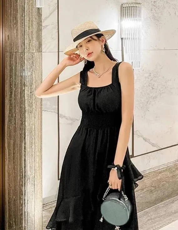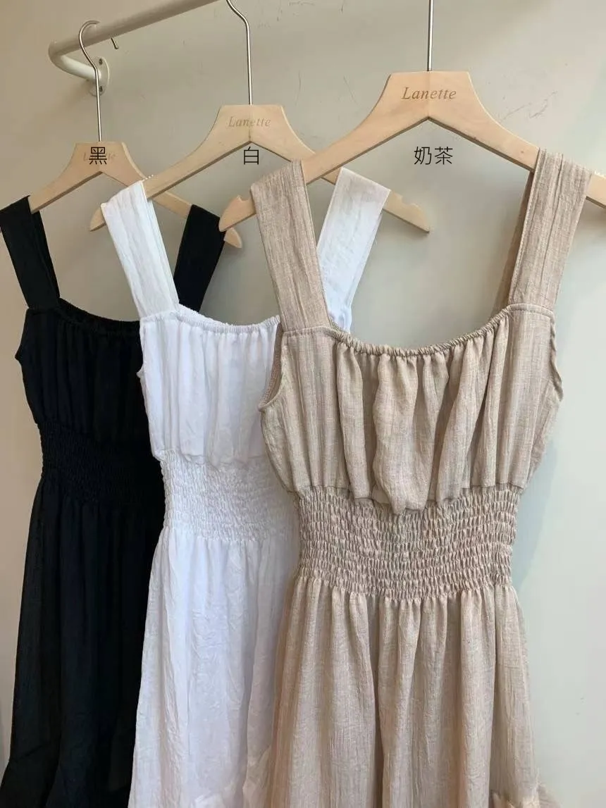 HJ1102推薦款女神方領層次斜下擺洋裝 白 黑 奶茶 官網價$990 線上價$960