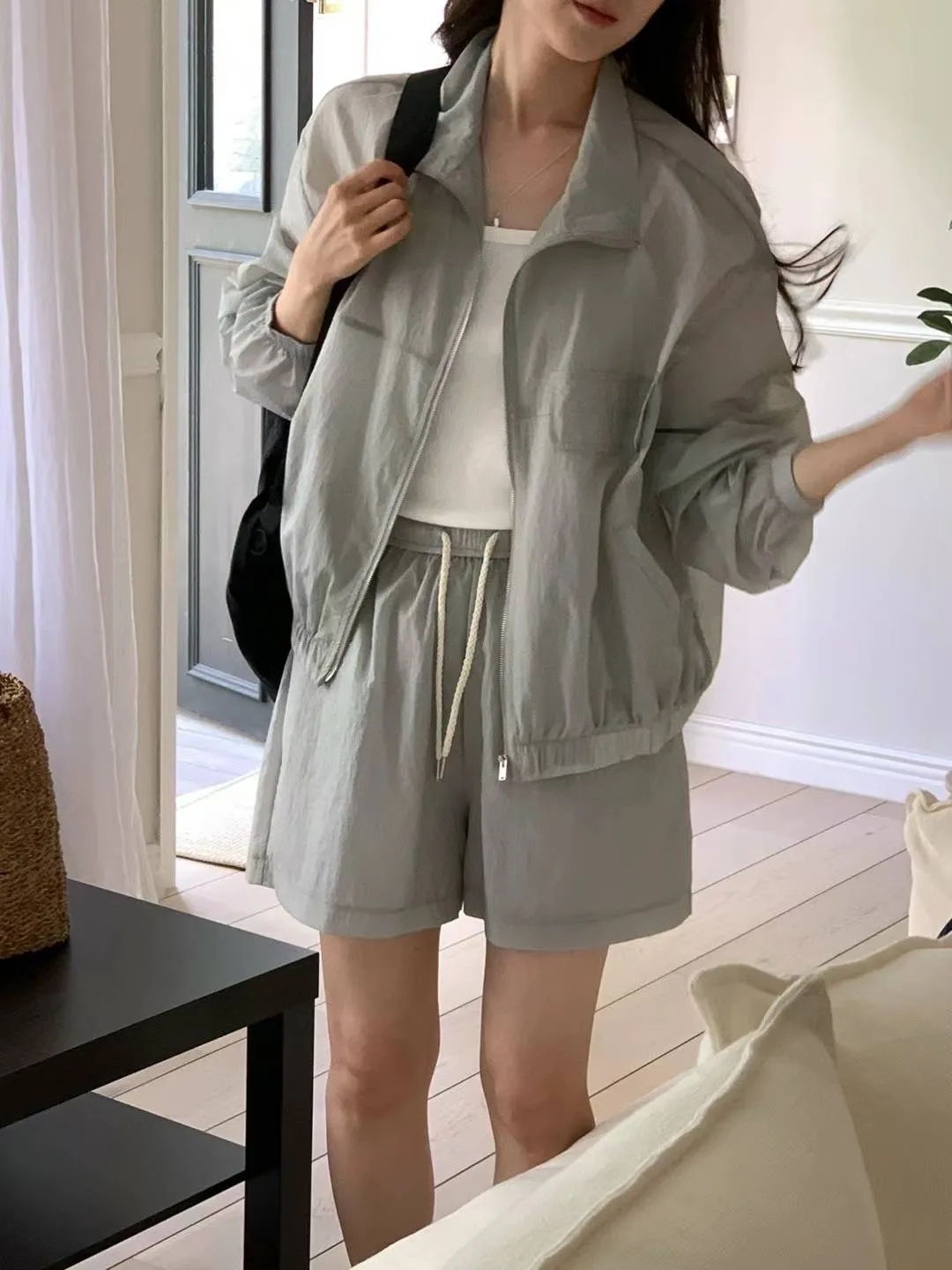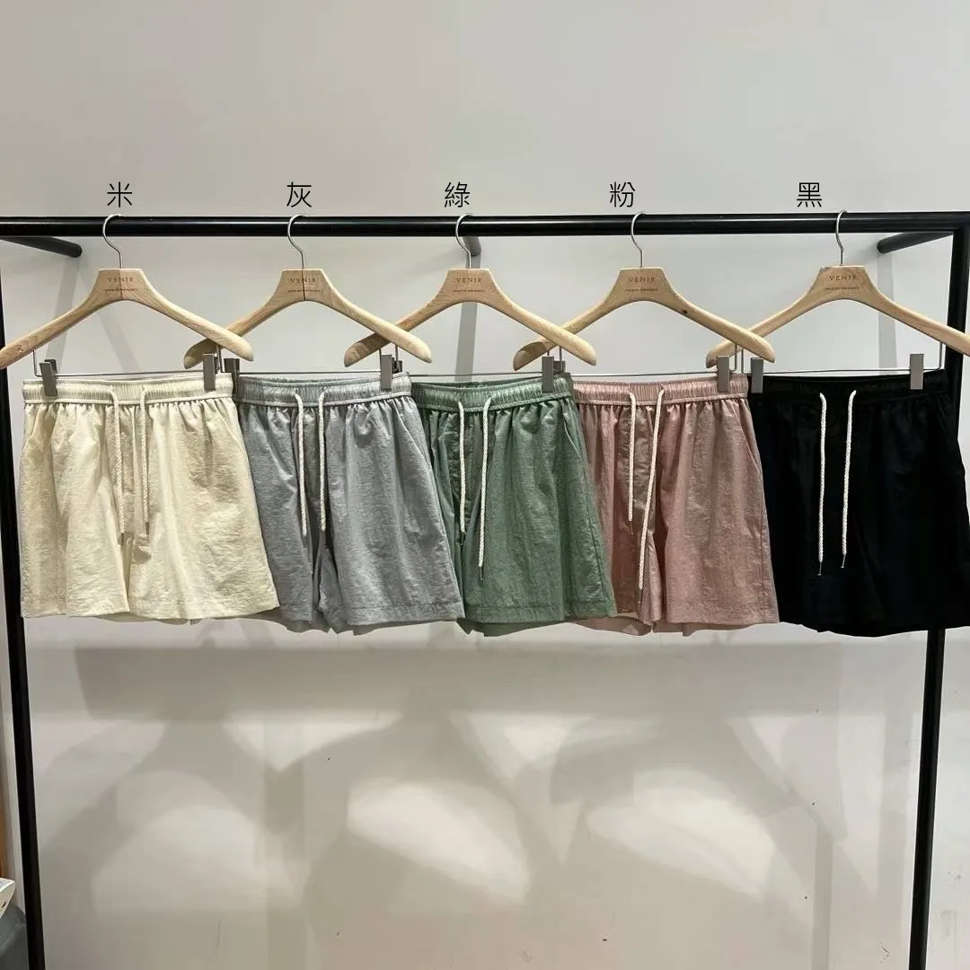 聚酯+尼龍 薄款輕盈 有口袋 有內裡 全腰鬆緊有抽繩