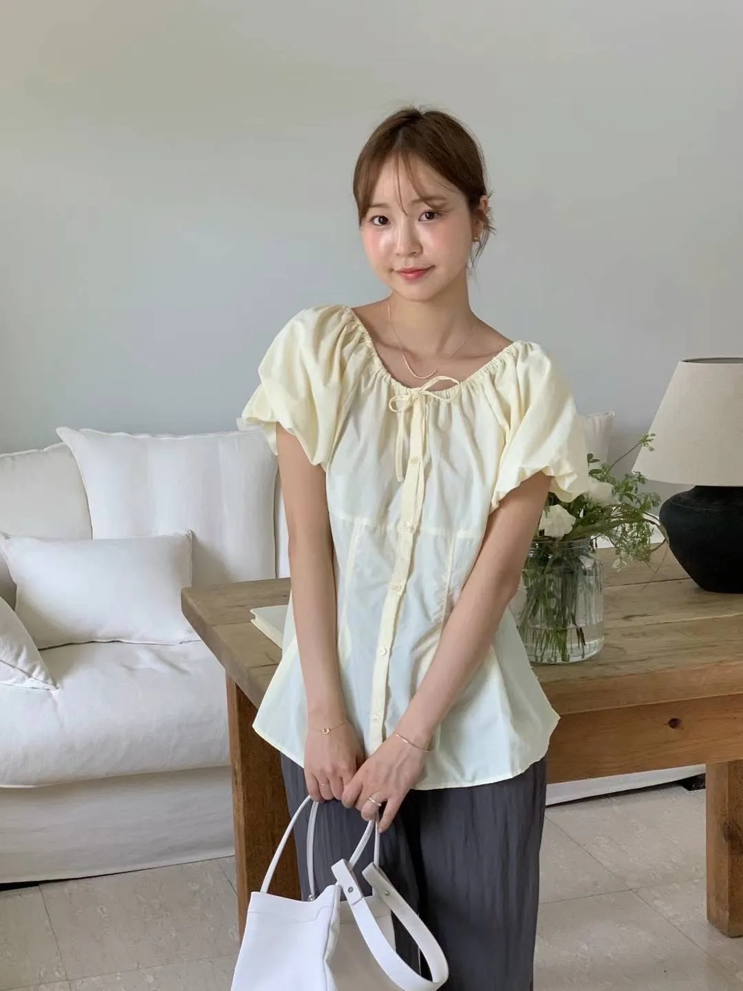 HJ1143氣質腰身娃娃裝上衣 白 粉 黃 黑 官網價$990 線上價$960