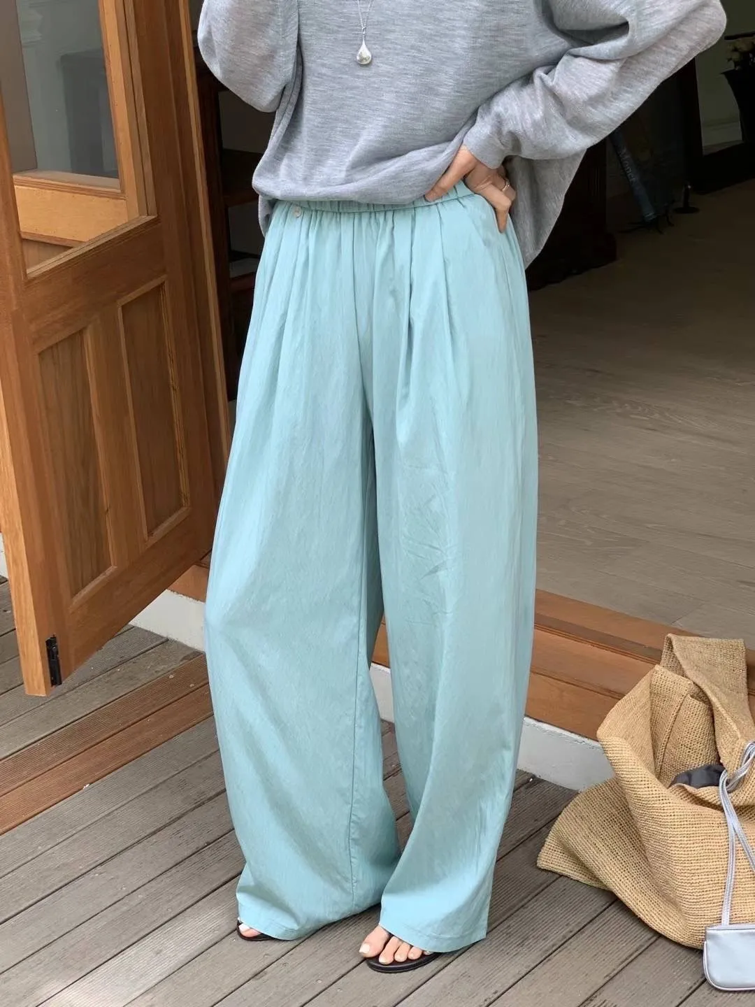 天絲+棉 涼感舒適 有垂墜感 有口袋 細細壓摺 很舒服 適合夏天