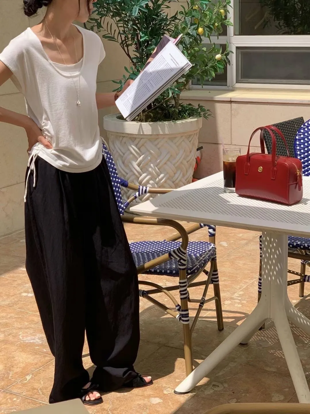 天絲+聚酯,假兩件 雙腰抽繩 空間寬鬆 穿到小L