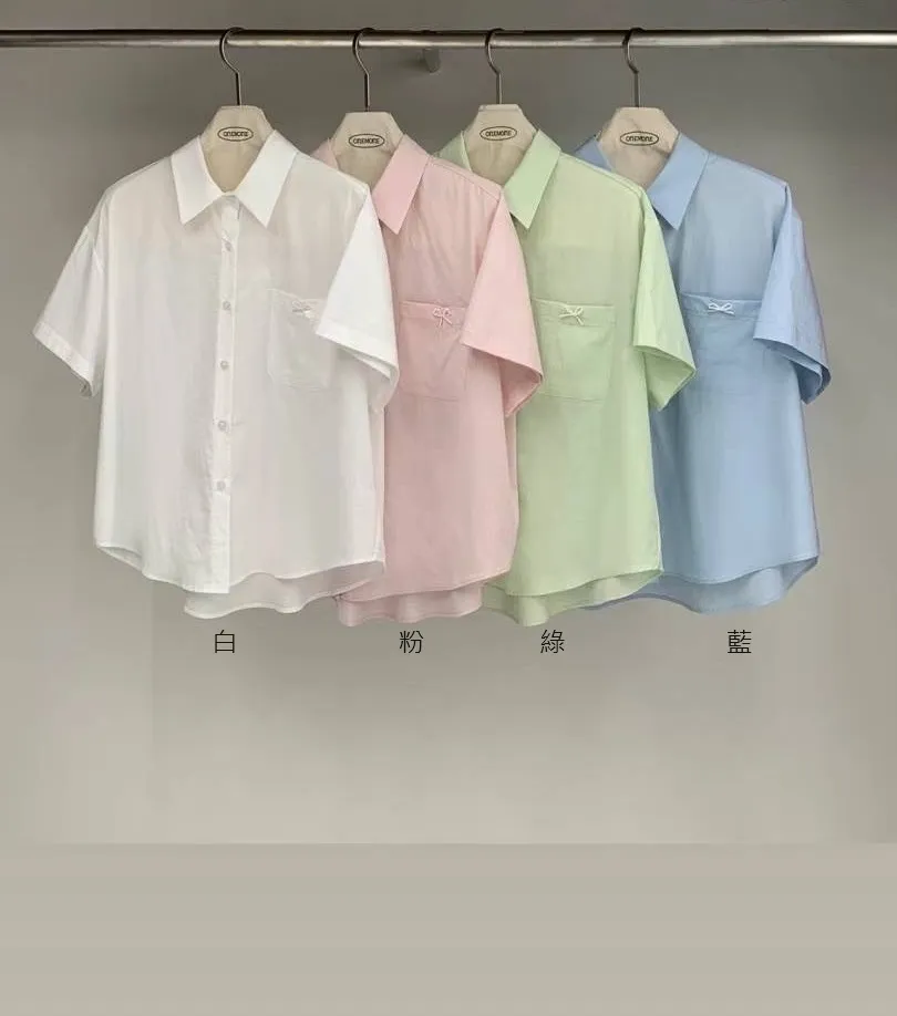 HJ1158小珍珠蝴蝶結短袖襯衫 白 粉 綠 藍 官網價$950 線上價$920