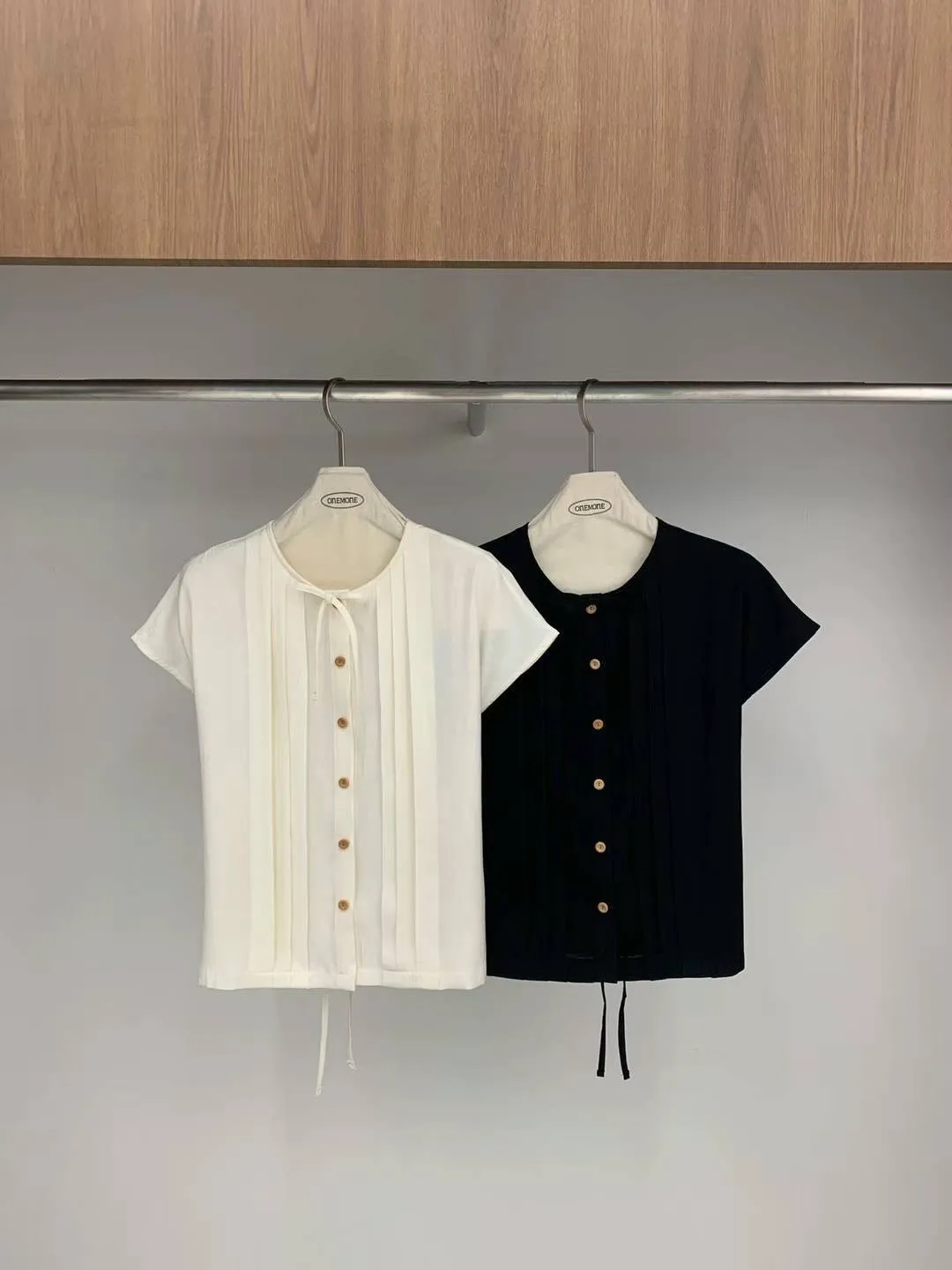 HJ1161琴弦木釦美衣 米 黑 官網價$1120 線上價$1190
