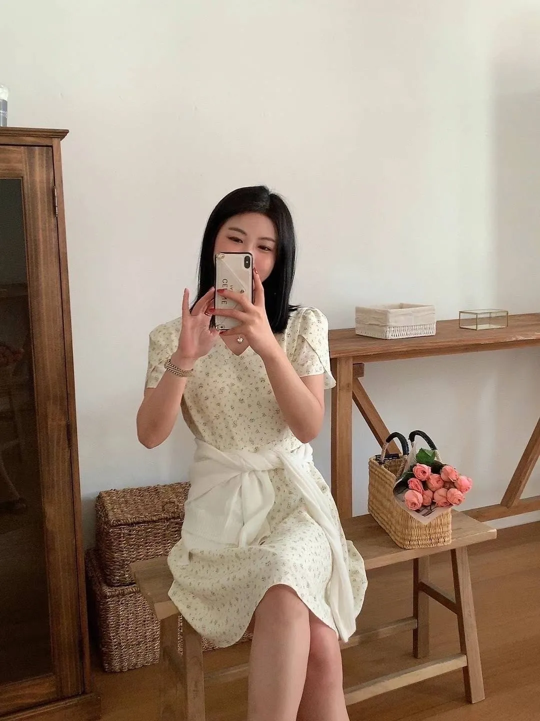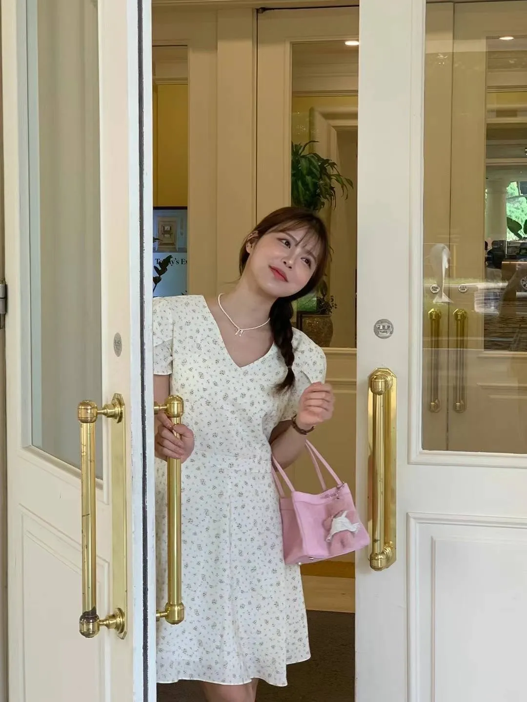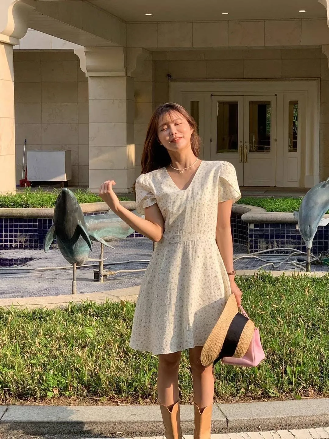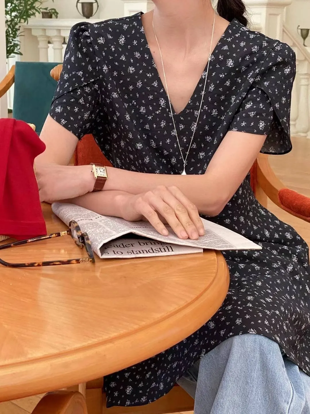 HJ1168鬱金香小碎花洋裝 米 黑 官網價$1280 線上價$1250