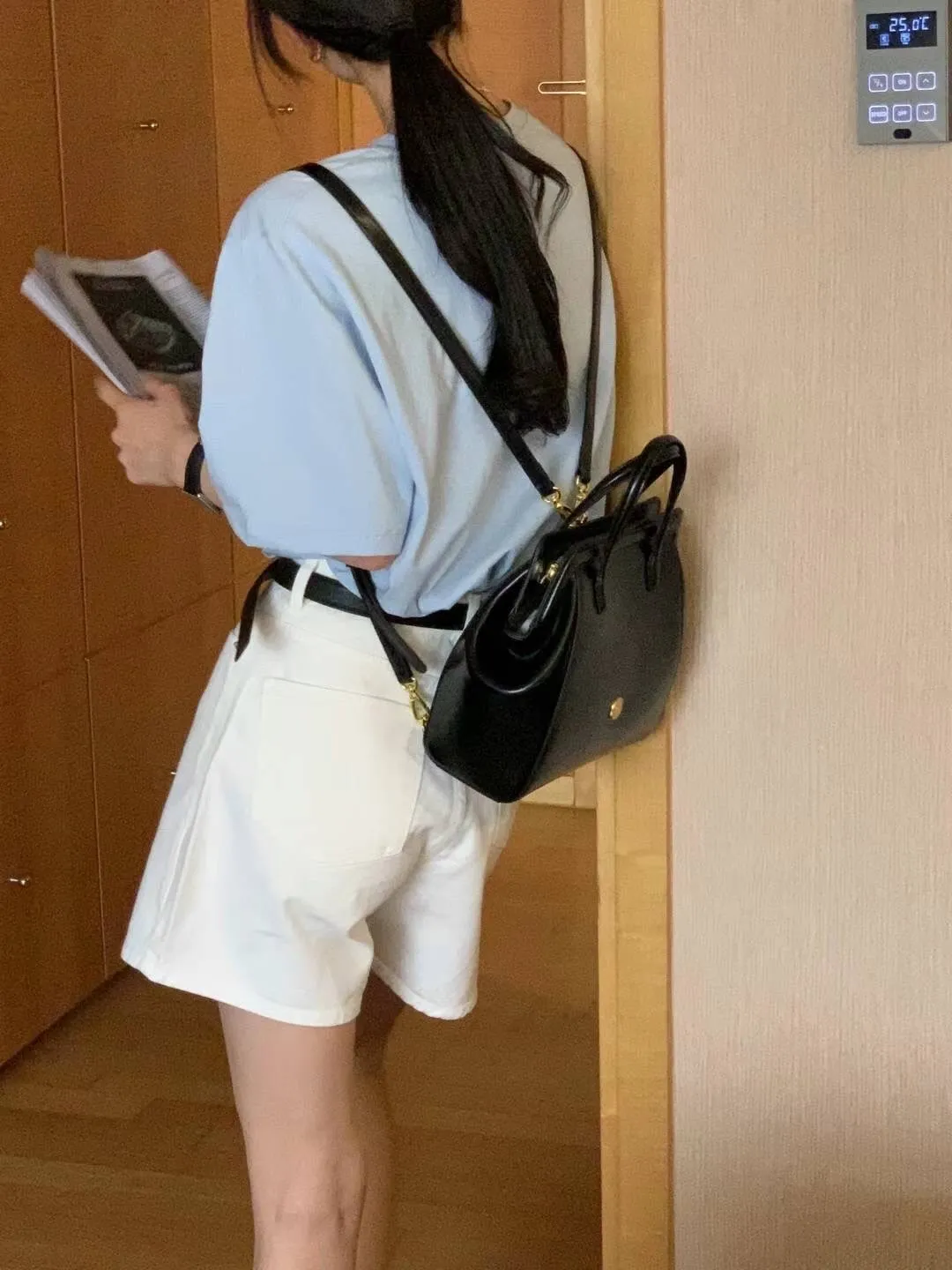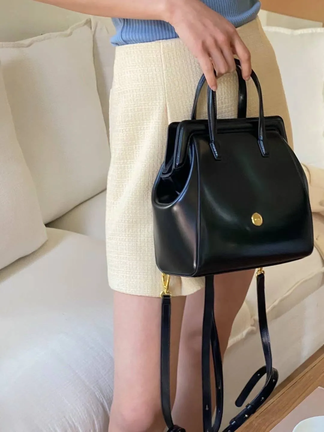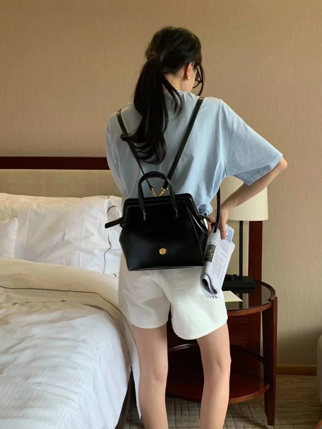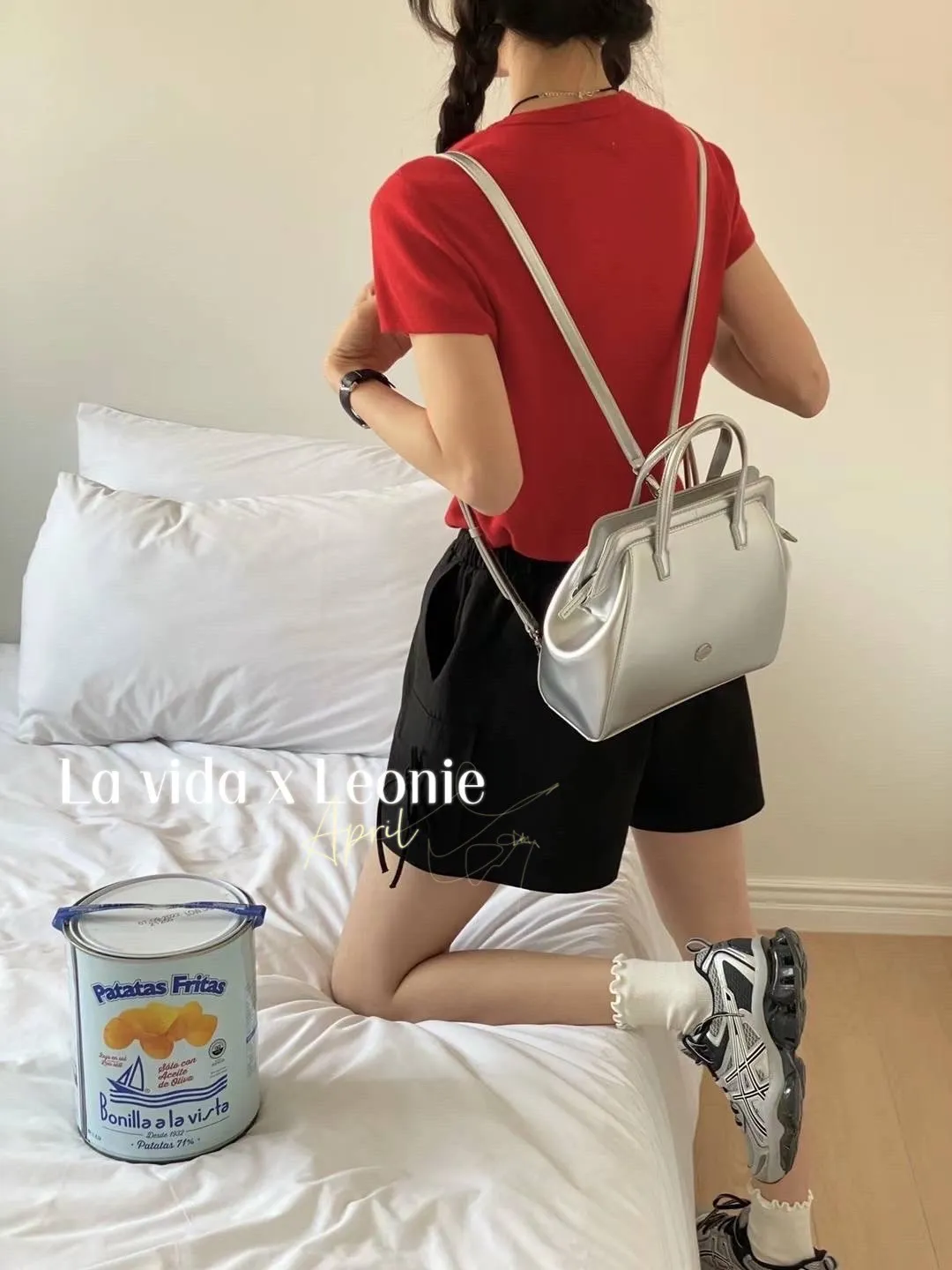 HJ1184回購款牛皮復古超質感雙肩背包(原TA104) 銀 黑 官網價$1970