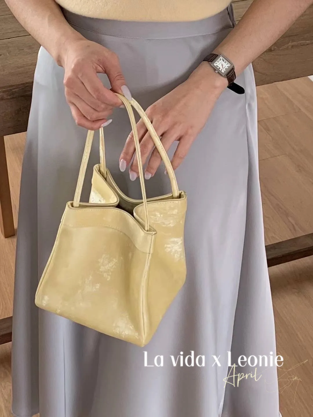 牛皮 附兩個肩帶 按壓式可調肩帶 底部有小金屬站立點 可變形成水餃包