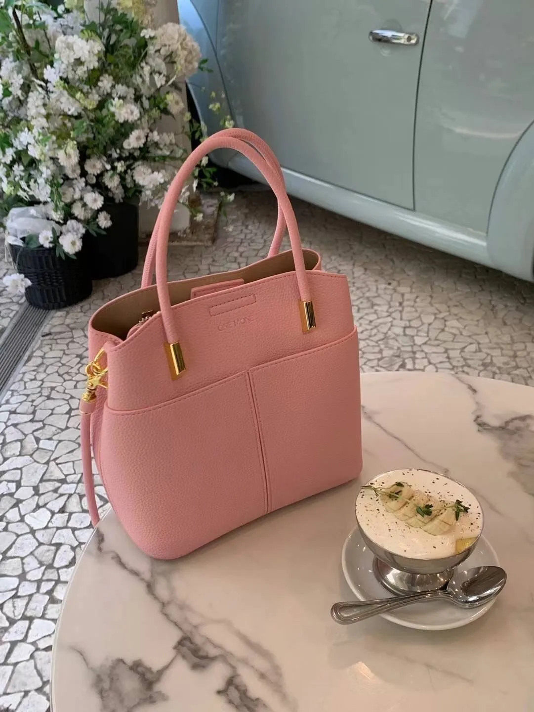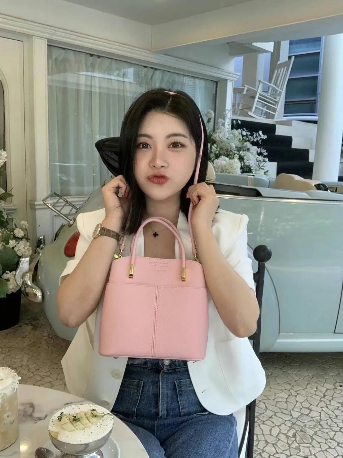 HJ1189回購款牛皮高顏值經典款包包(原TA109) 粉 黑 官網價$1380牛皮 拉鍊閉合 可手提有背帶 視覺高級感 細緻夾層 21*20*10公分以下粉色穿搭👇🏻