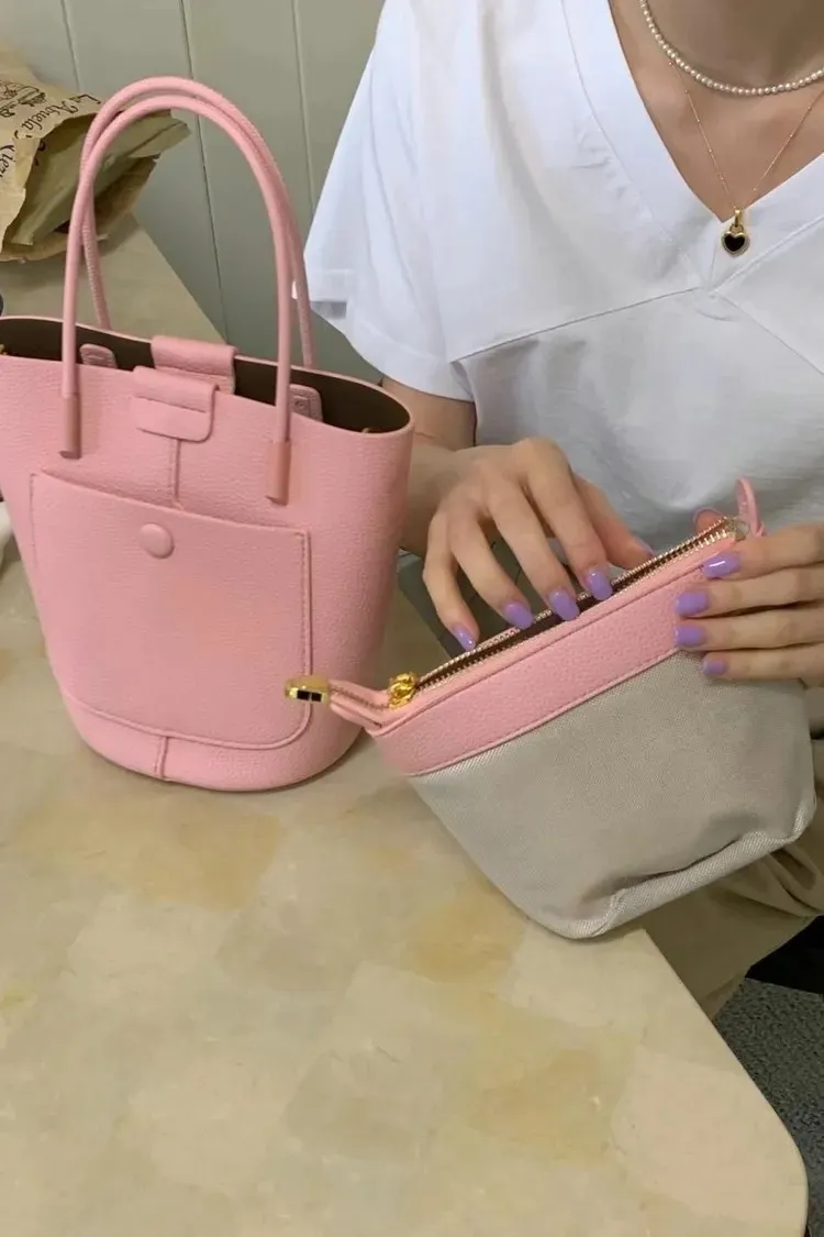 HJ1190回購款經典版獨家設計Leonie水桶包(原TA110) 粉 白 黃 官網價$1250