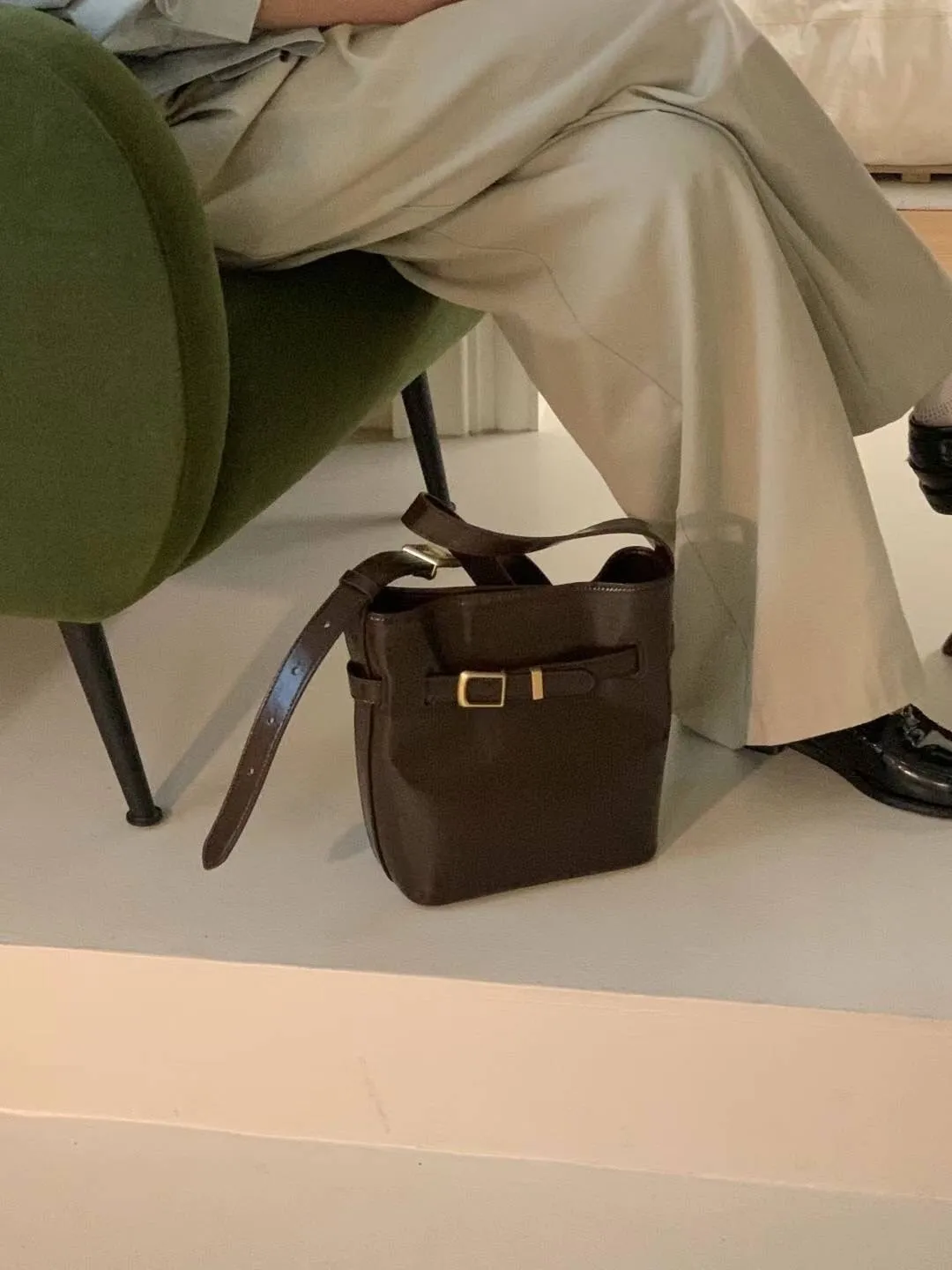 HJ1191回購款牛皮霧金腰封設計感包包(原TA111) 咖 黑 官網價$1550