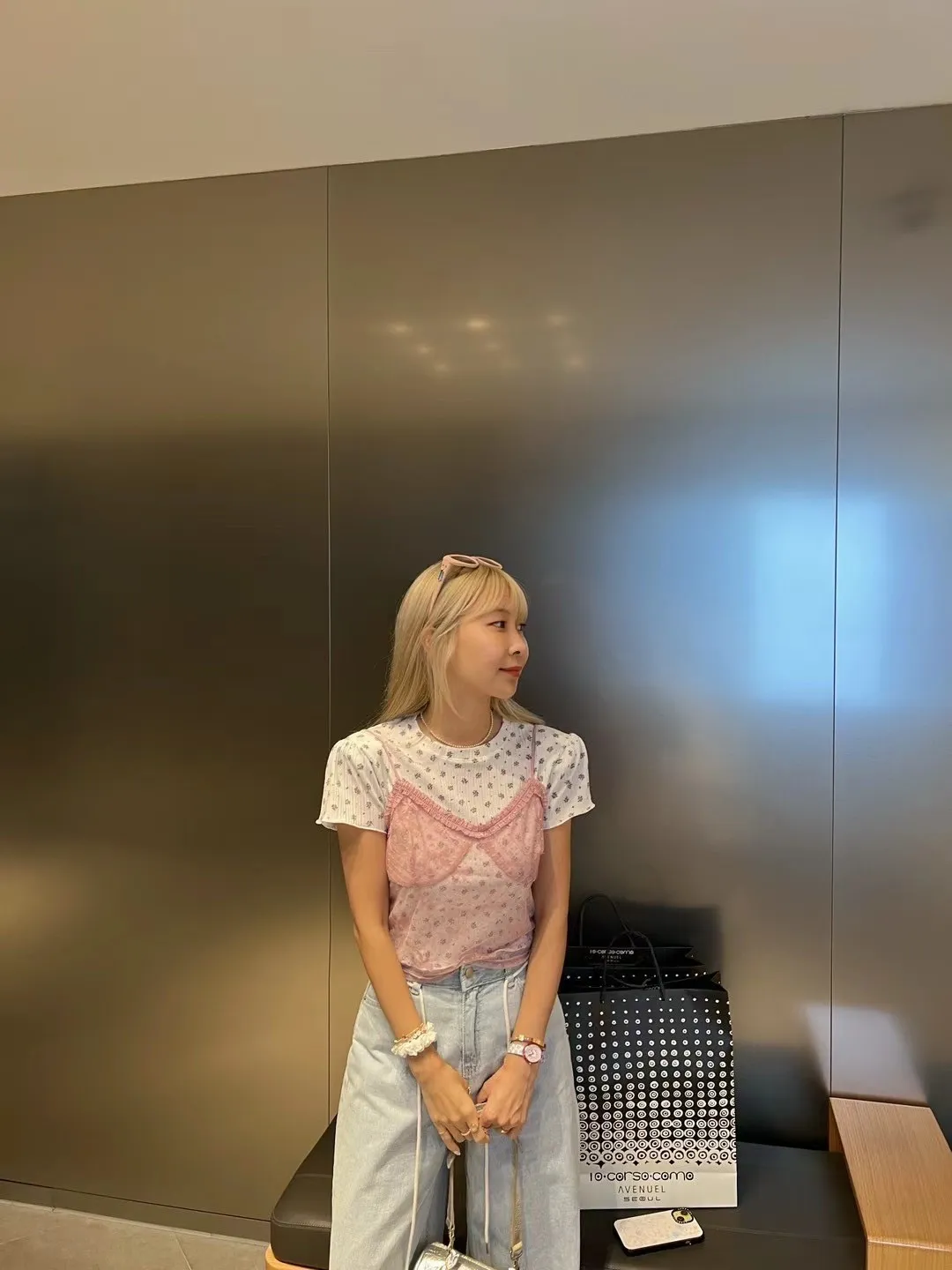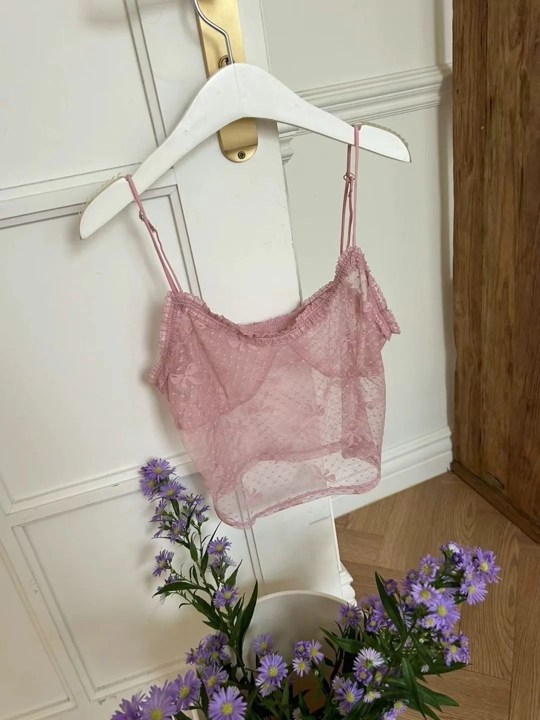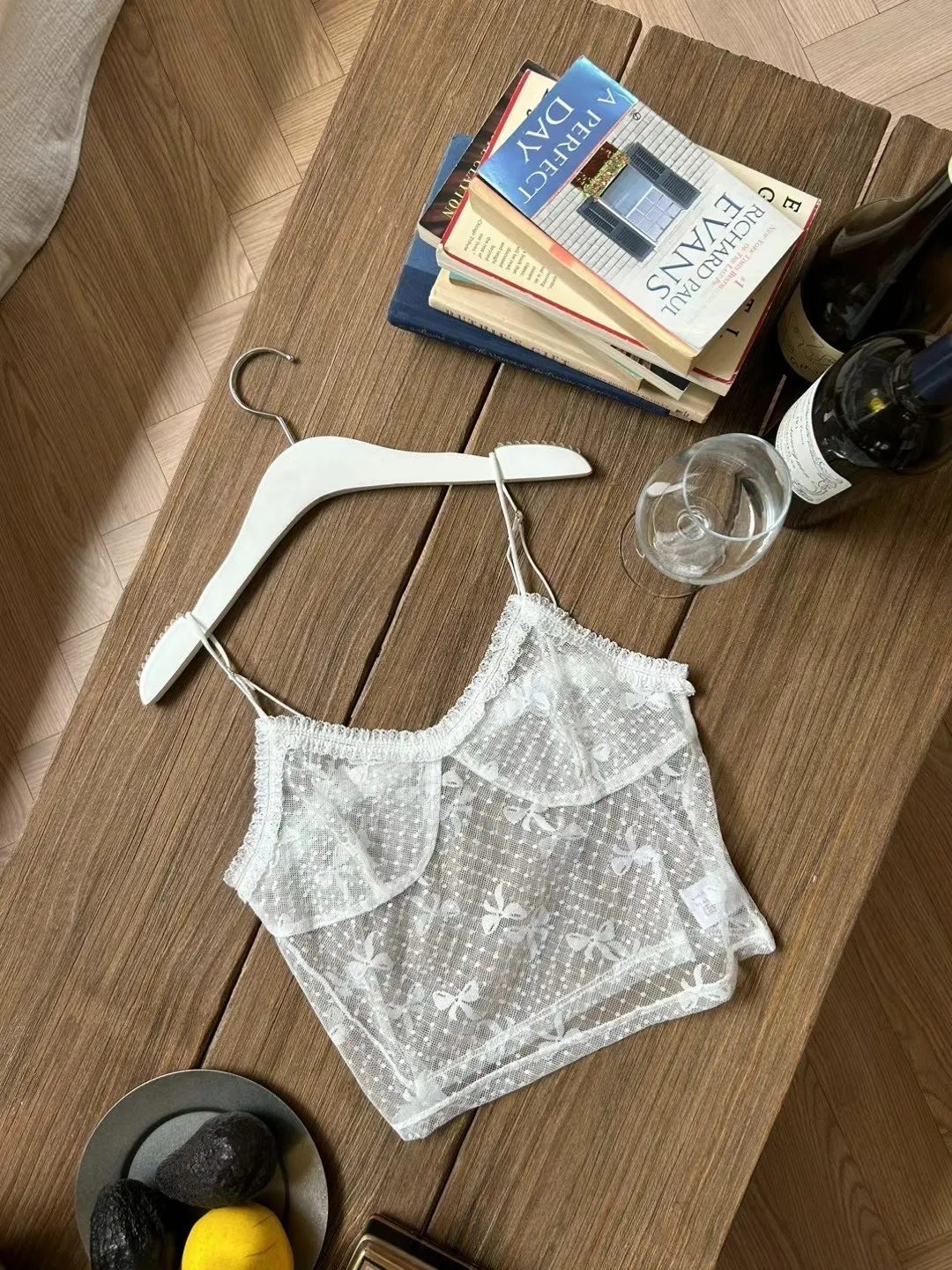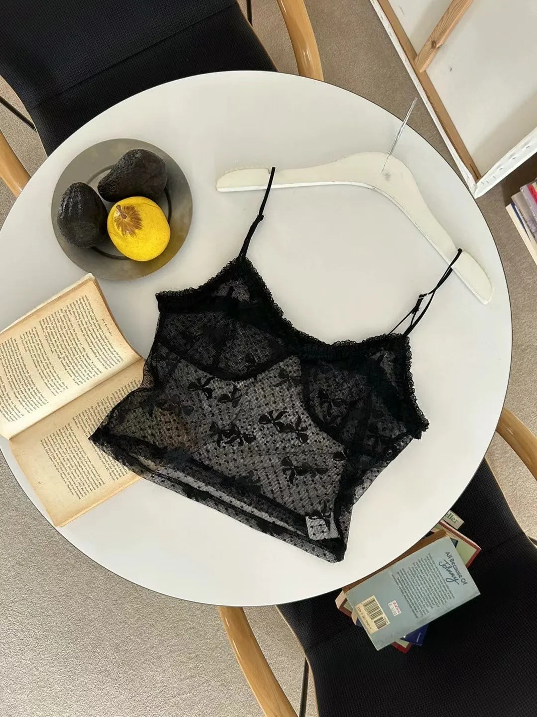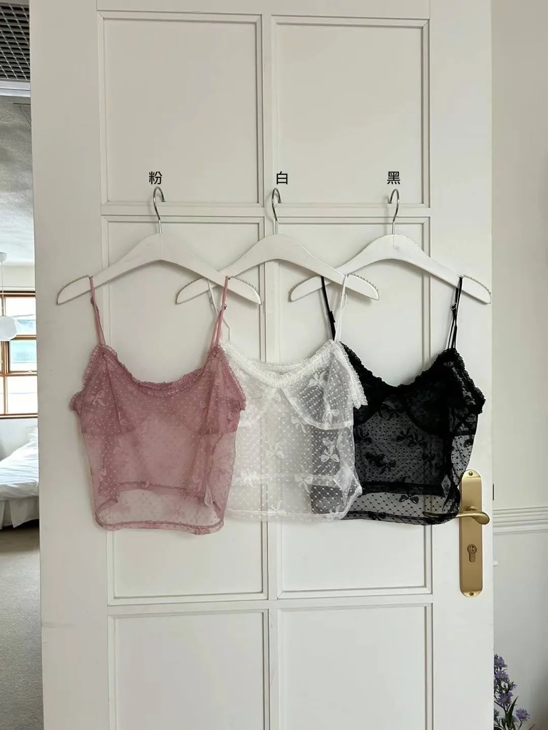 HJ1218透光點點蝴蝶結細肩帶上衣 白 粉 黑 官網價$690 線上價$660