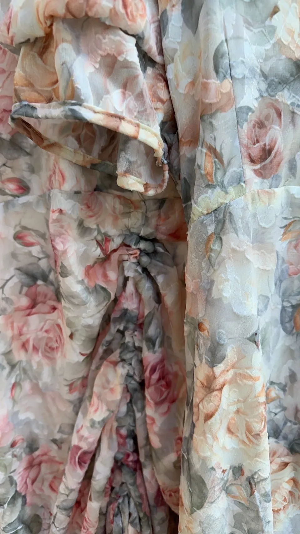雪紡 後拉鍊穿脫 立體壓花面料 腰有綁繩 質地輕盈 柔灰色調 穿到大M