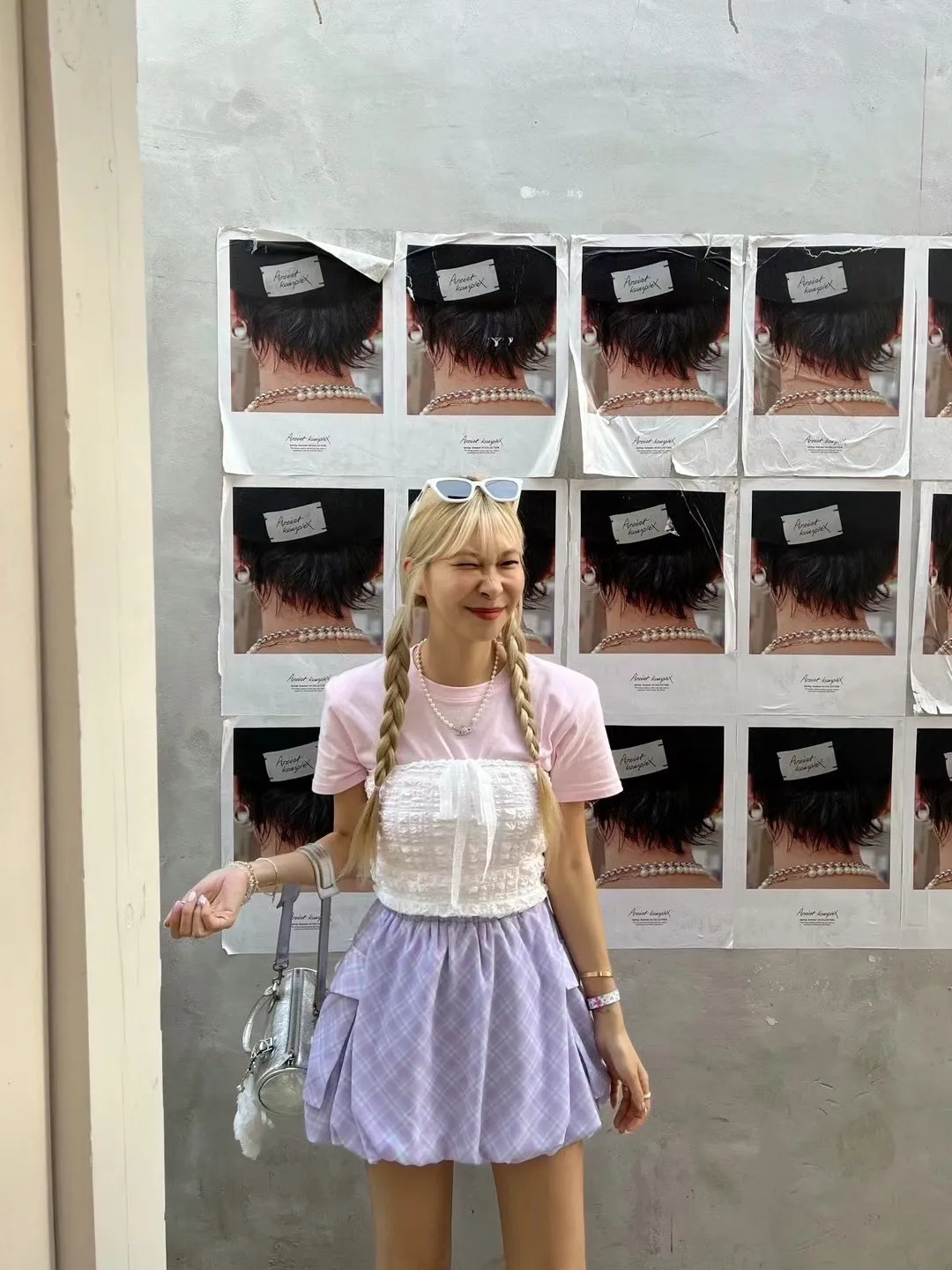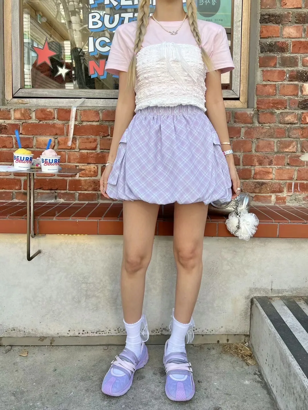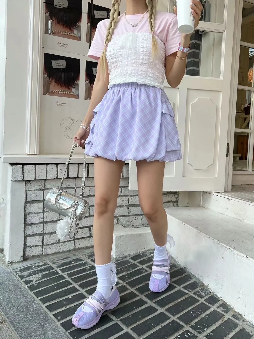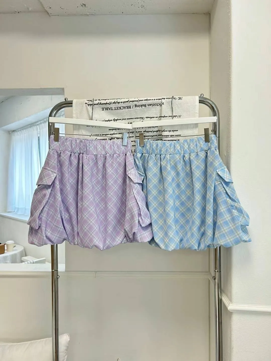 HJ1220夏日格紋花苞南瓜褲裙 藍 紫 官網價$1210 線上價$1180