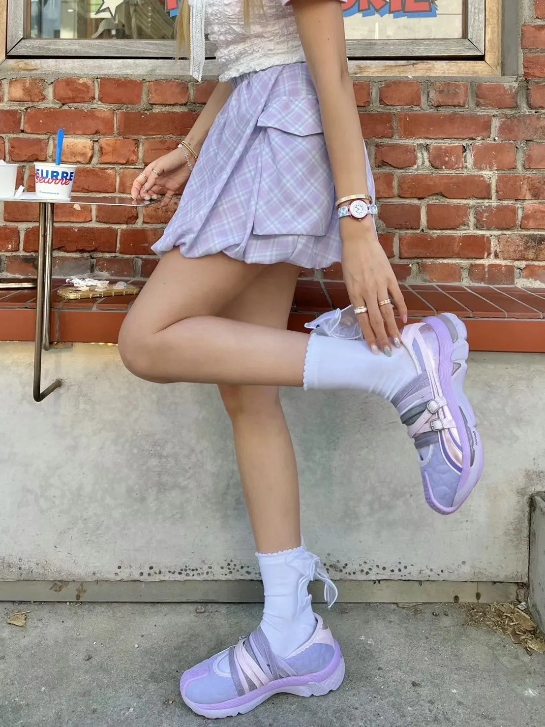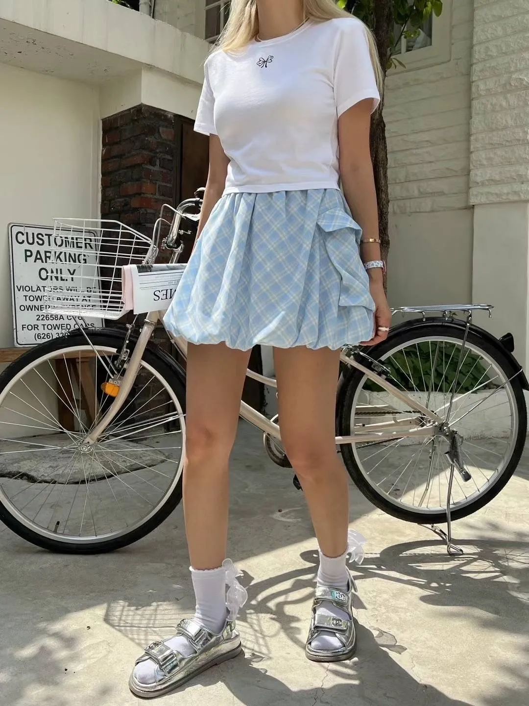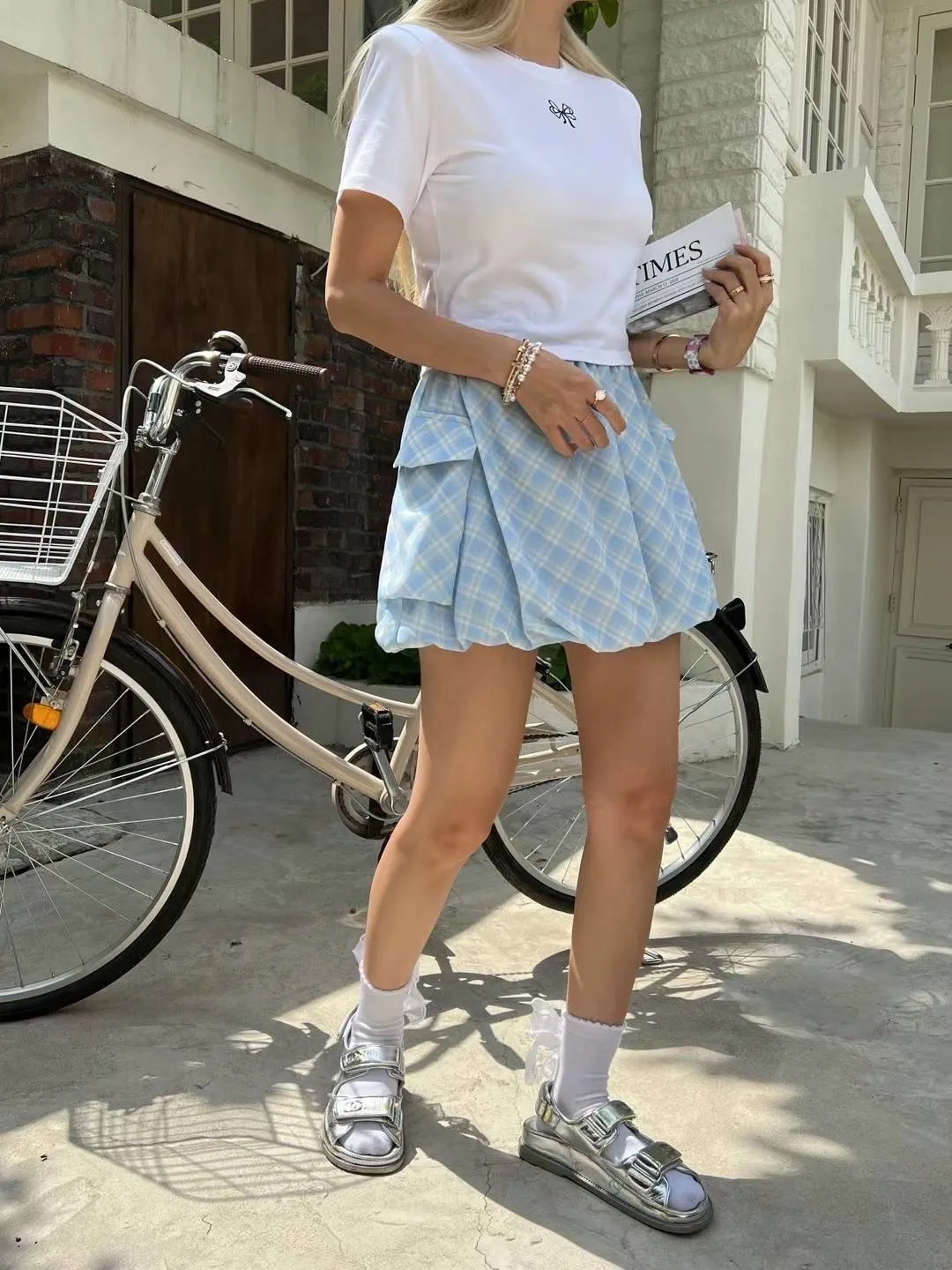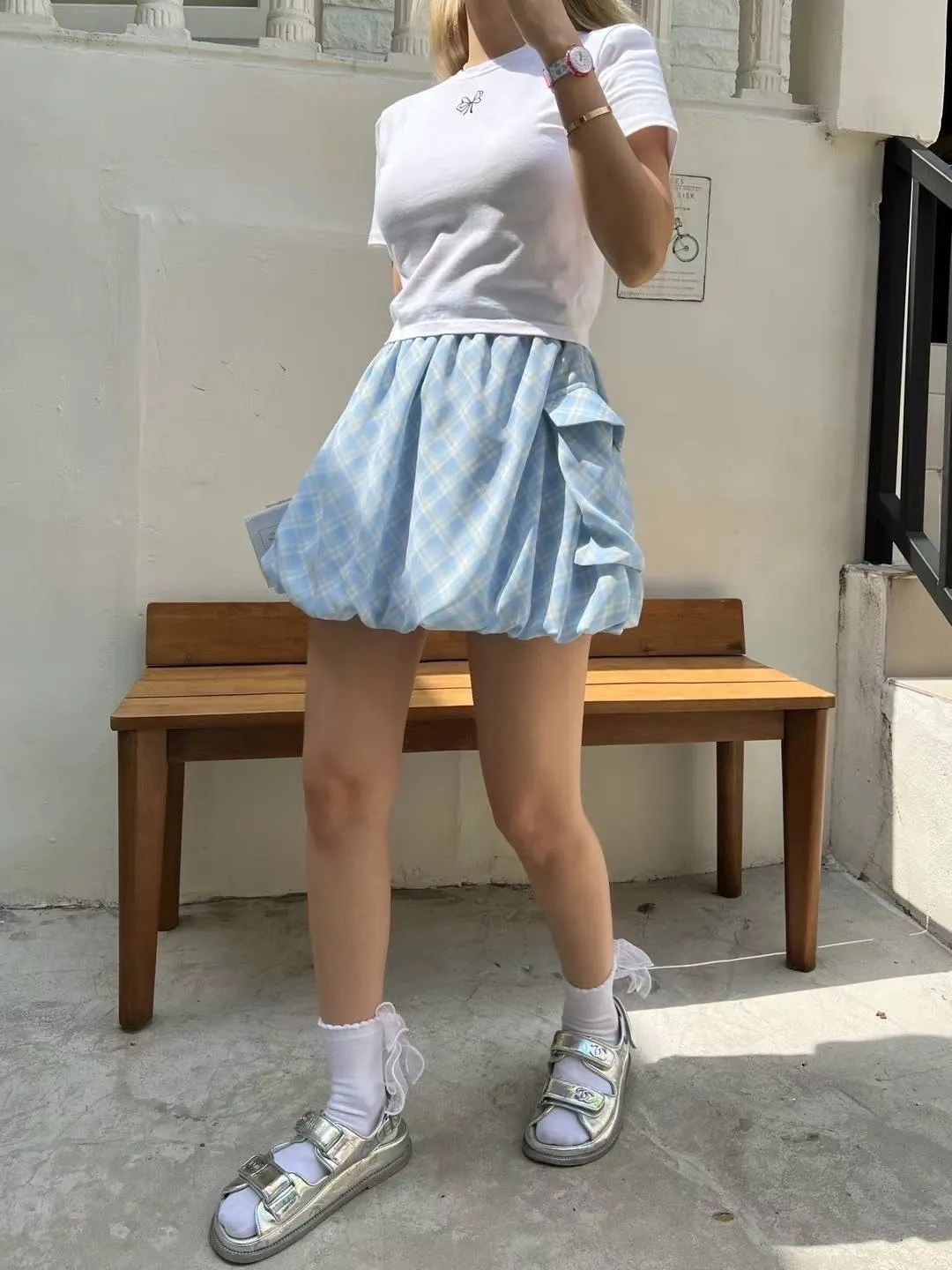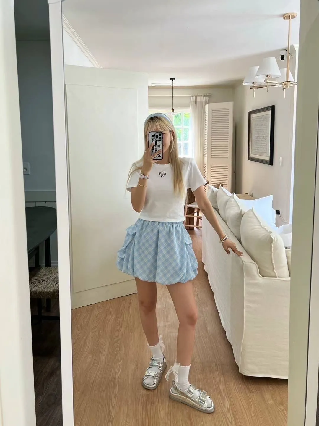 HJ1220夏日格紋花苞南瓜褲裙 藍 紫 官網價$1210 線上價$1180
