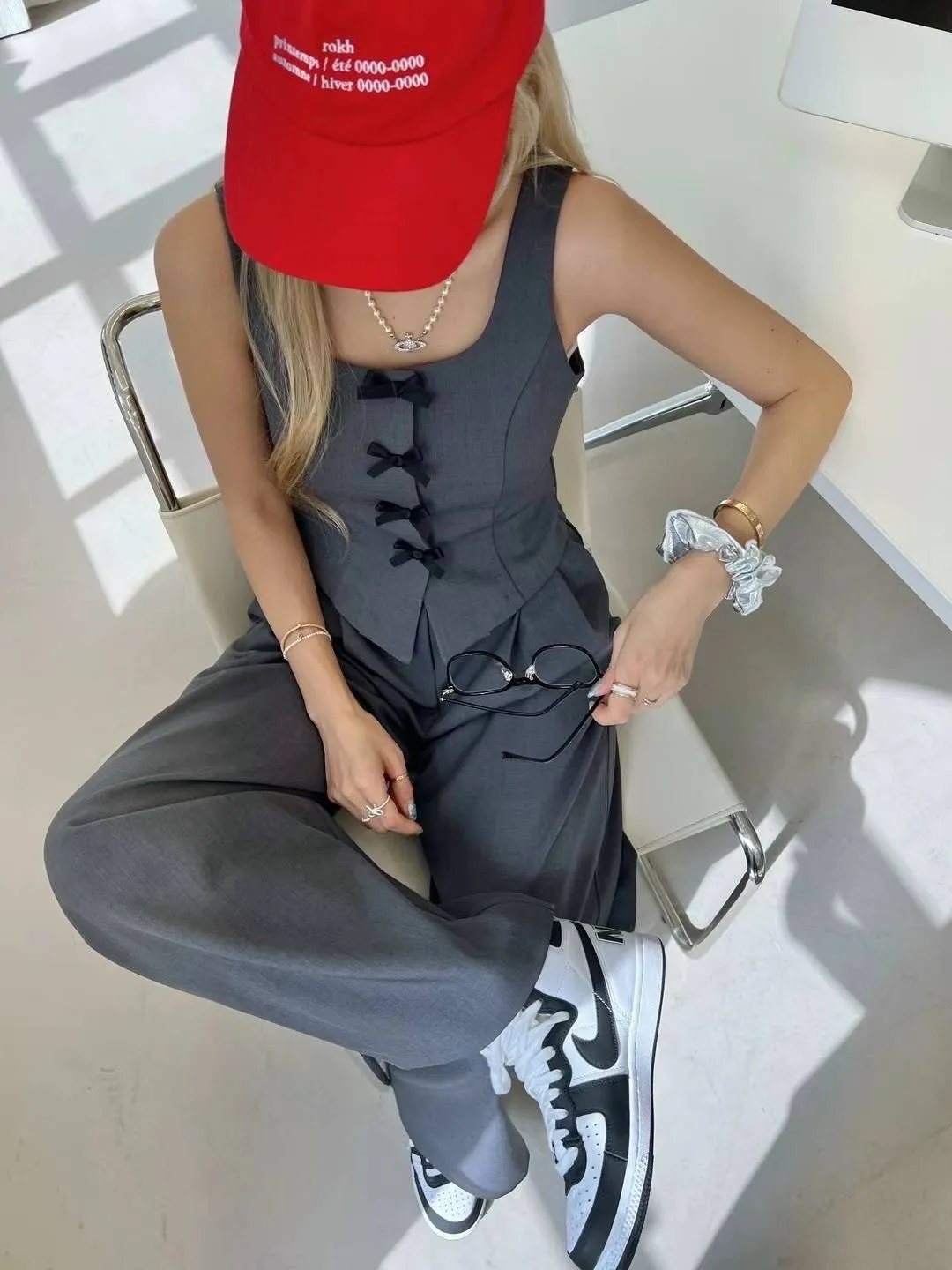 HJ1228套裝的藏釦長褲 灰 黑 S M官網價$1220 線上價$1190