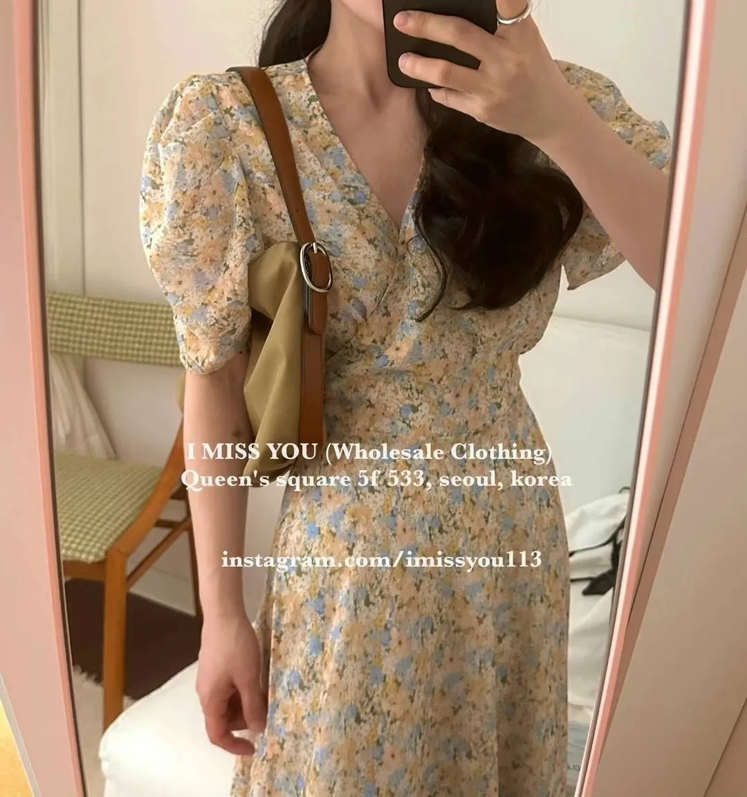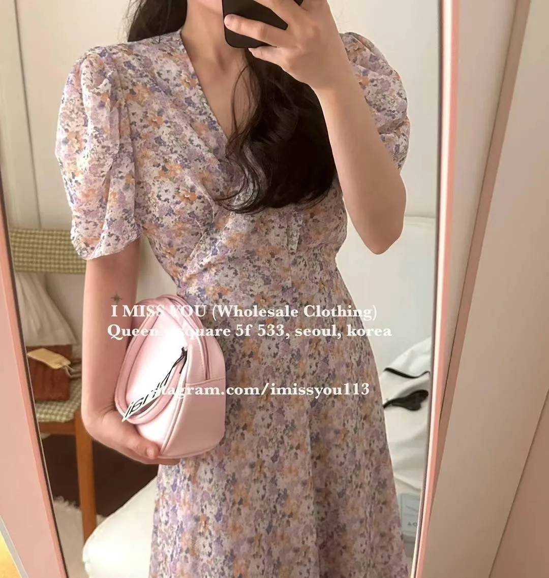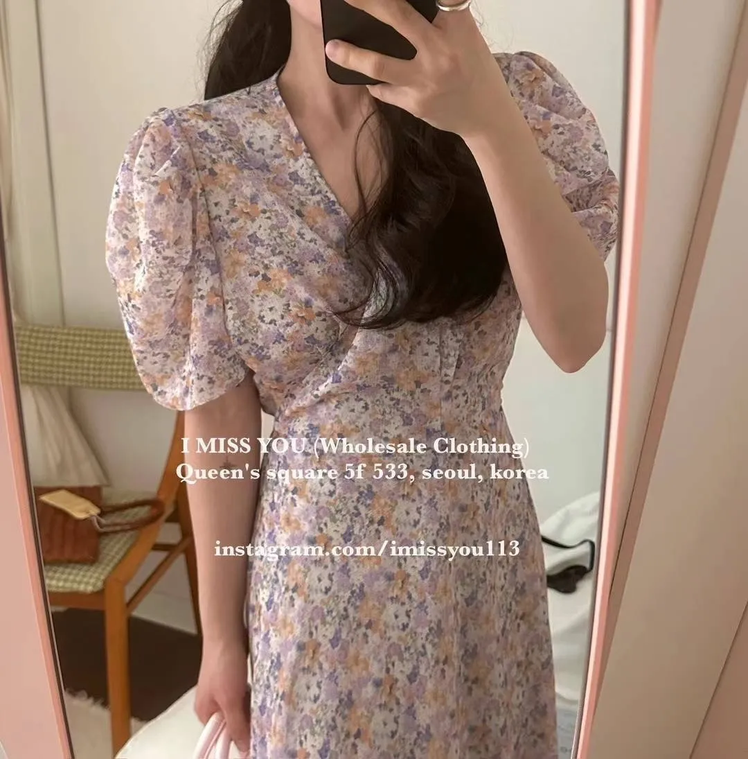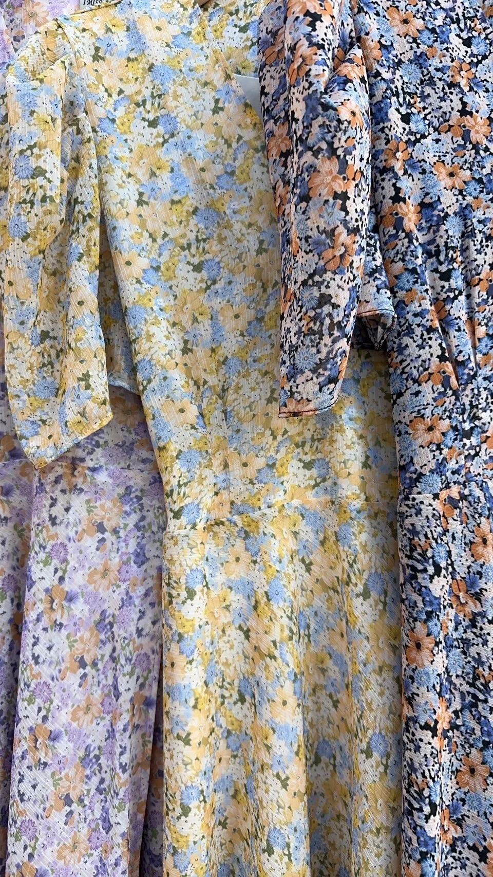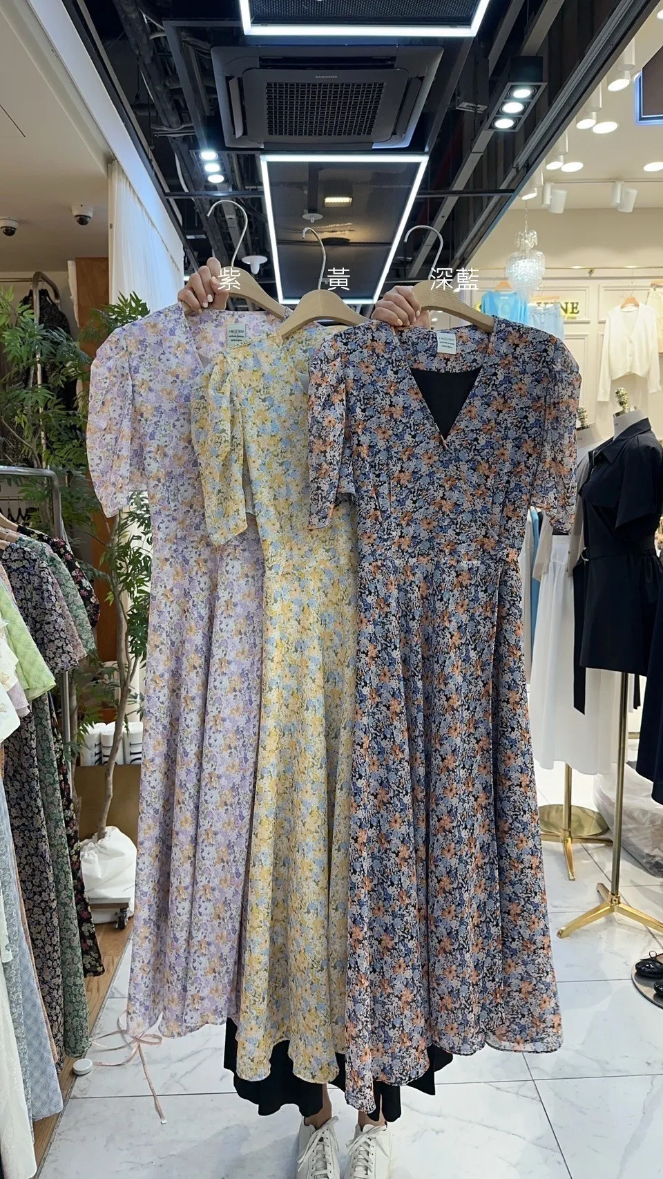 HJ123飄逸V領傘擺小碎花洋裝 黃 紫 深藍 官網價$1820 線上價$1790
