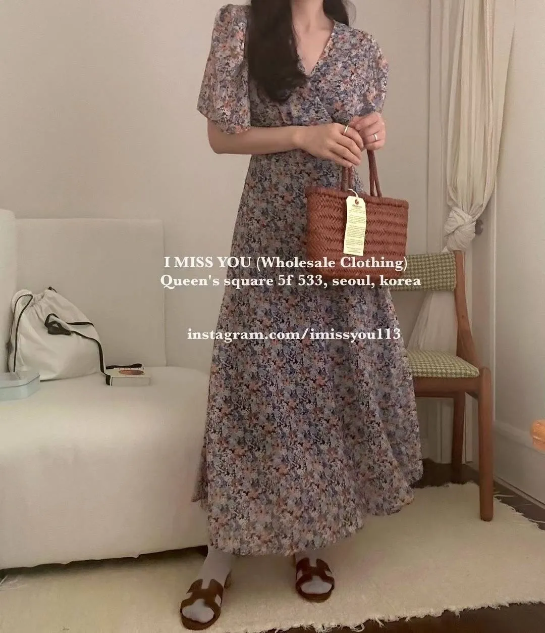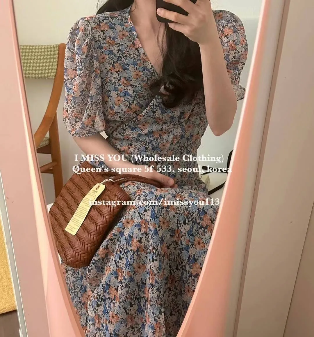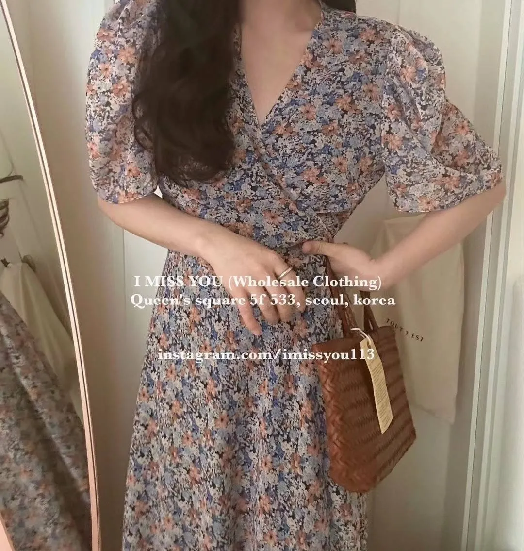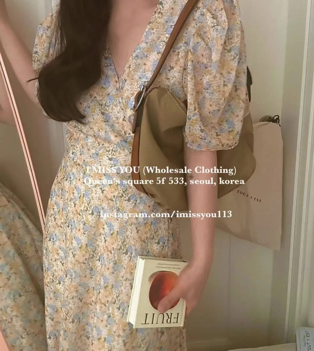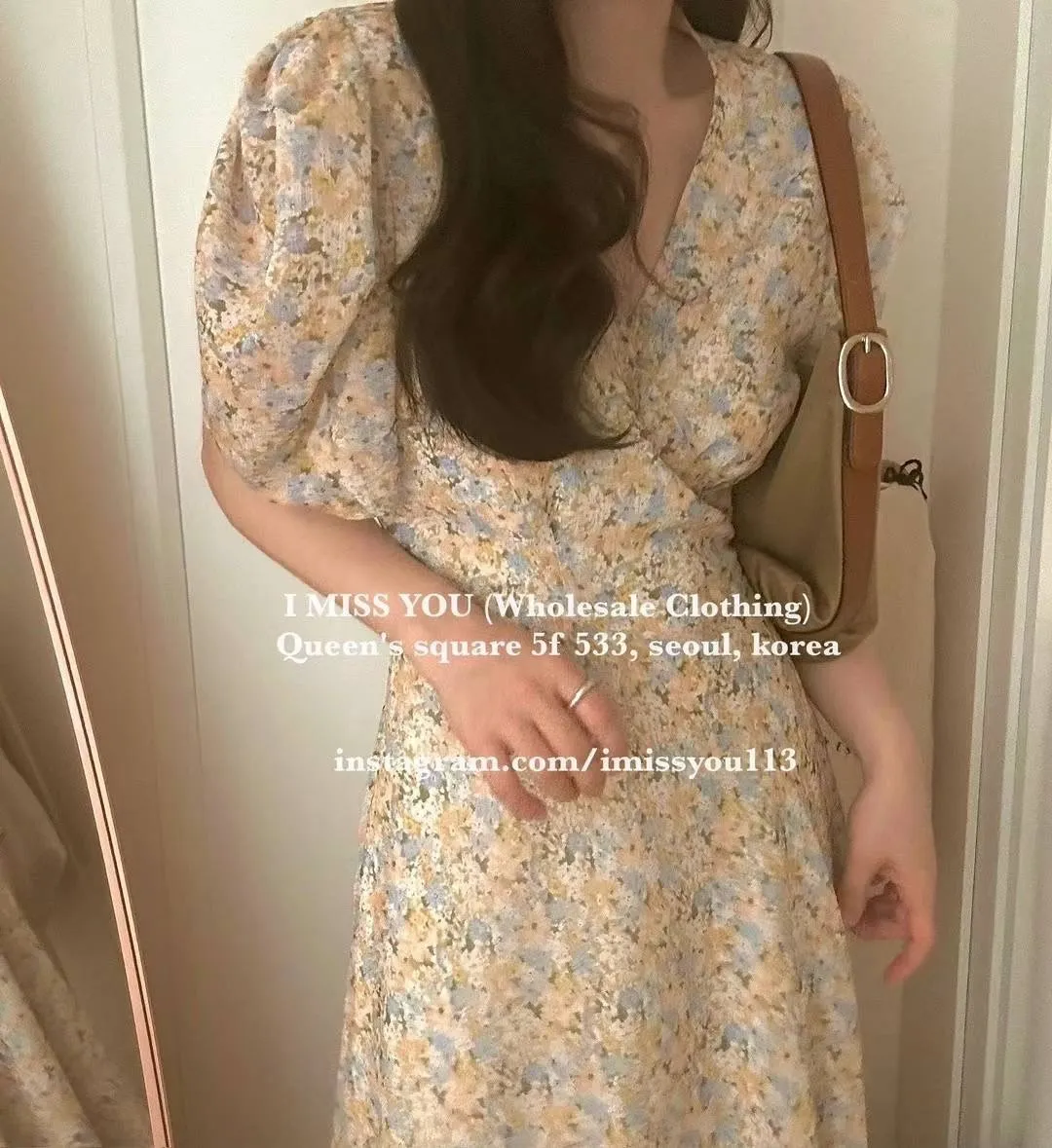 HJ123飄逸V領傘擺小碎花洋裝 黃 紫 深藍 官網價$1820 線上價$1790