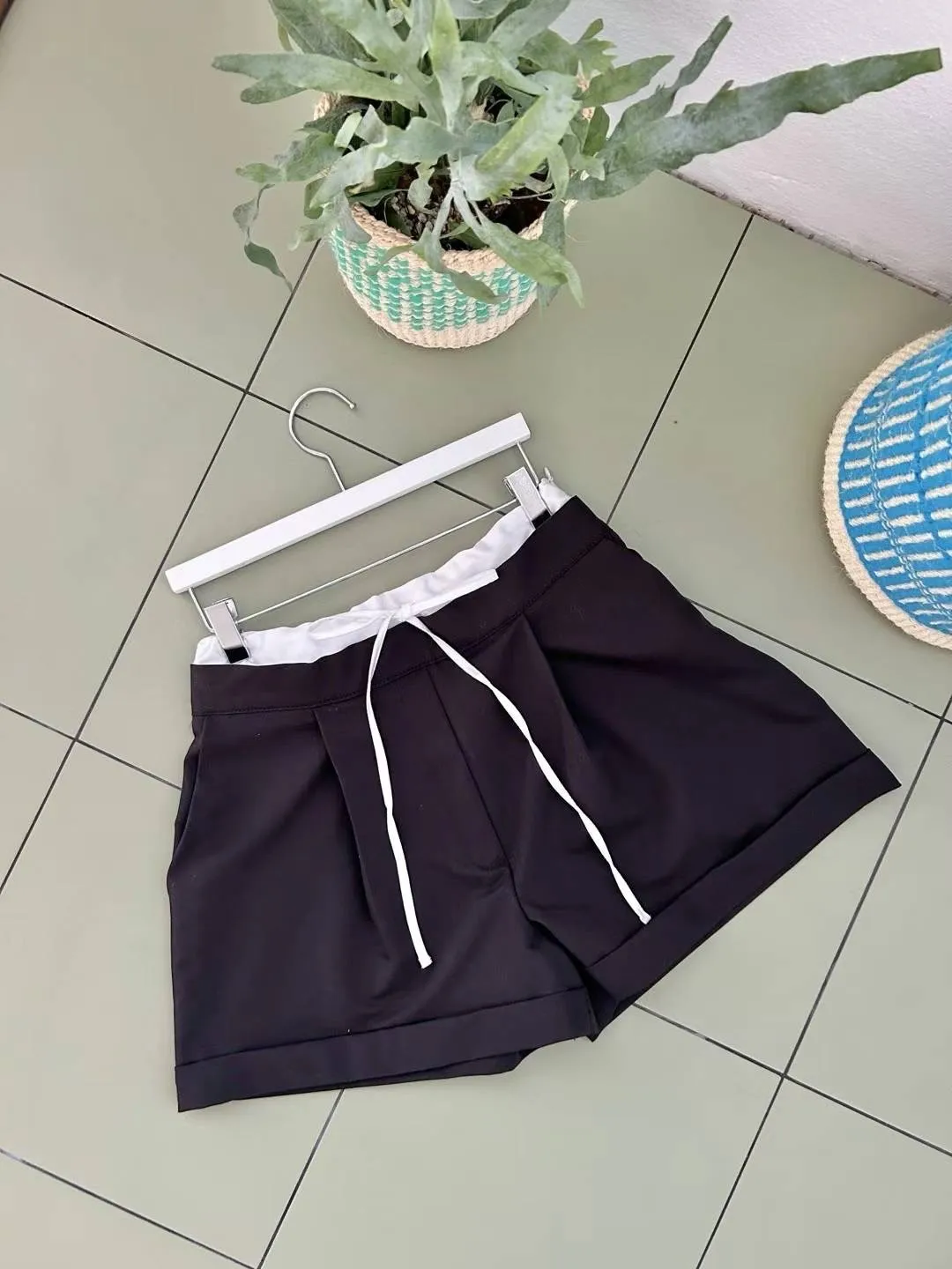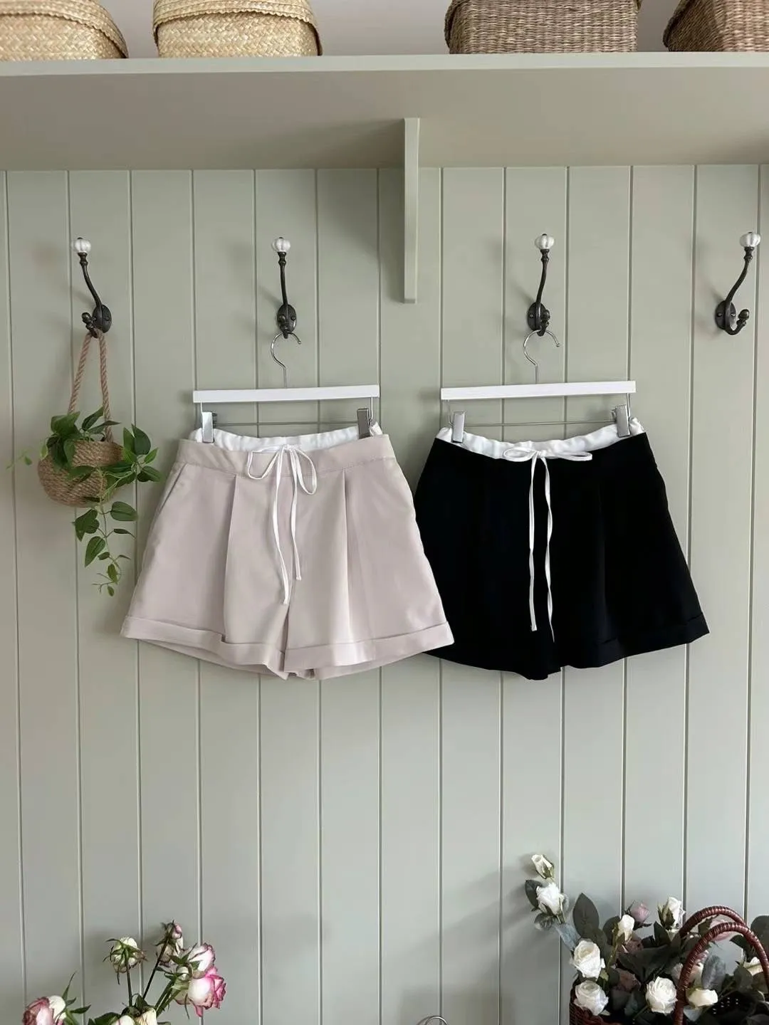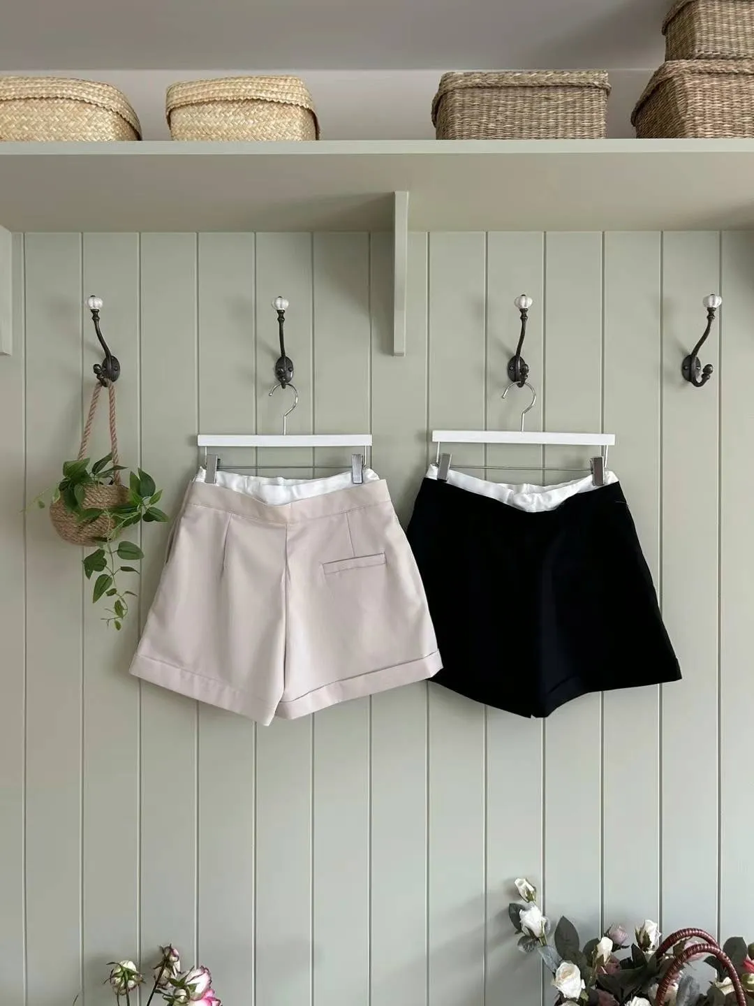 HJ1236跳色腰頭短褲 米 黑 S M 官網價$850 線上價$820