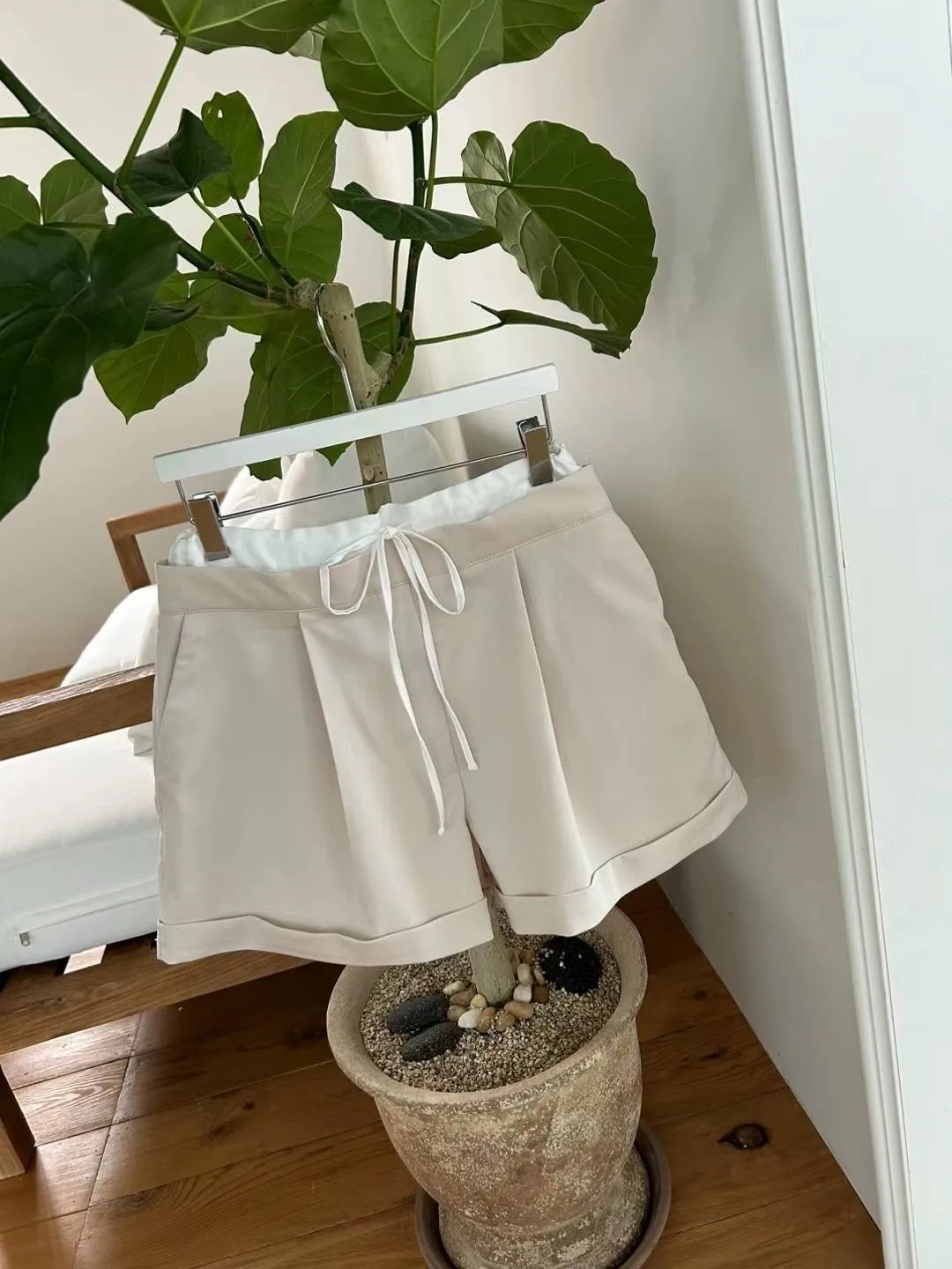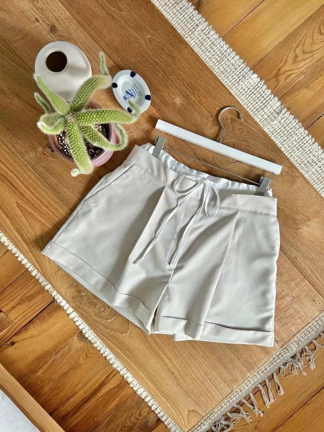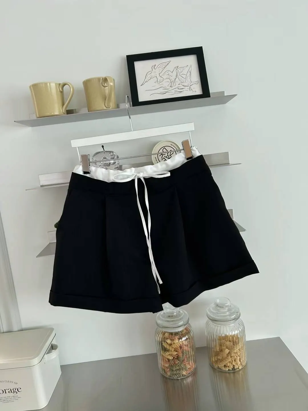 HJ1236跳色腰頭短褲 米 黑 S M 官網價$850 線上價$820