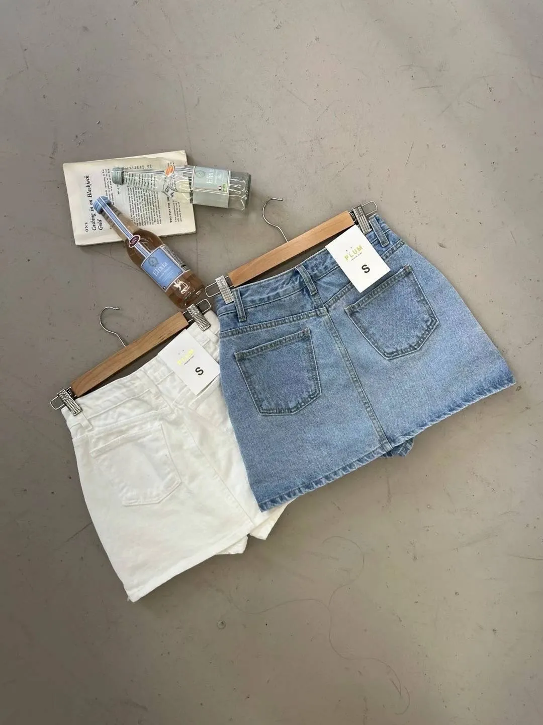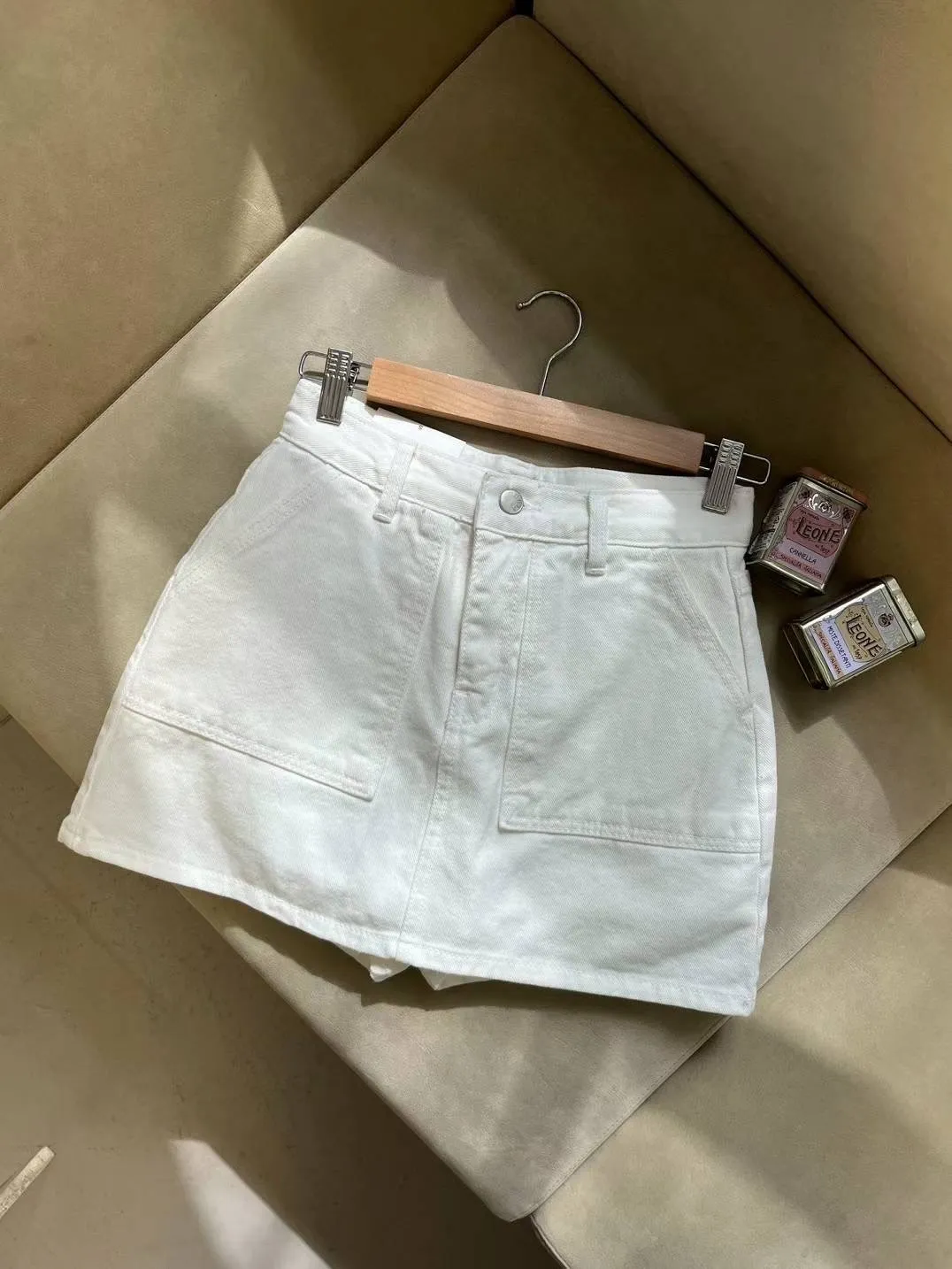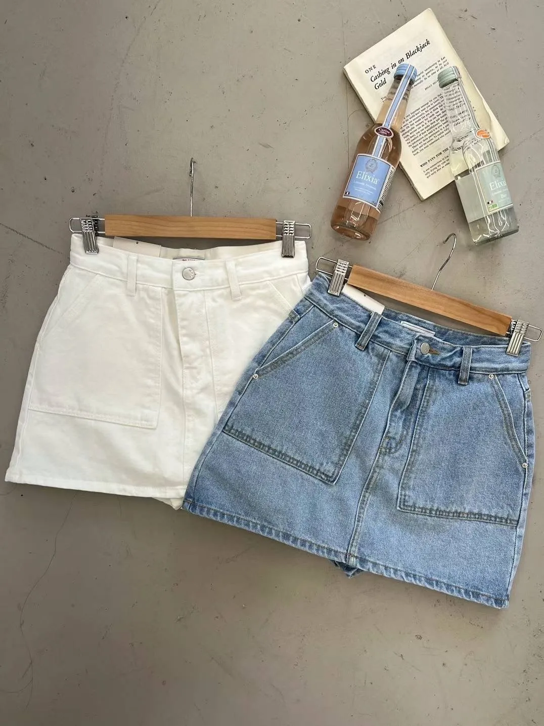 HJ1238車線大口袋牛仔褲裙 白 藍 S M L 官網價$1050 線上價$1020
