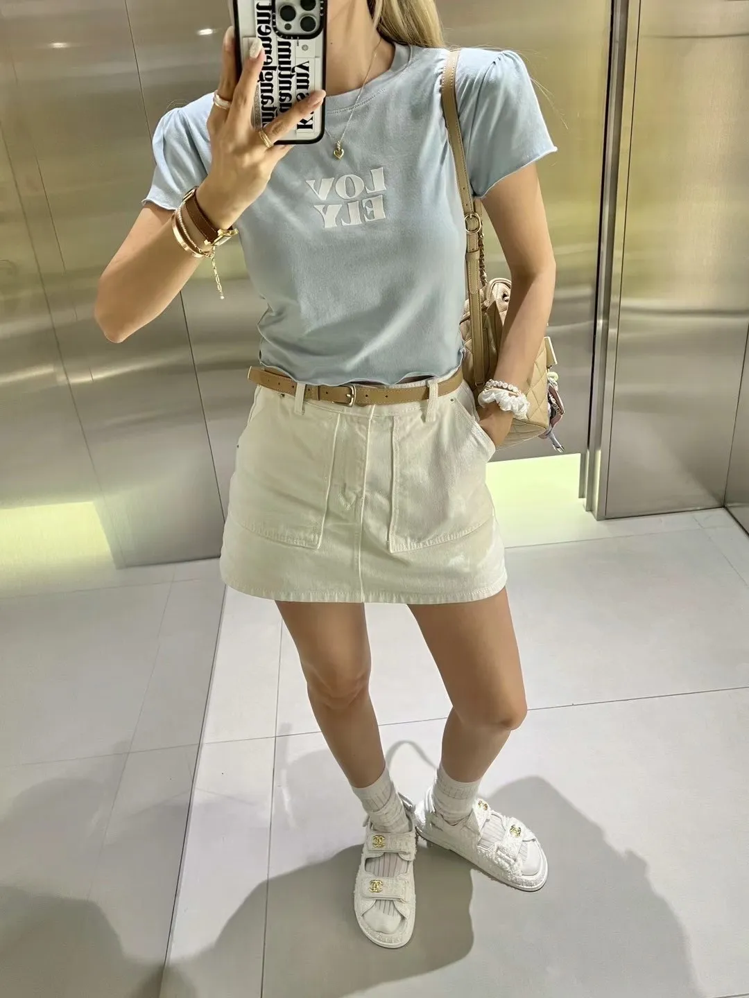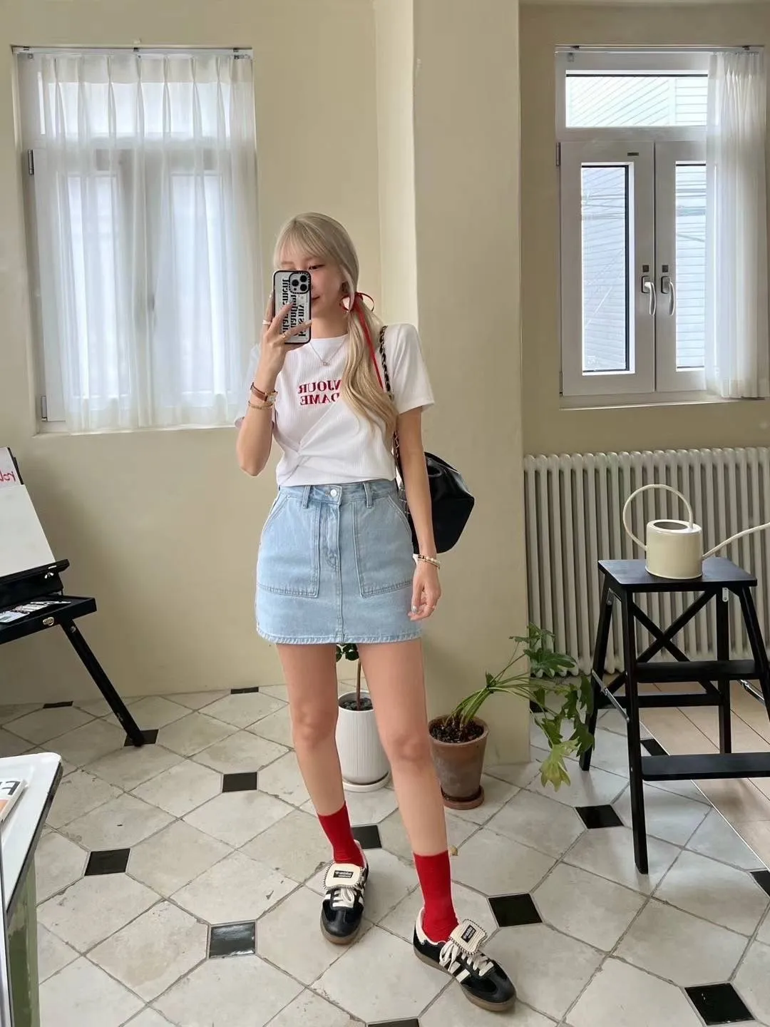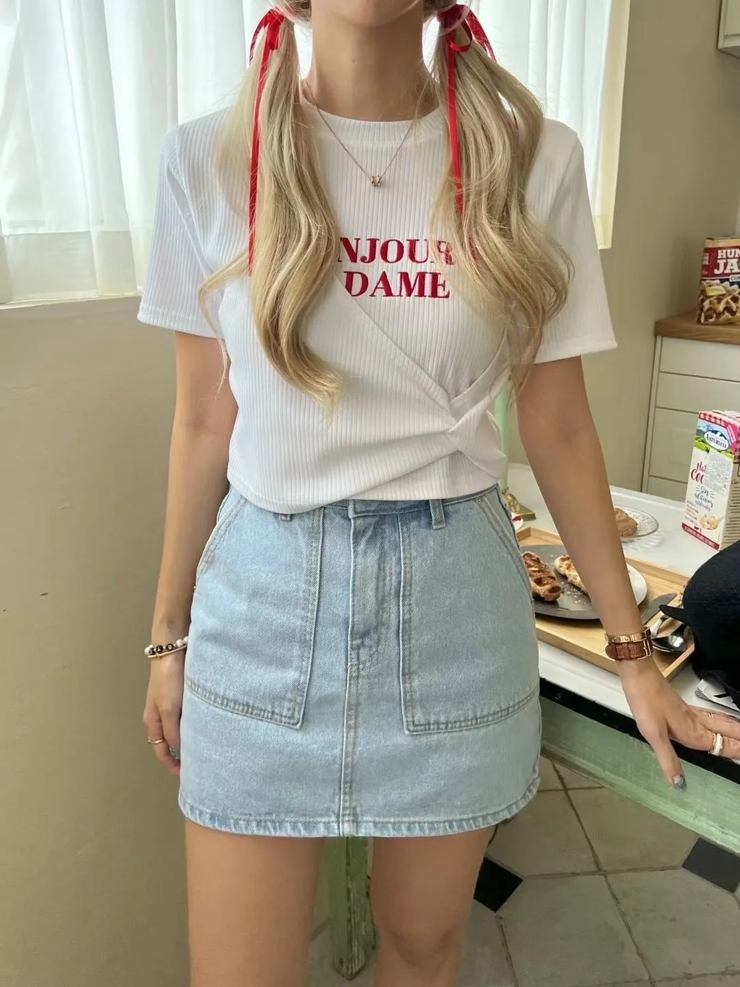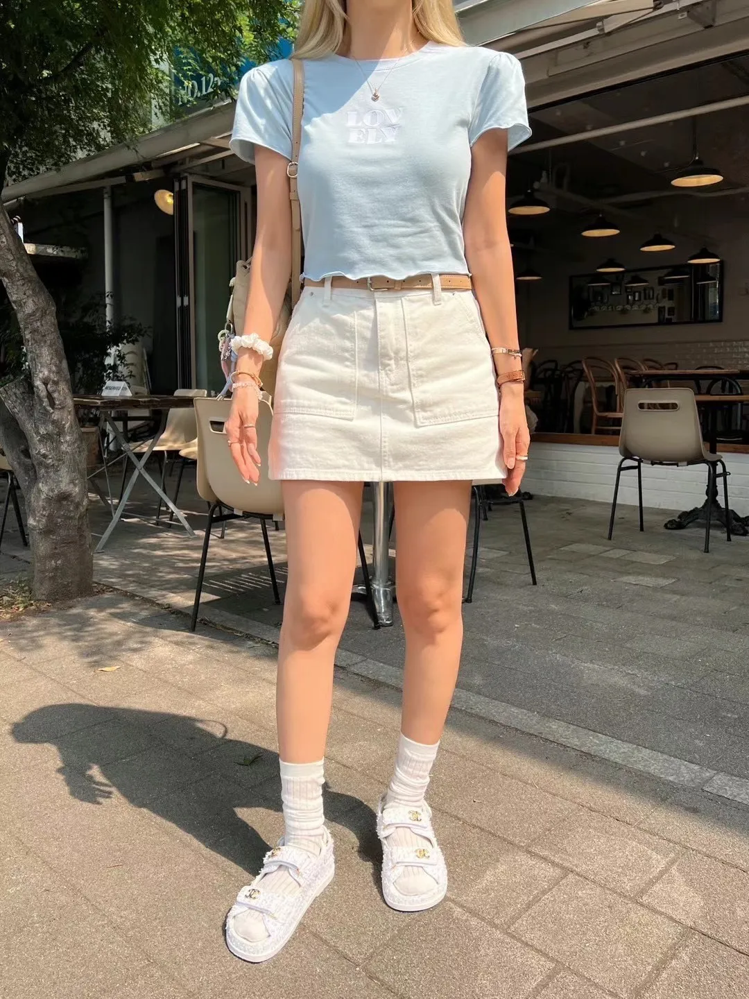 HJ1238車線大口袋牛仔褲裙 白 藍 S M L 官網價$1050 線上價$1020