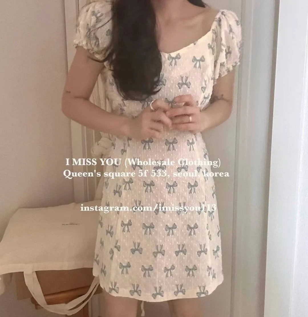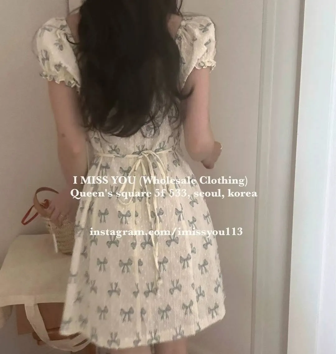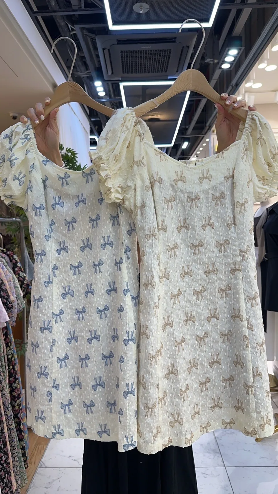 HJ124精緻蕾絲蝴蝶結典雅短洋裝 藍 咖 官網價$1550 線上價$1520