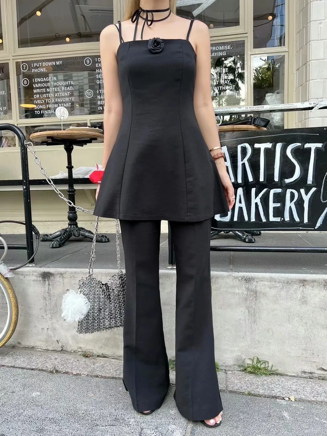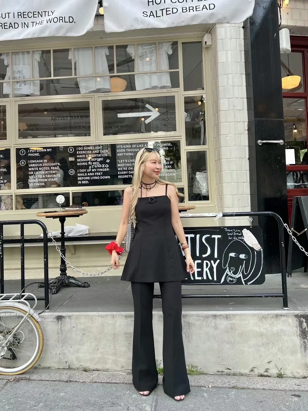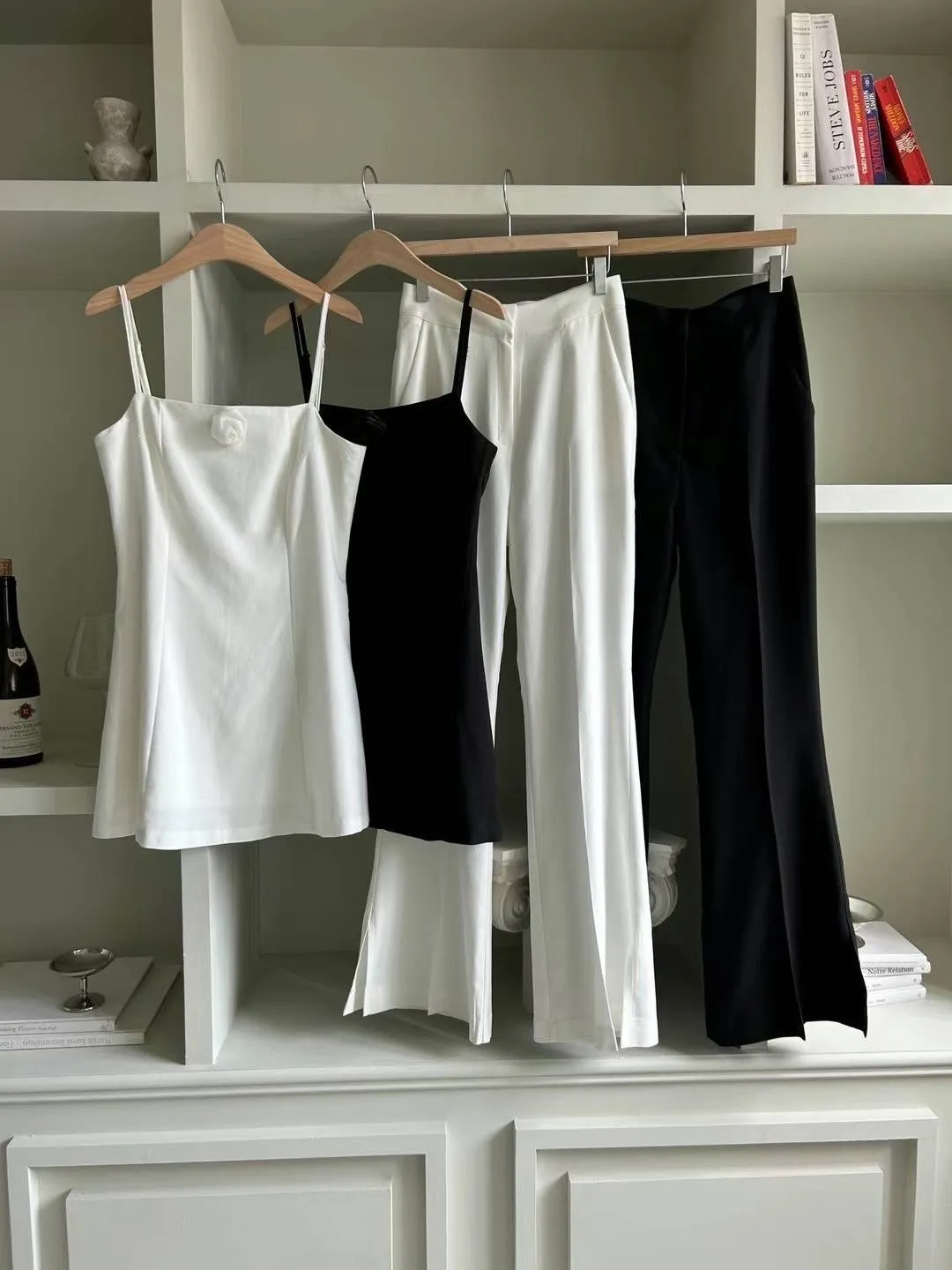 HJ1242套裝的細肩帶玫瑰花洋裝 白 黑 S M 官網價$1250 線上價$1220