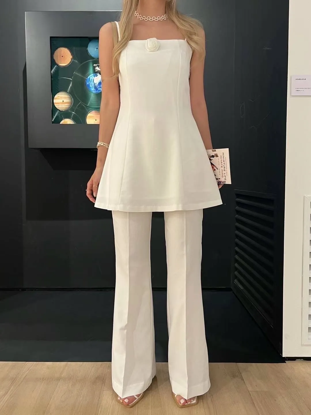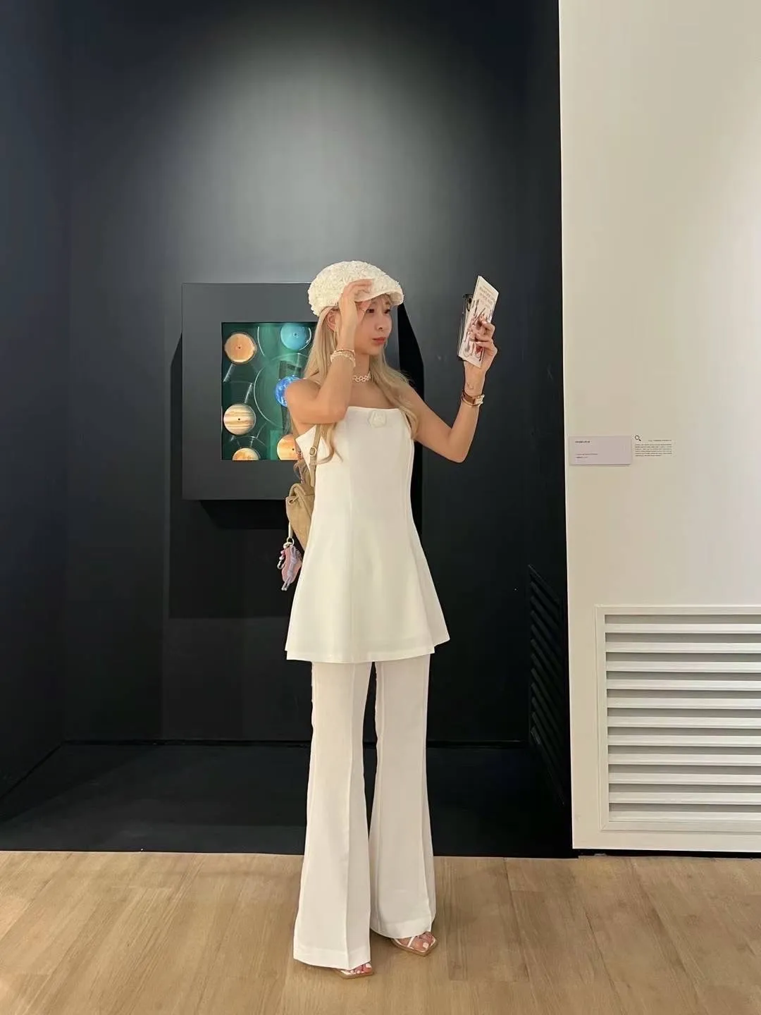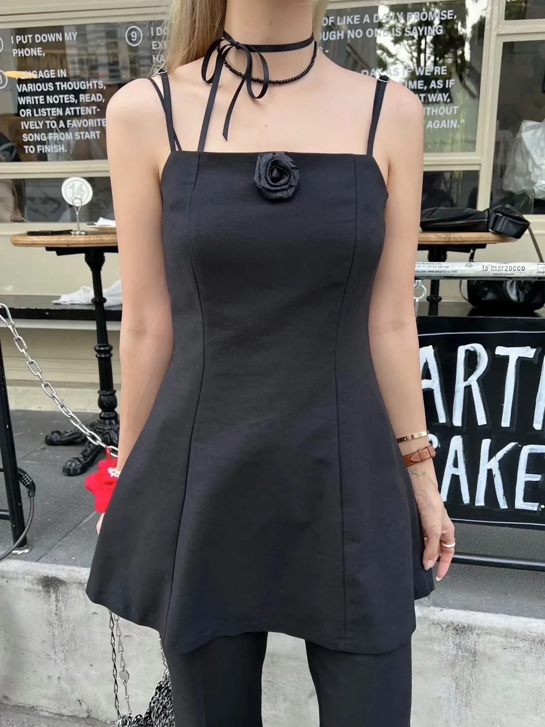 HJ1242套裝的細肩帶玫瑰花洋裝 白 黑 S M 官網價$1250 線上價$1220