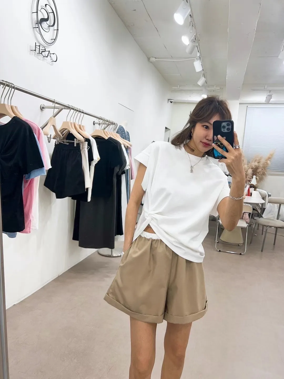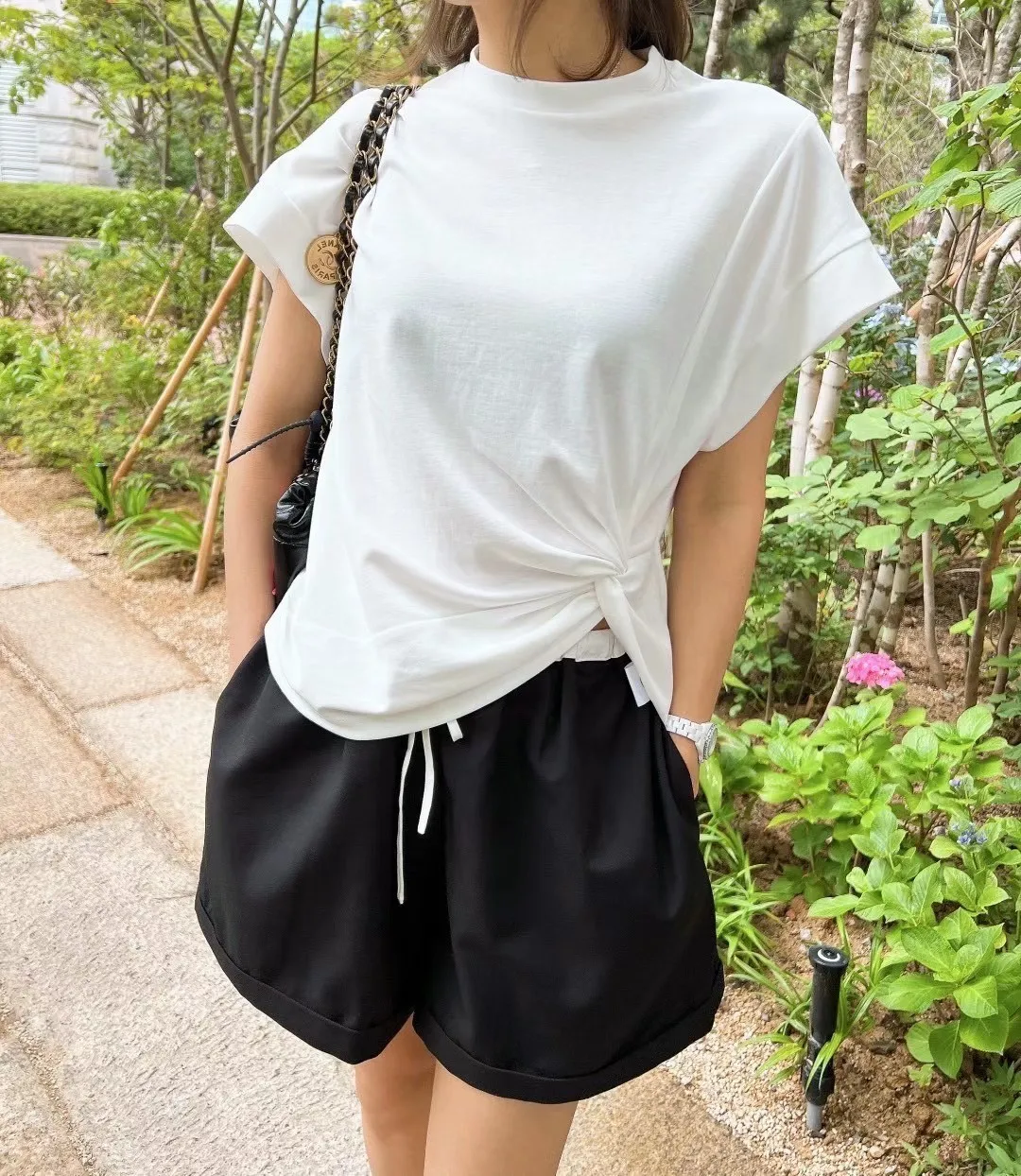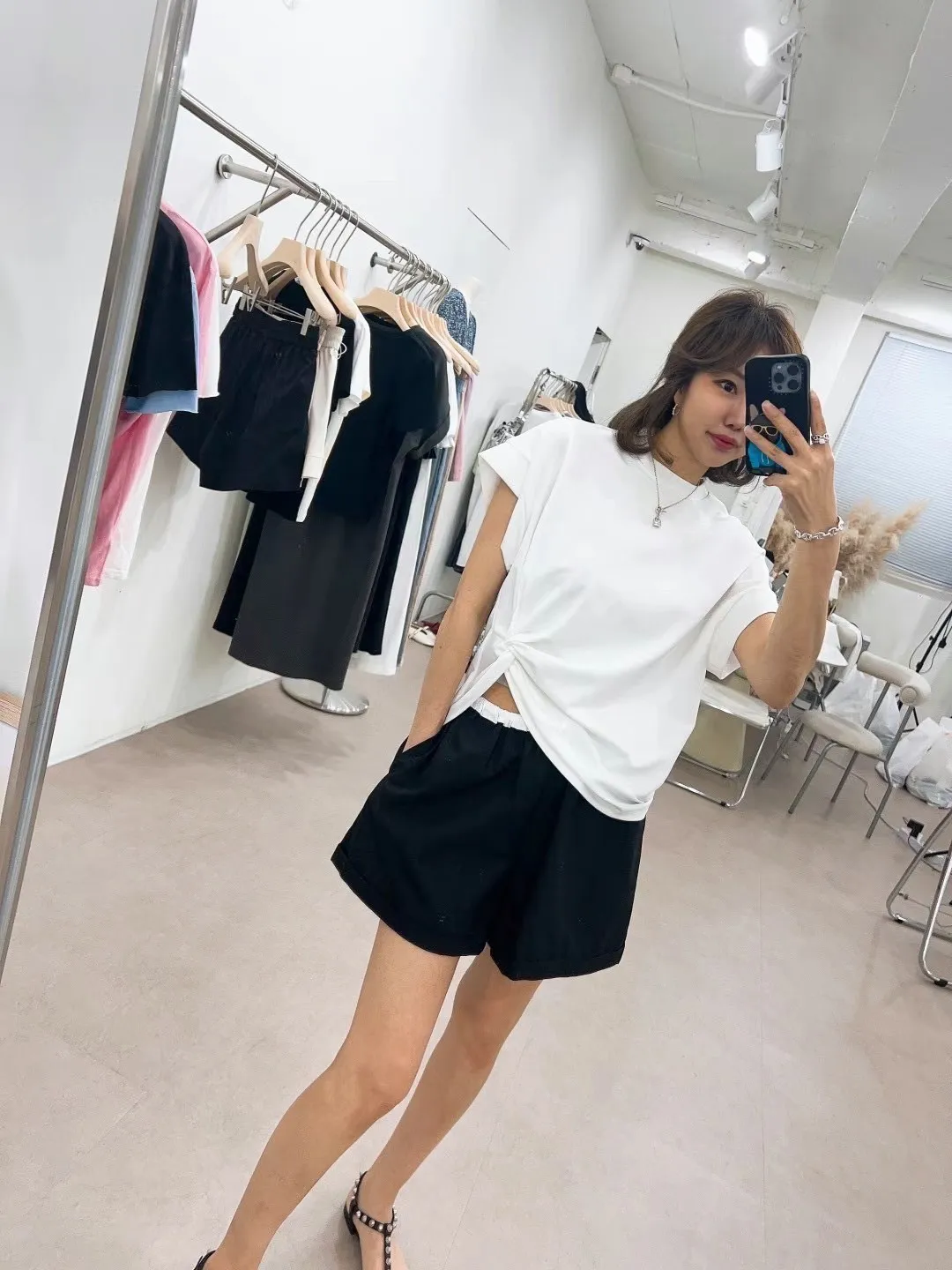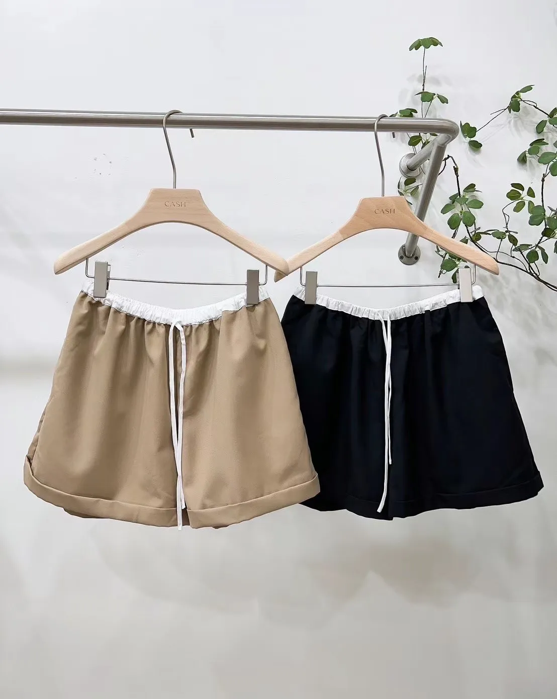 縲縈+聚酯 舒適親膚 褲管空間佳 固定反摺褲管 白色的腰頭和抽繩