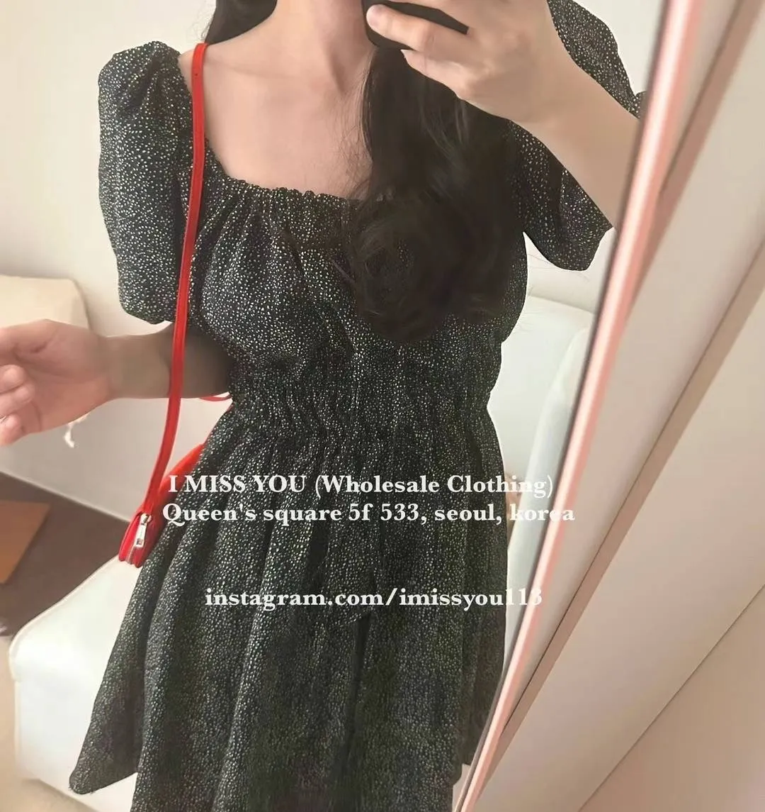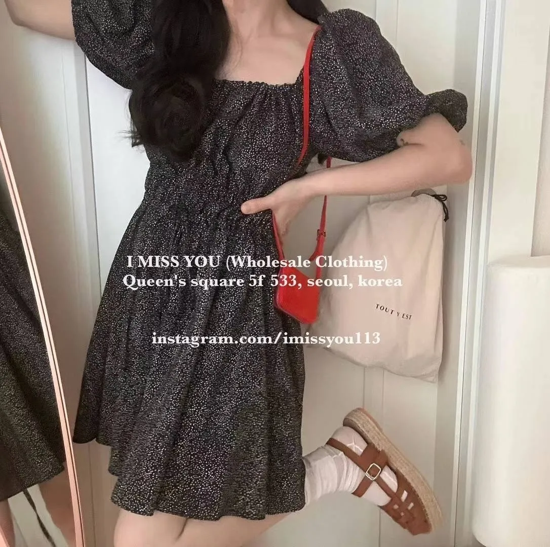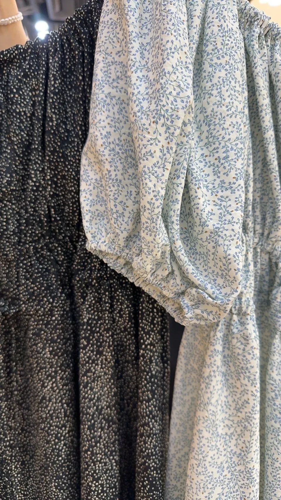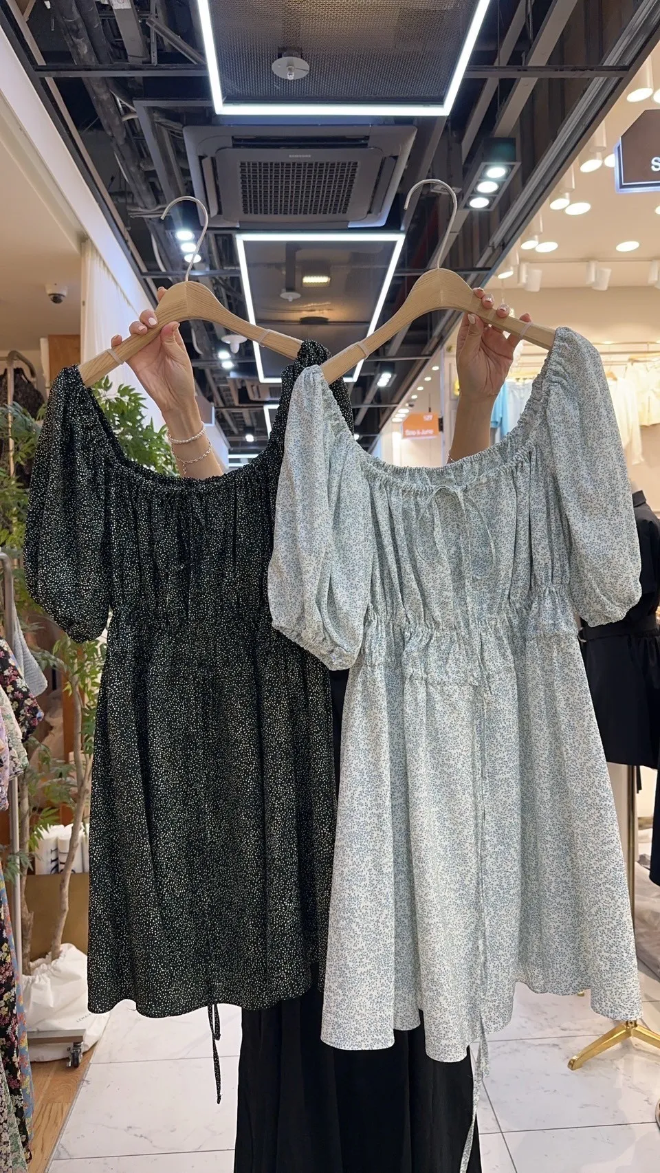 HJ128推薦款滿天星方領雙綁帶小碎花洋裝 藍 黑 官網價$1720 線上價$1690