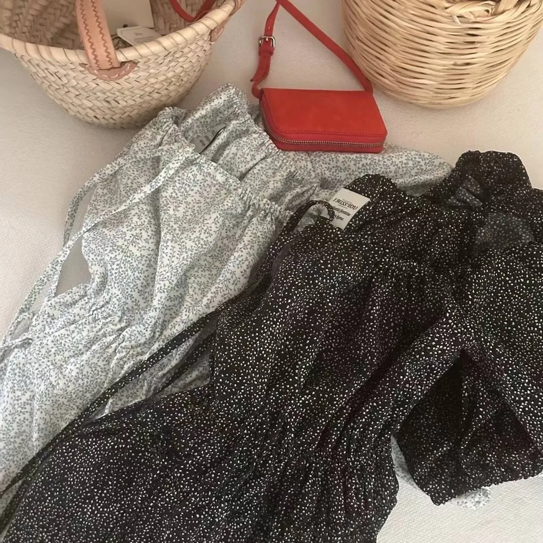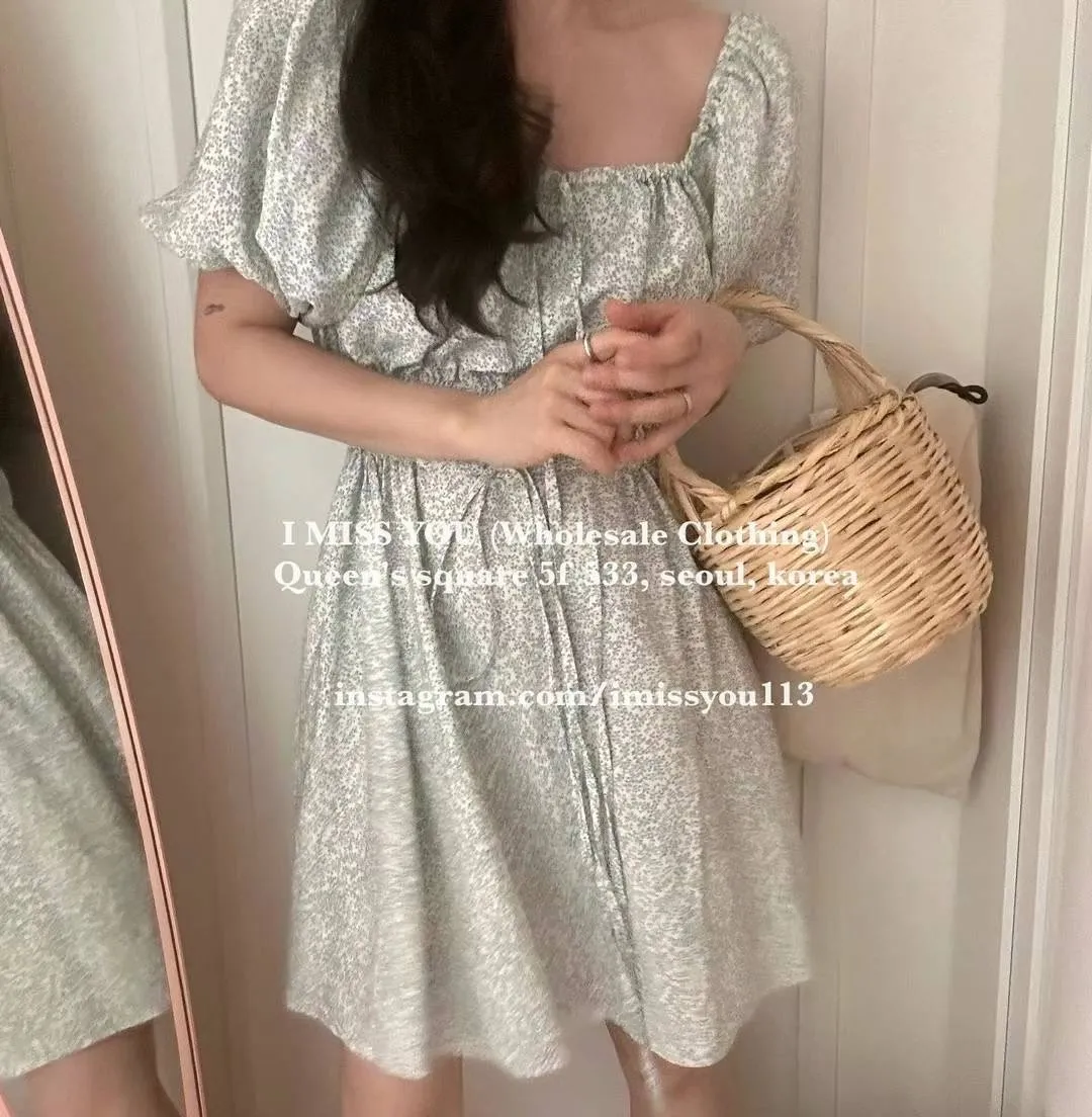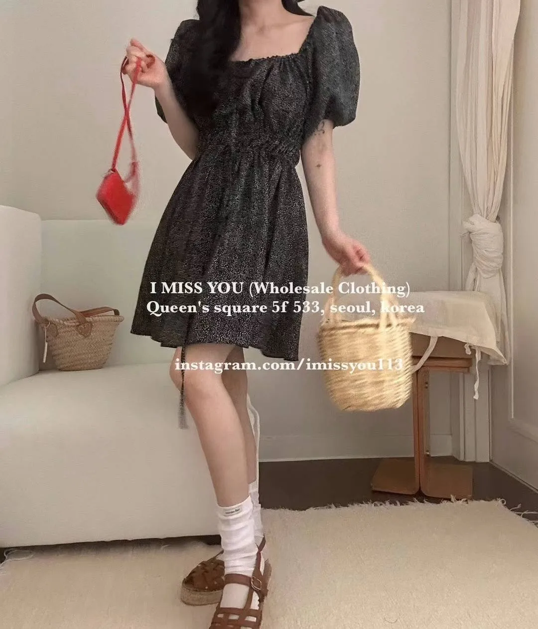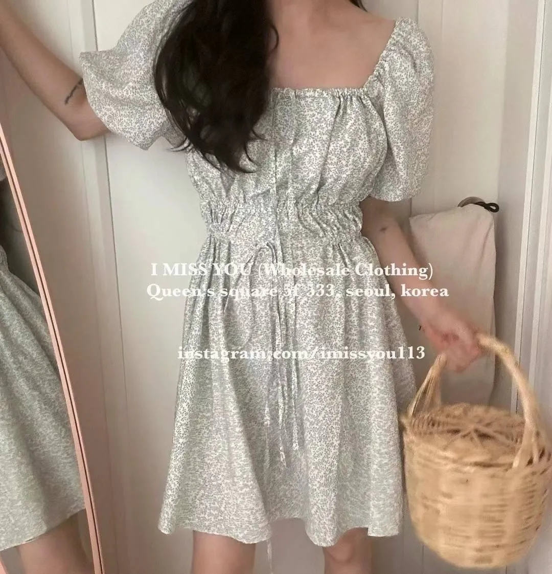 HJ128推薦款滿天星方領雙綁帶小碎花洋裝 藍 黑 官網價$1720 線上價$1690