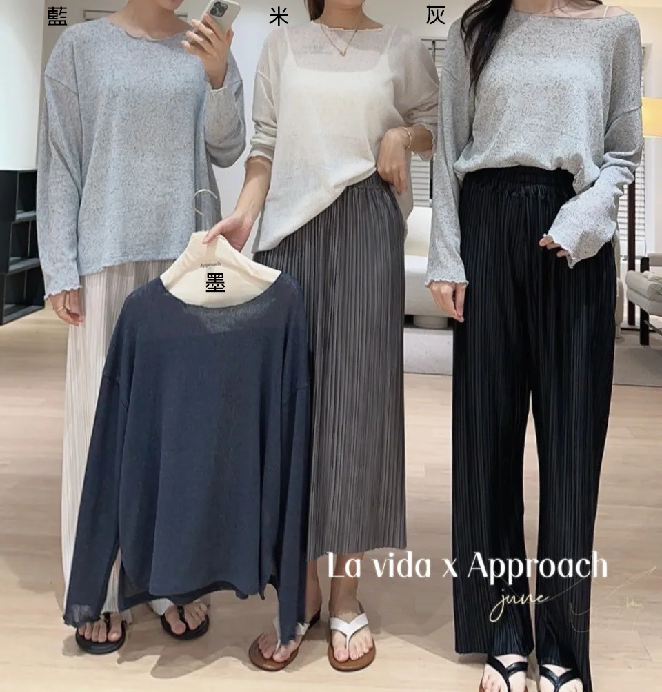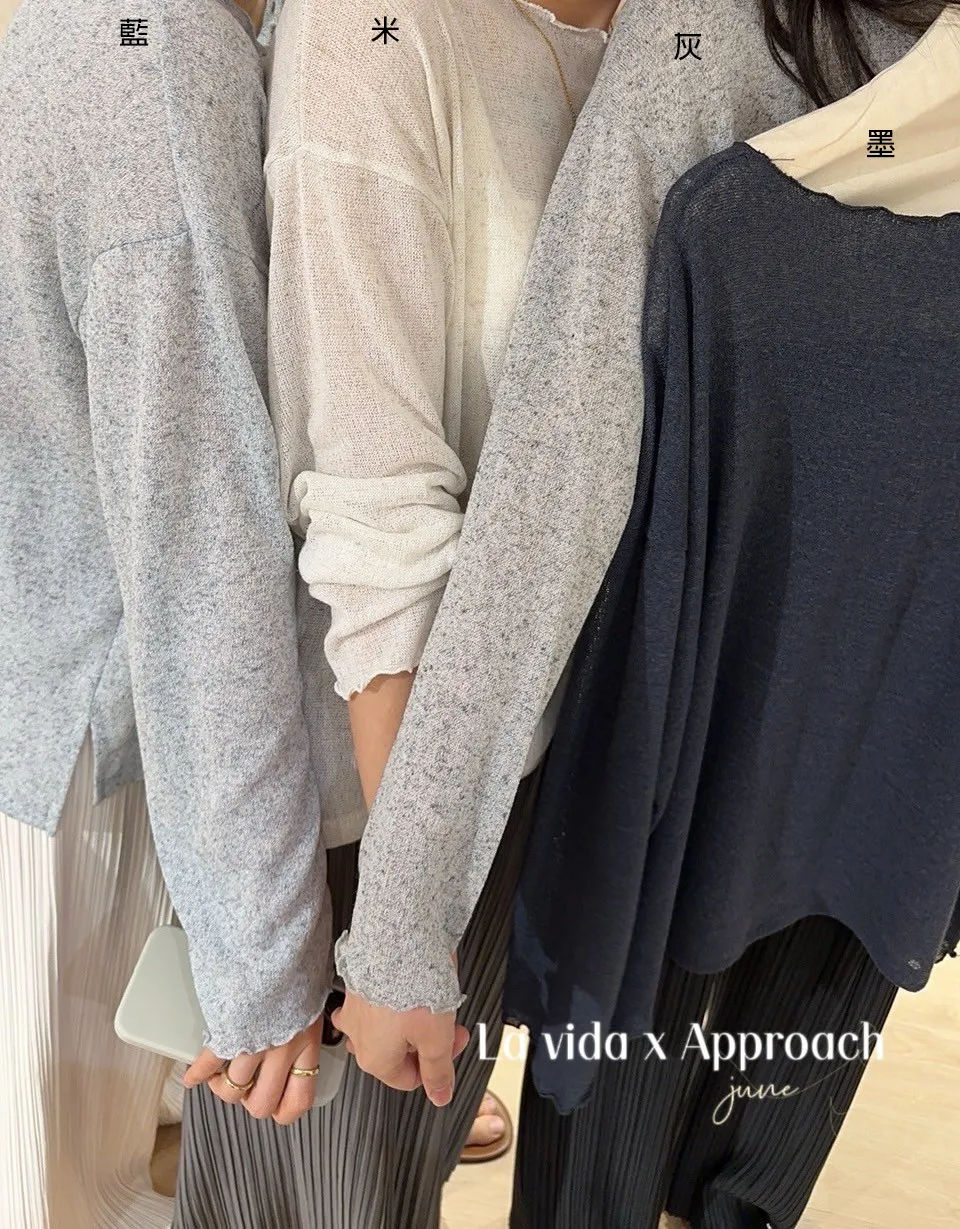 HJ1312薄款透光木耳滾邊上衣 米 灰 藍 墨 官網價$720 線上價$690