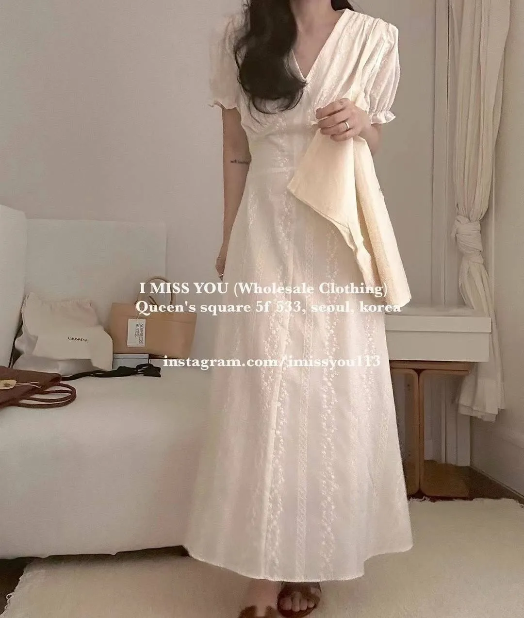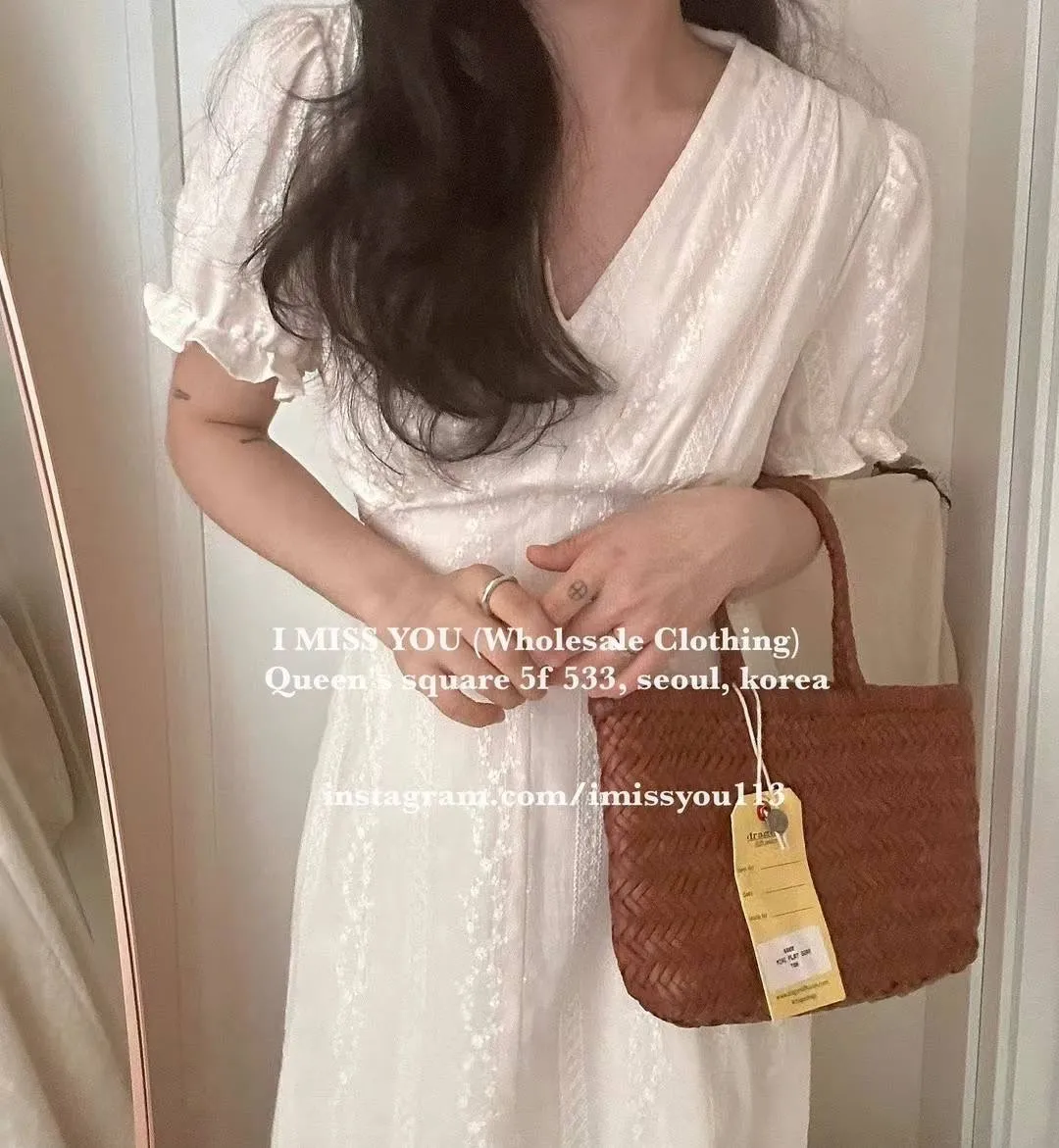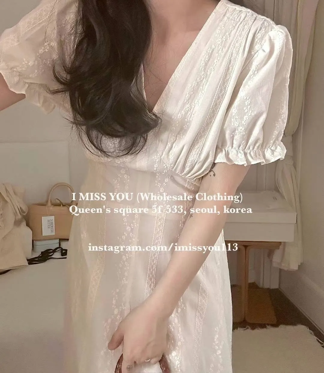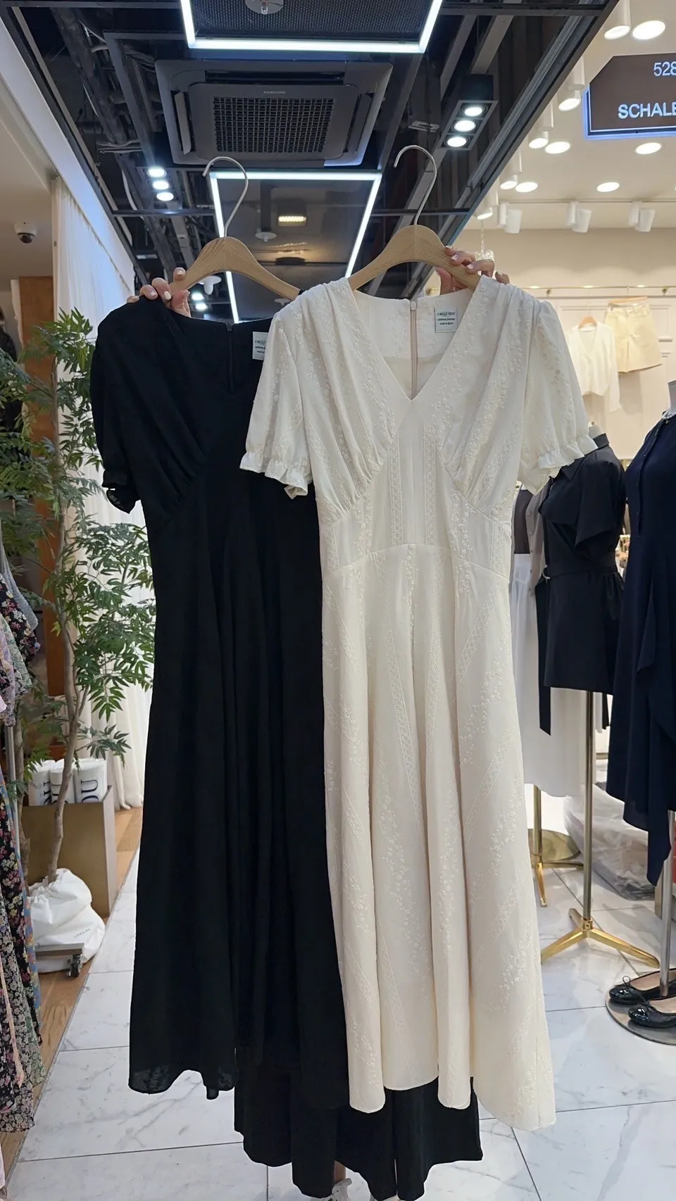 HJ132純色精緻蕾絲V領洋裝 白 黑 官網價$1690 線上價$1660