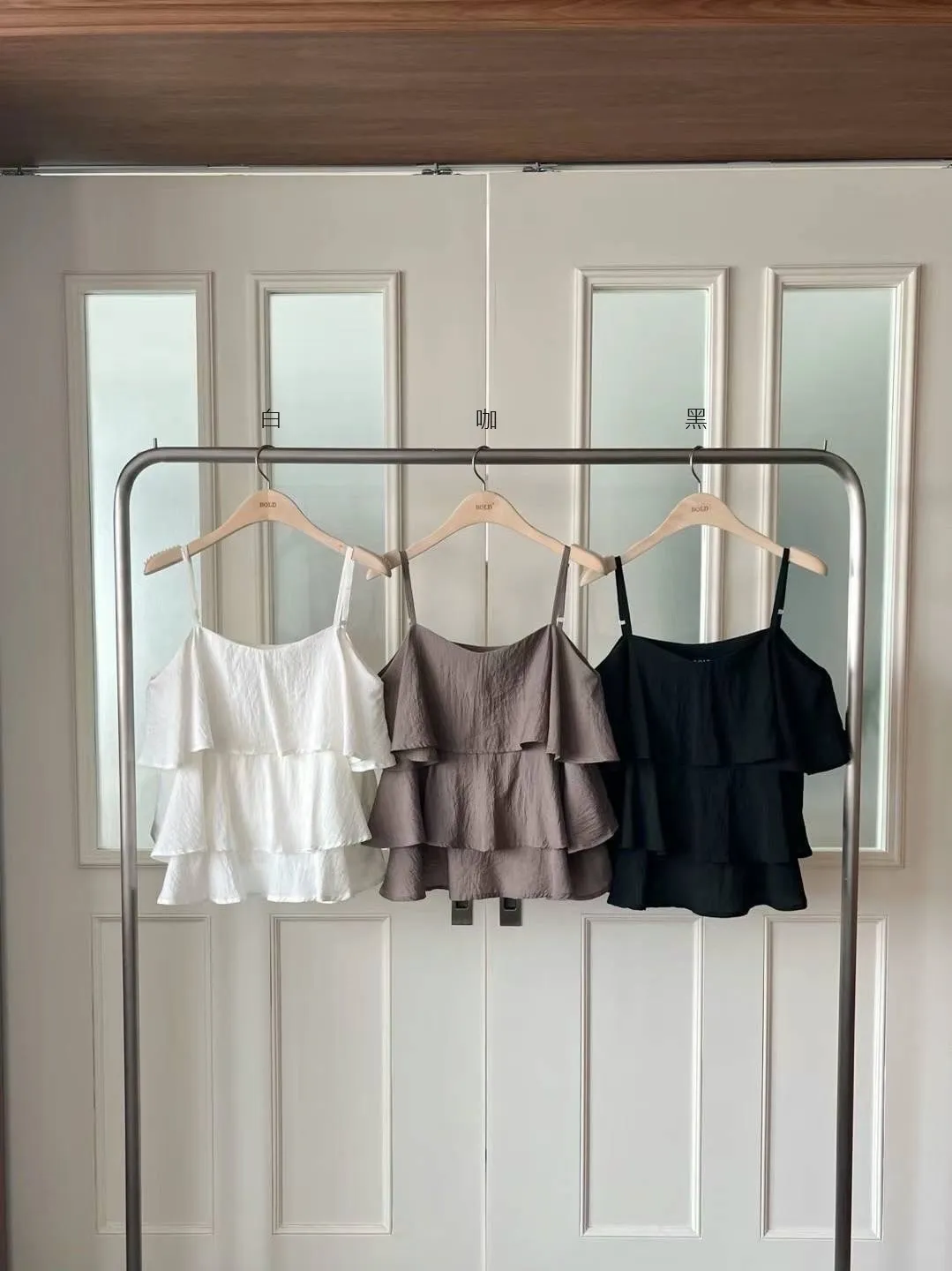 HJ147光澤感三層蛋糕渡假上衣 白 咖 黑 官網價$980 線上價$950