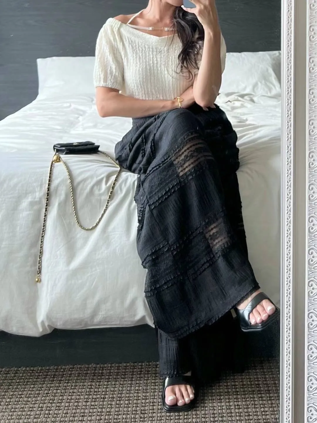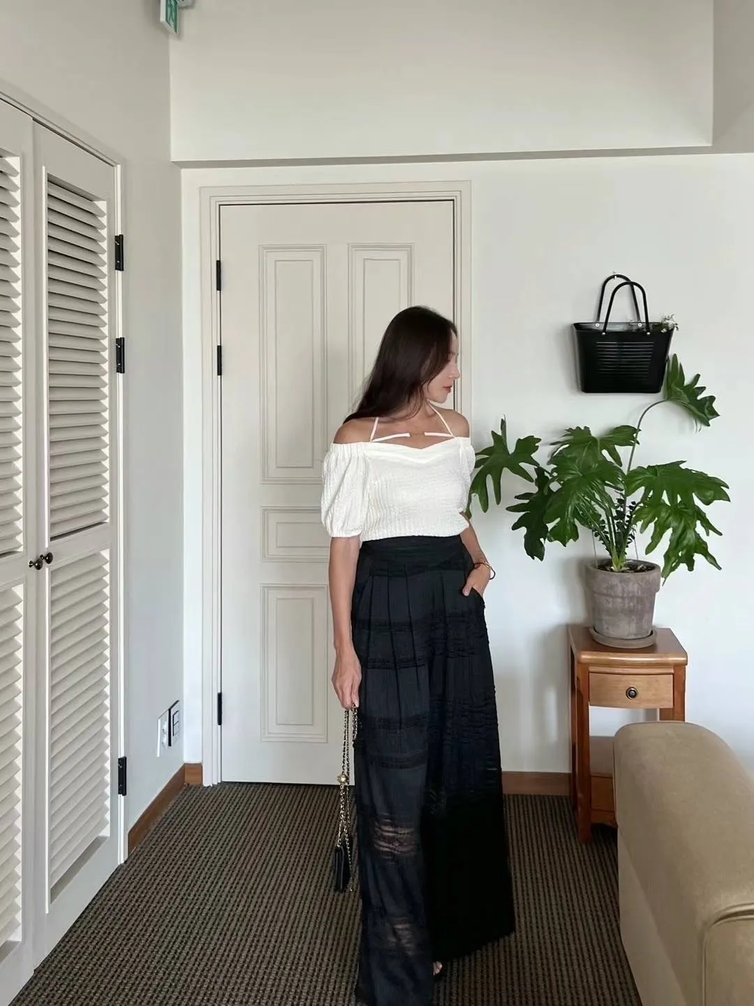 棉蕾絲 全腰鬆緊 精緻透光 有口袋