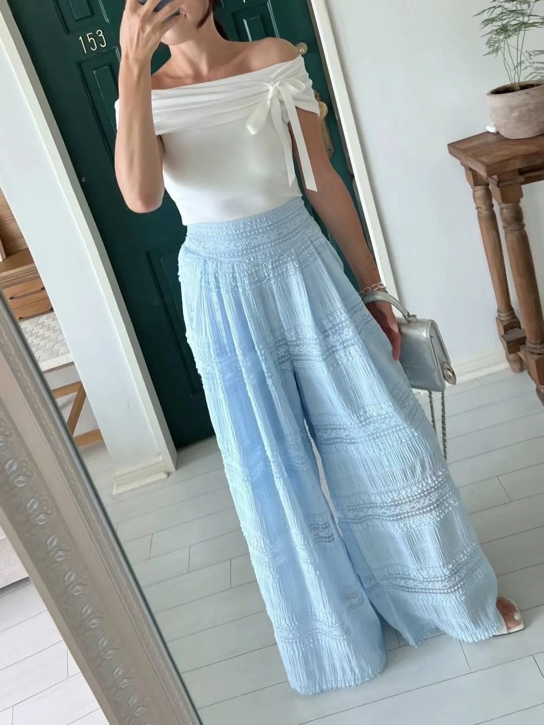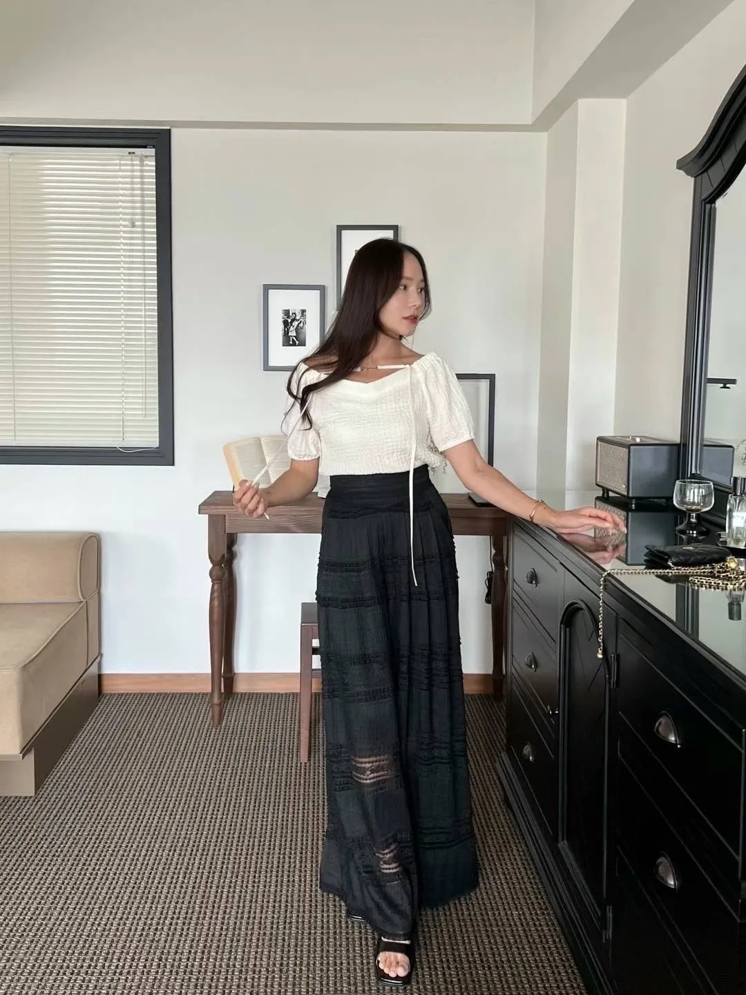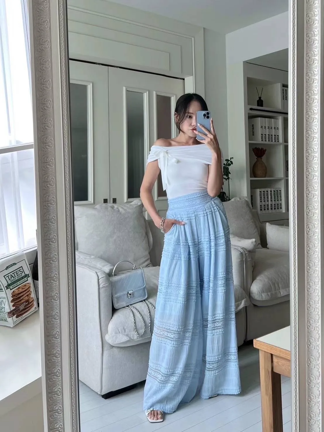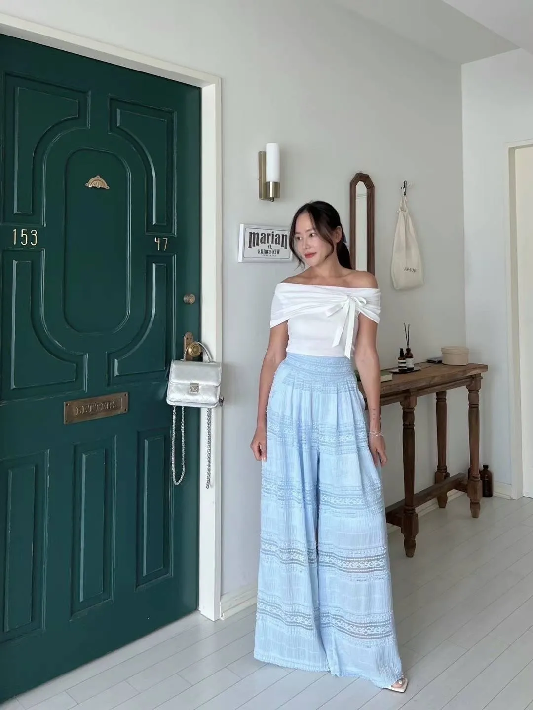 HJ148精緻棉蕾絲細膩長褲 白 藍 黑 官網價$1440 線上價$1410