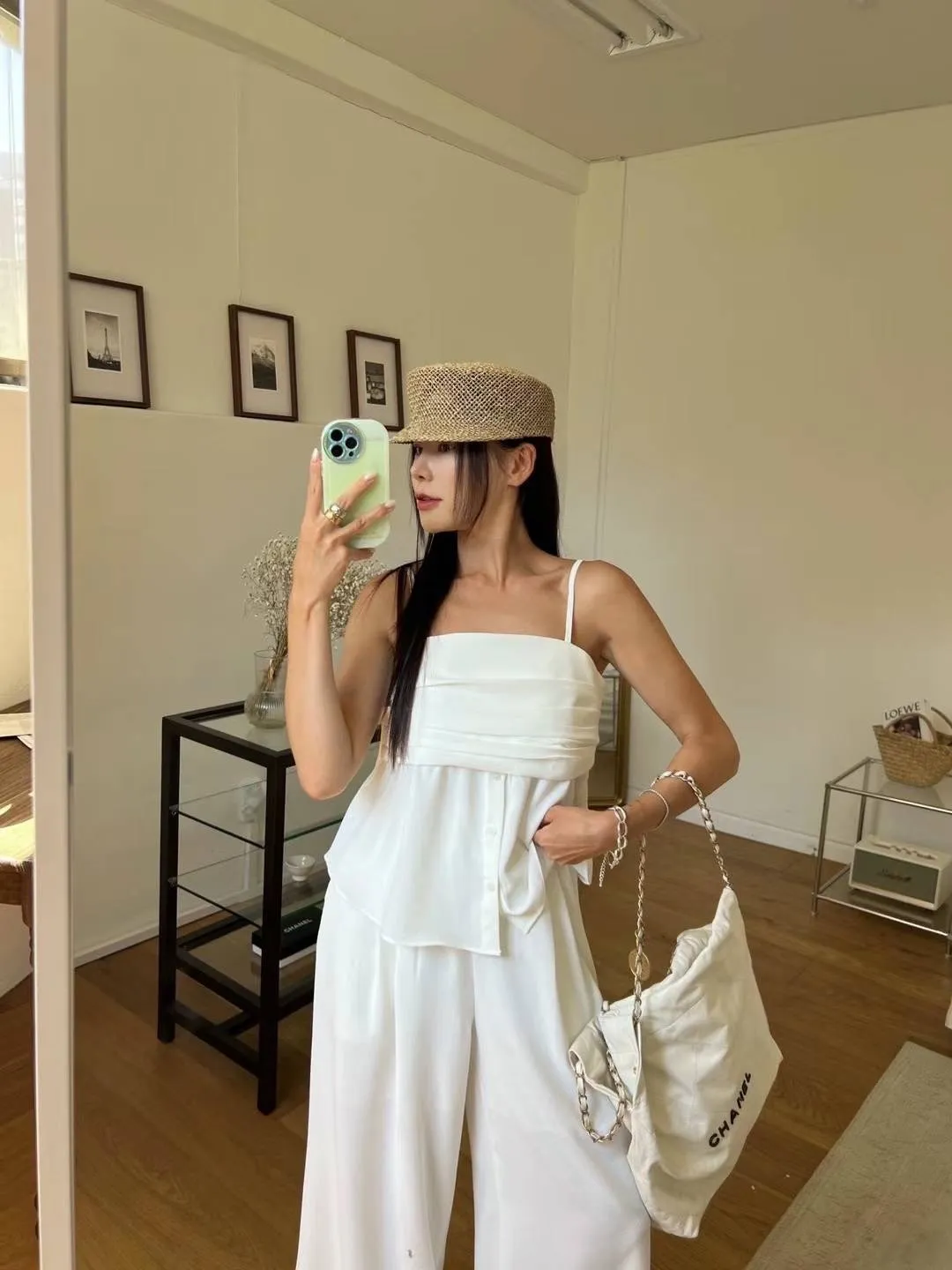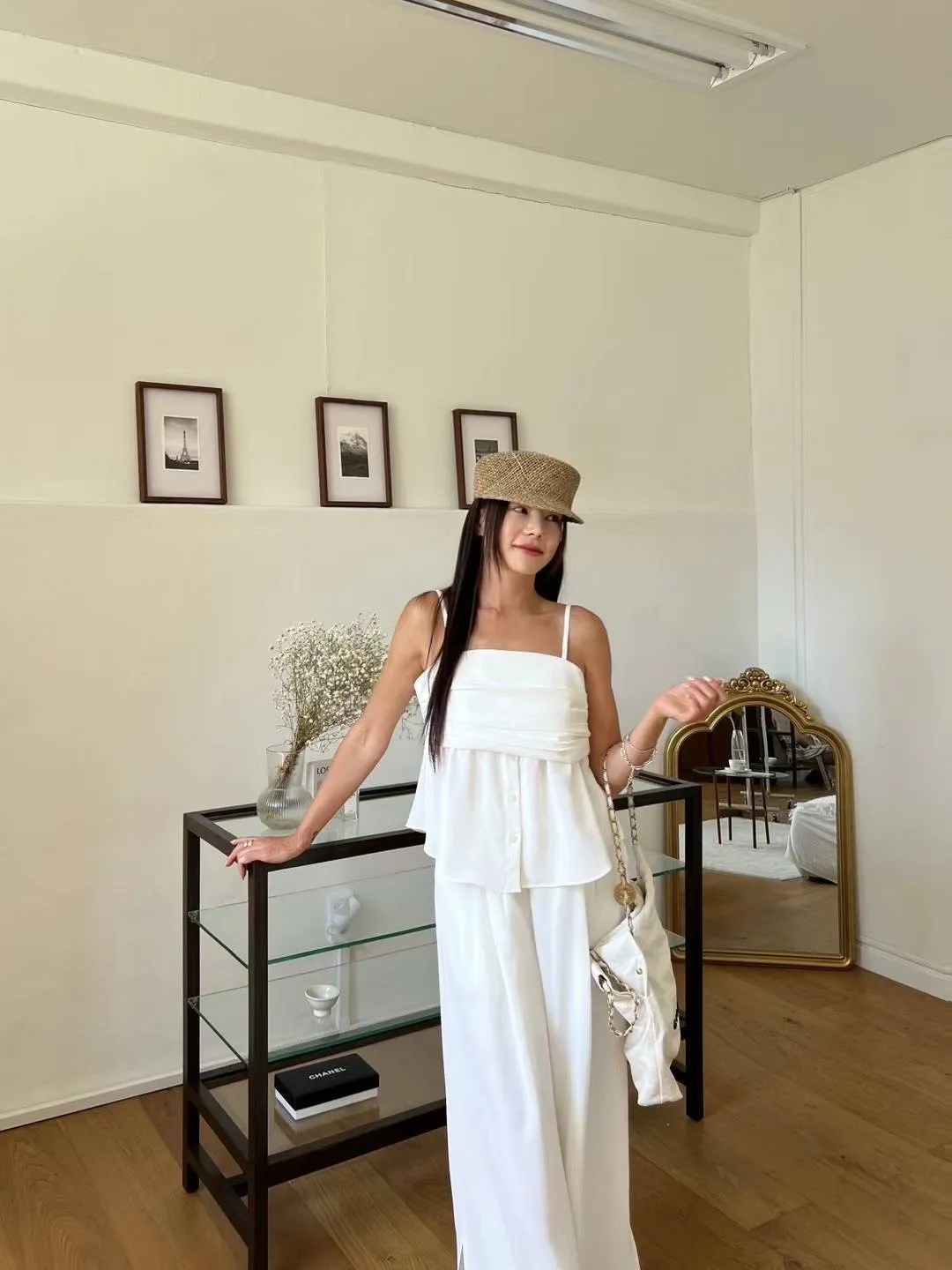 HJ155套裝的視覺交錯藝術層次上衣 白 綠 黑 官網價$990 線上價$960