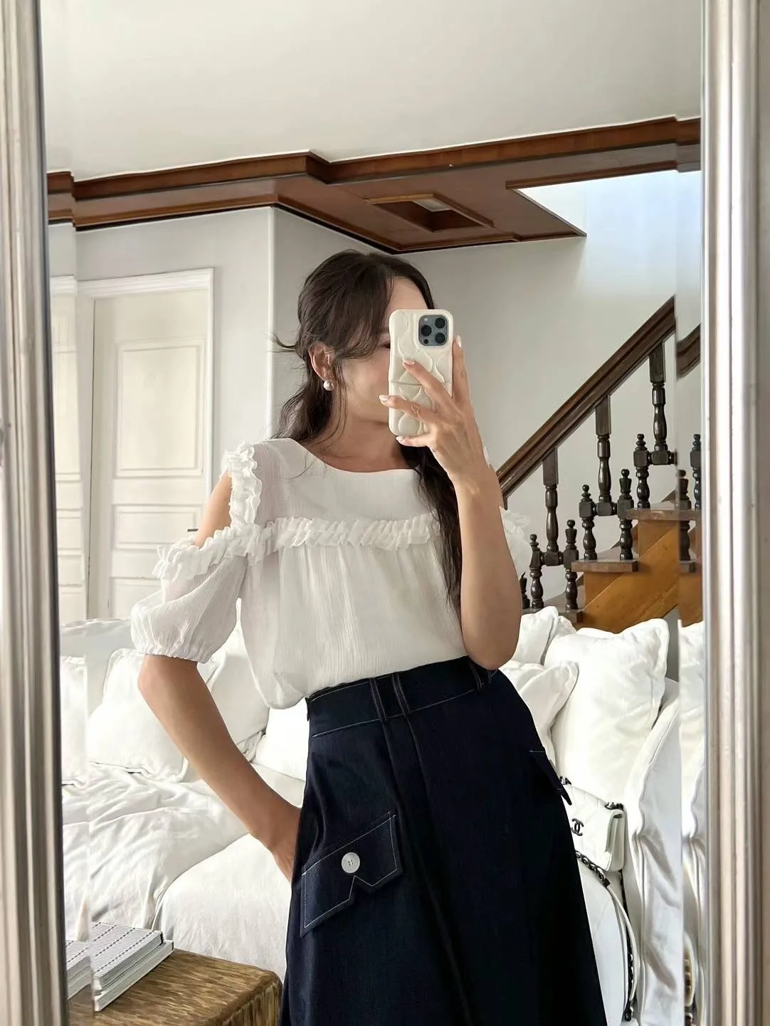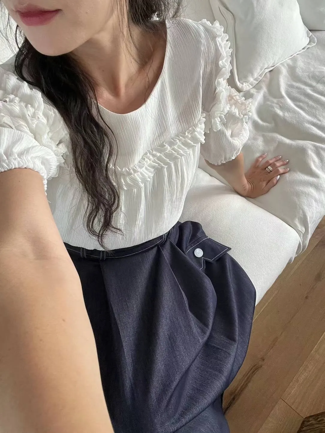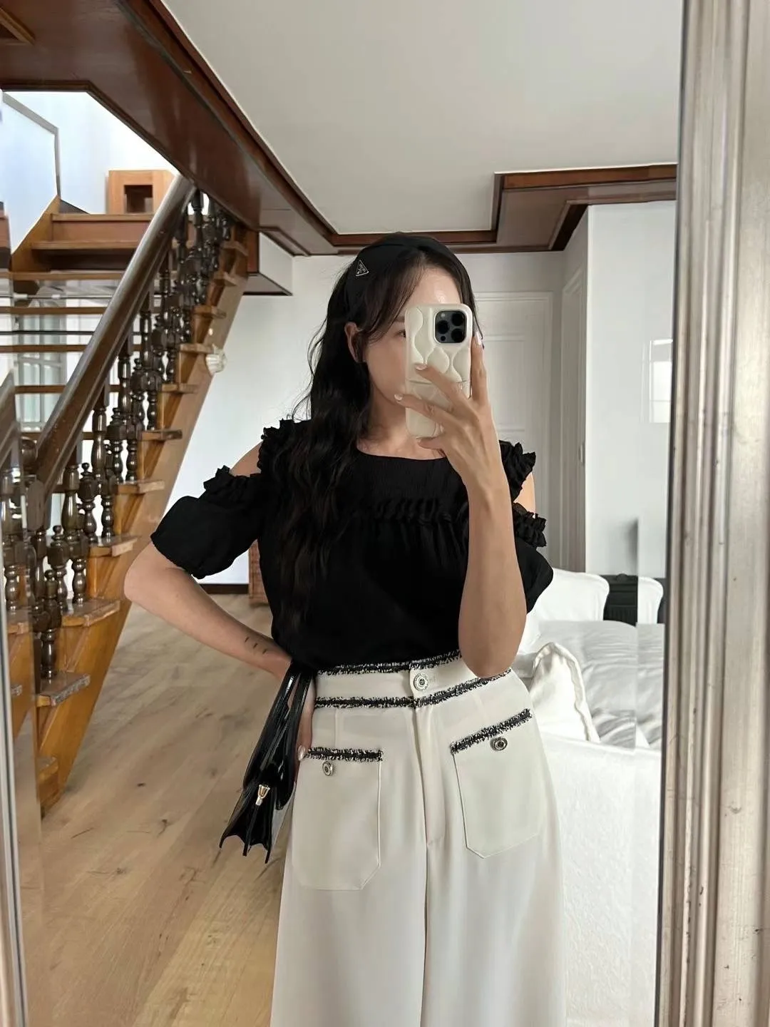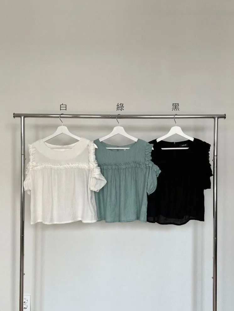 HJ157荷葉美臂簍空上透光上衣 白 綠 黑 官網價$1020 線上價$990