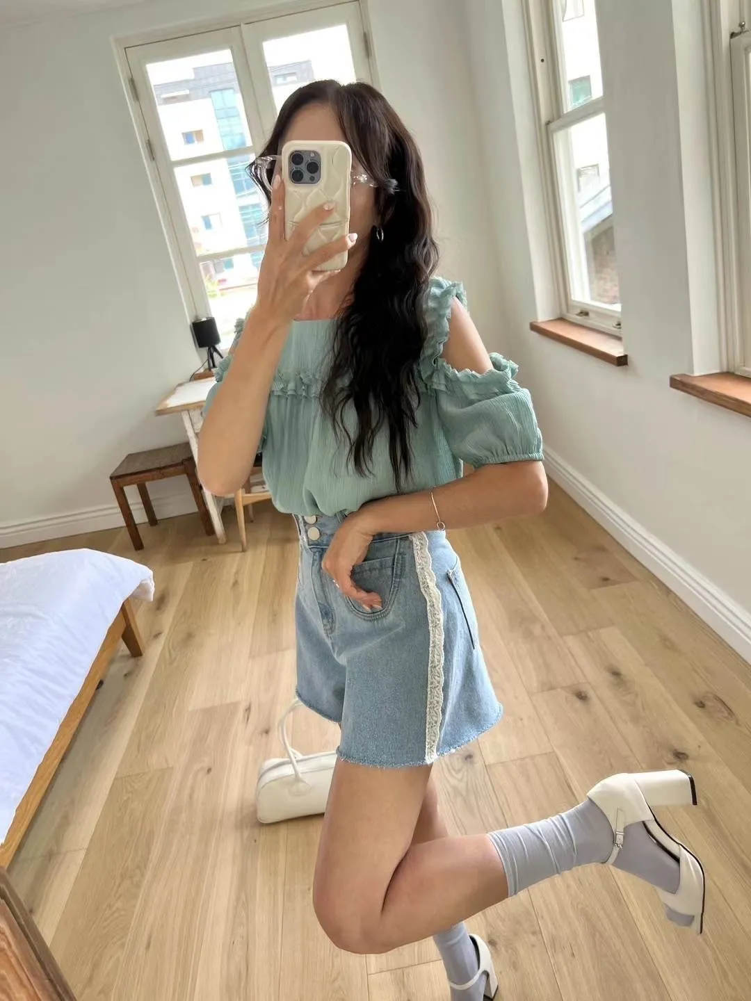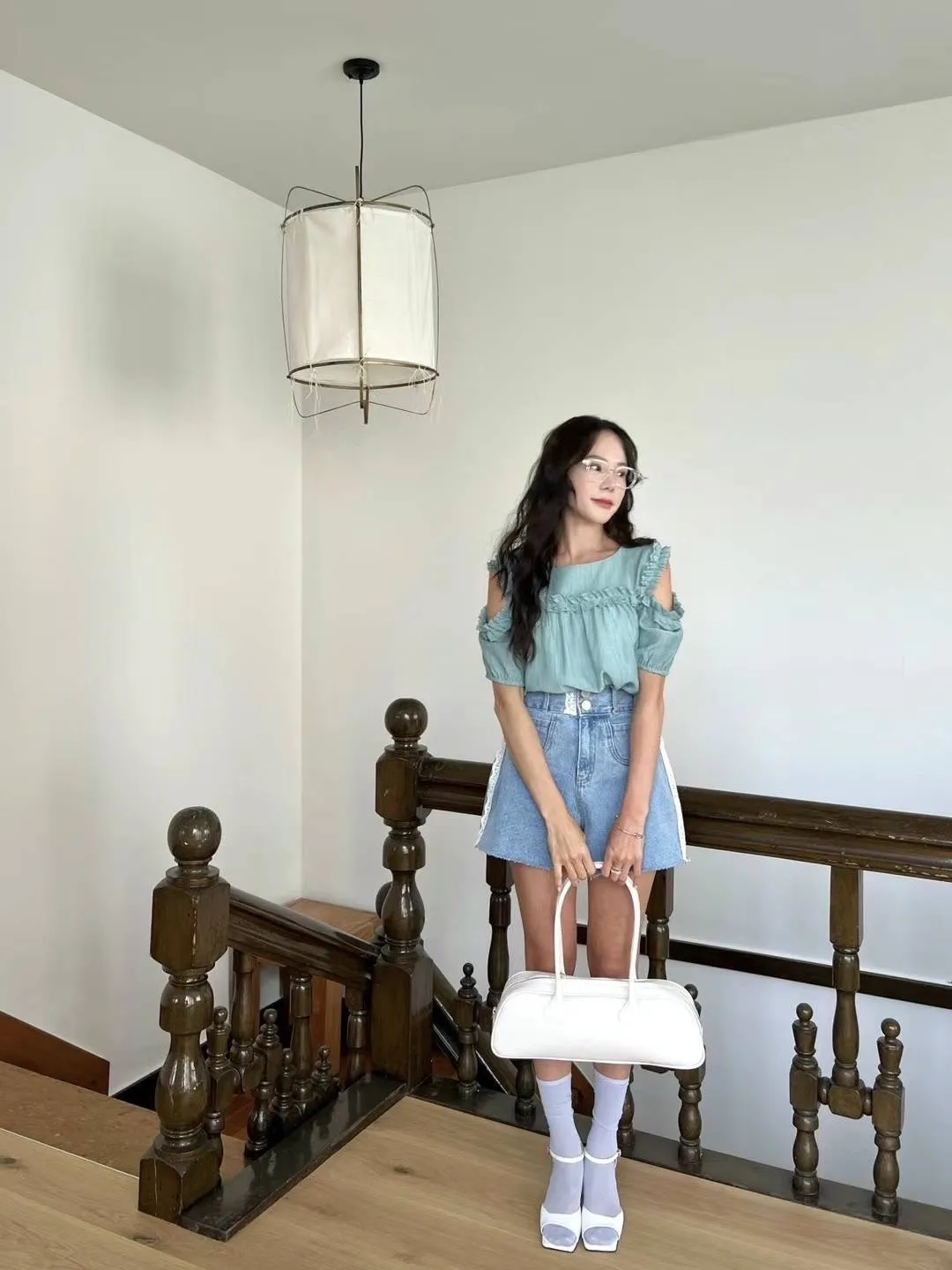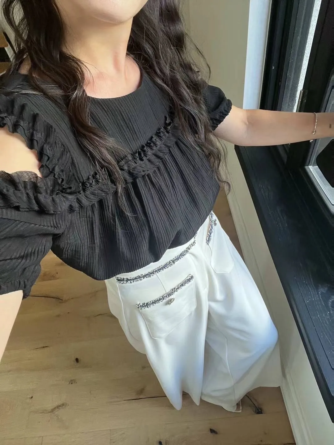 HJ157荷葉美臂簍空上透光上衣 白 綠 黑 官網價$1020 線上價$990