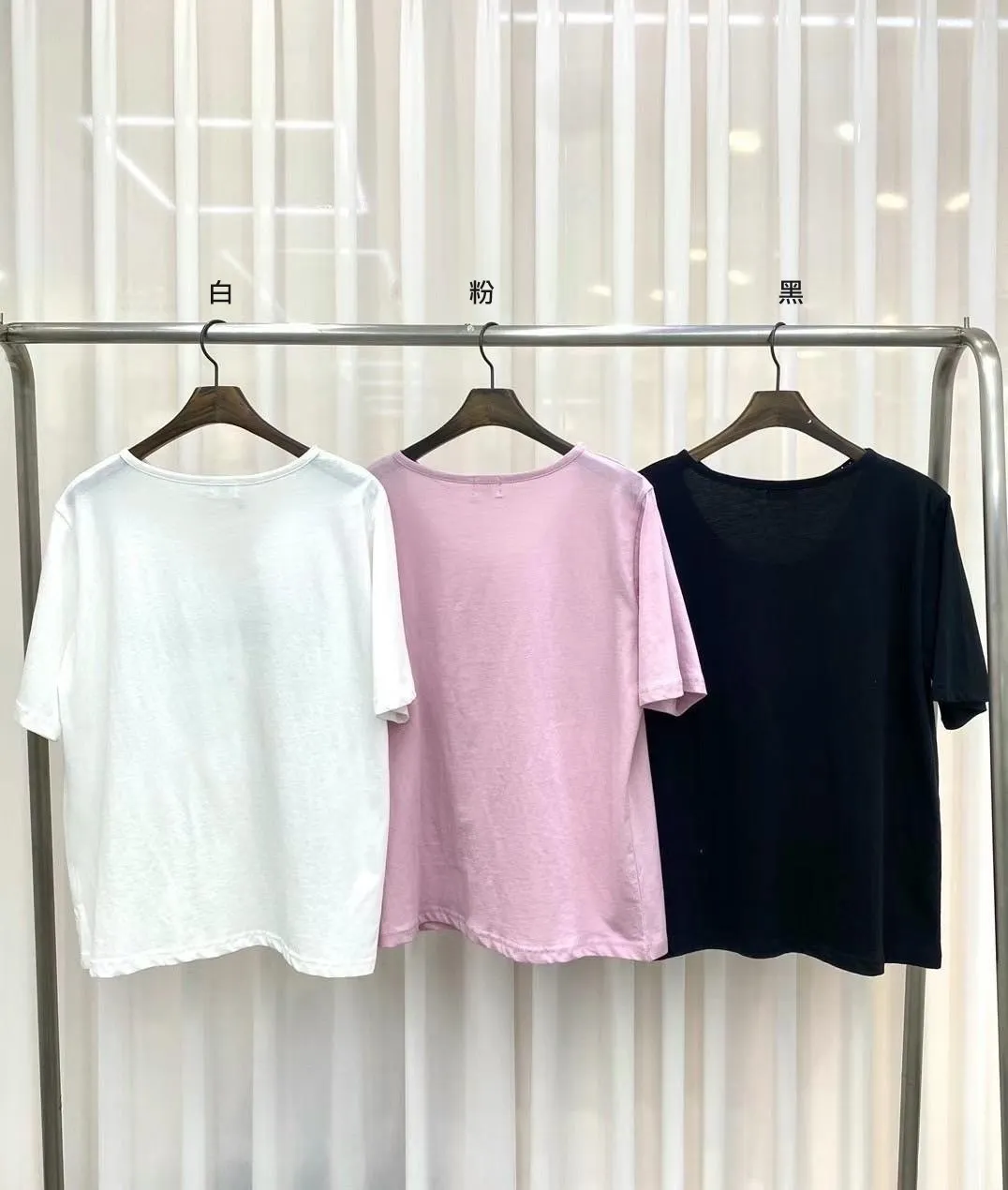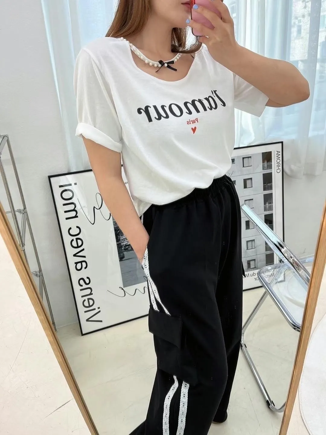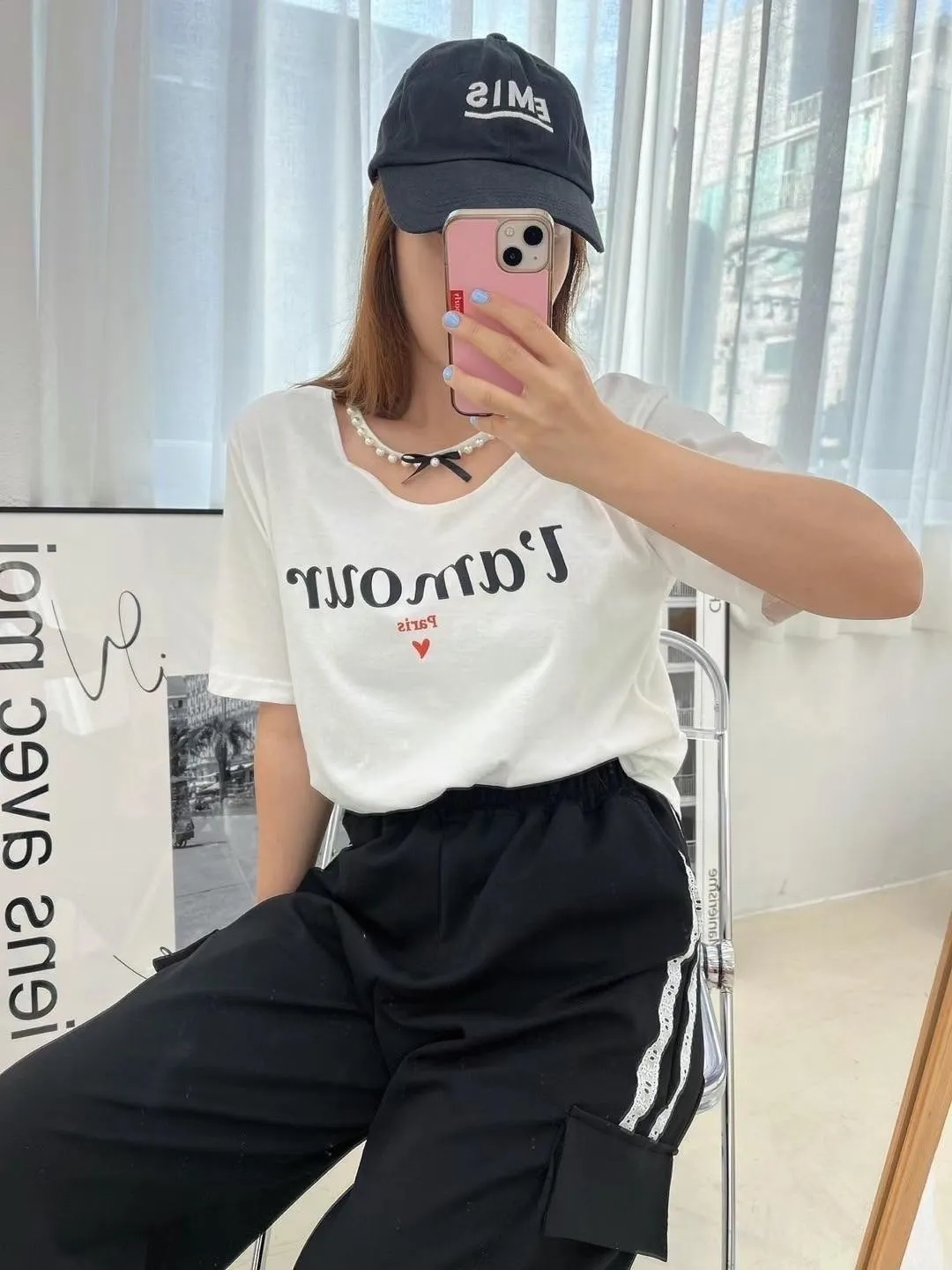HJ175冰絲棉法文Lamour寬領Tshirt 白 粉 黑 官網價$650 線上價$620