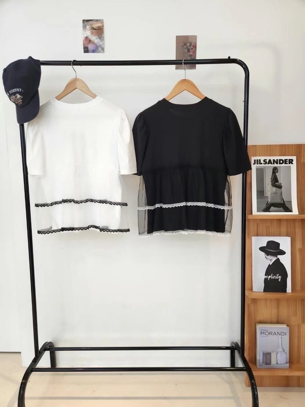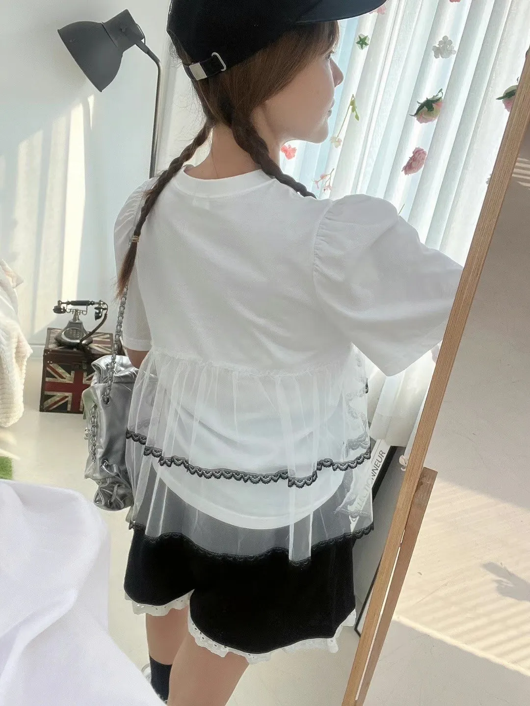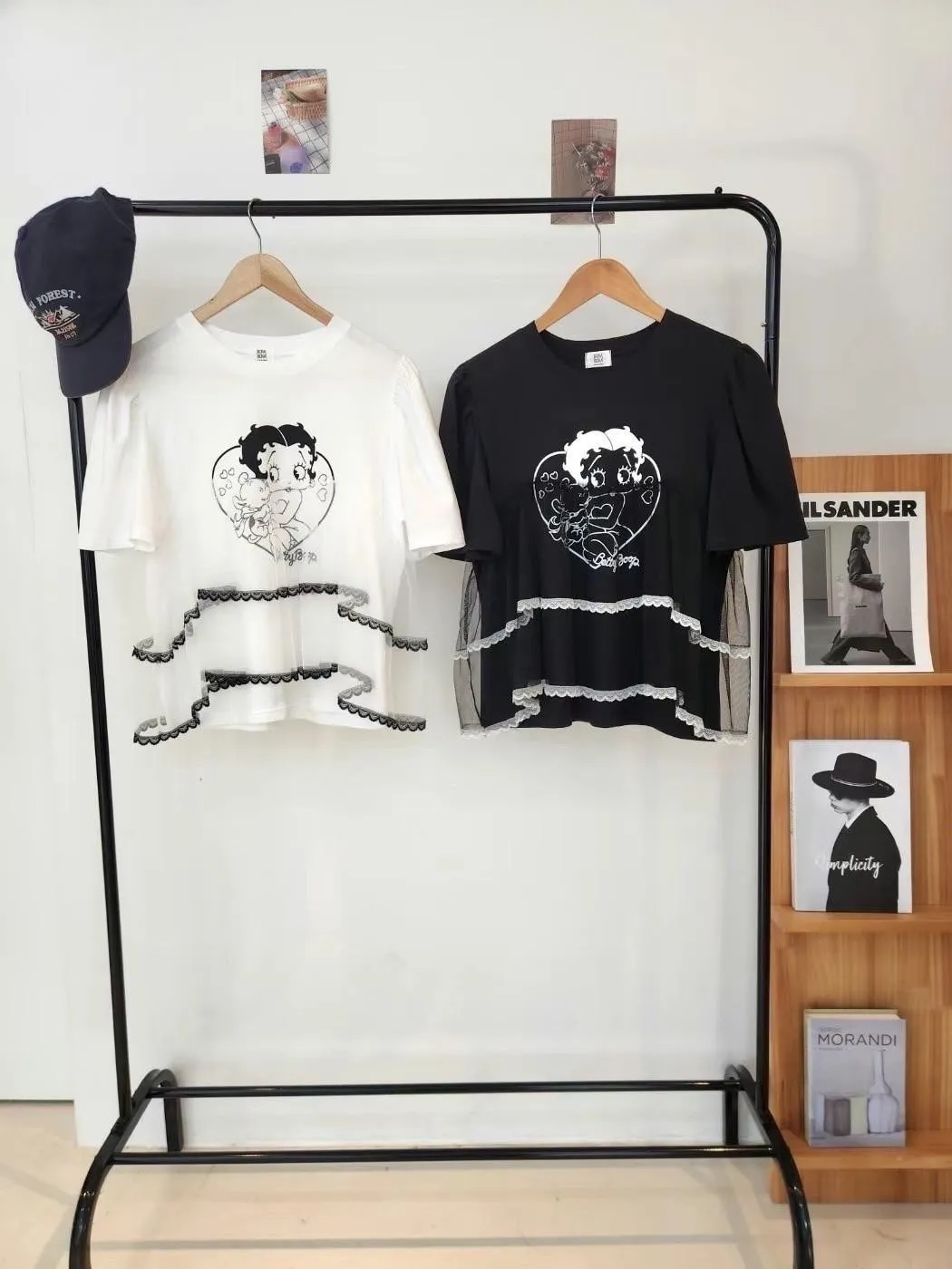 HJ190可愛貝蒂層次網紗 Tshirt 白 黑 官網價$799 線上價$769