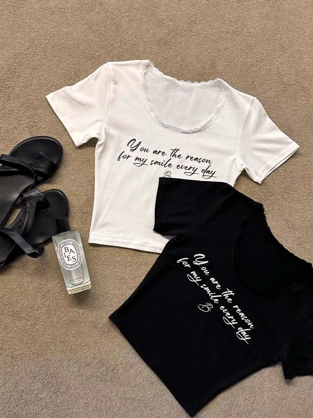 HJ204舒服大U領英文短版Tshirt 白 黑 官網價$470 線上價$440